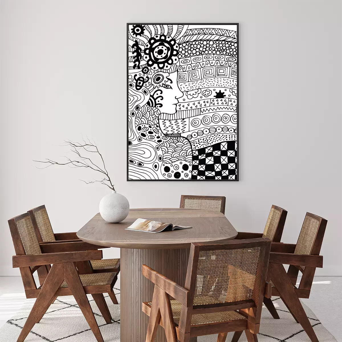 Poster Een gezicht dat uit zwarte en witte patronen tevoorschijn komt