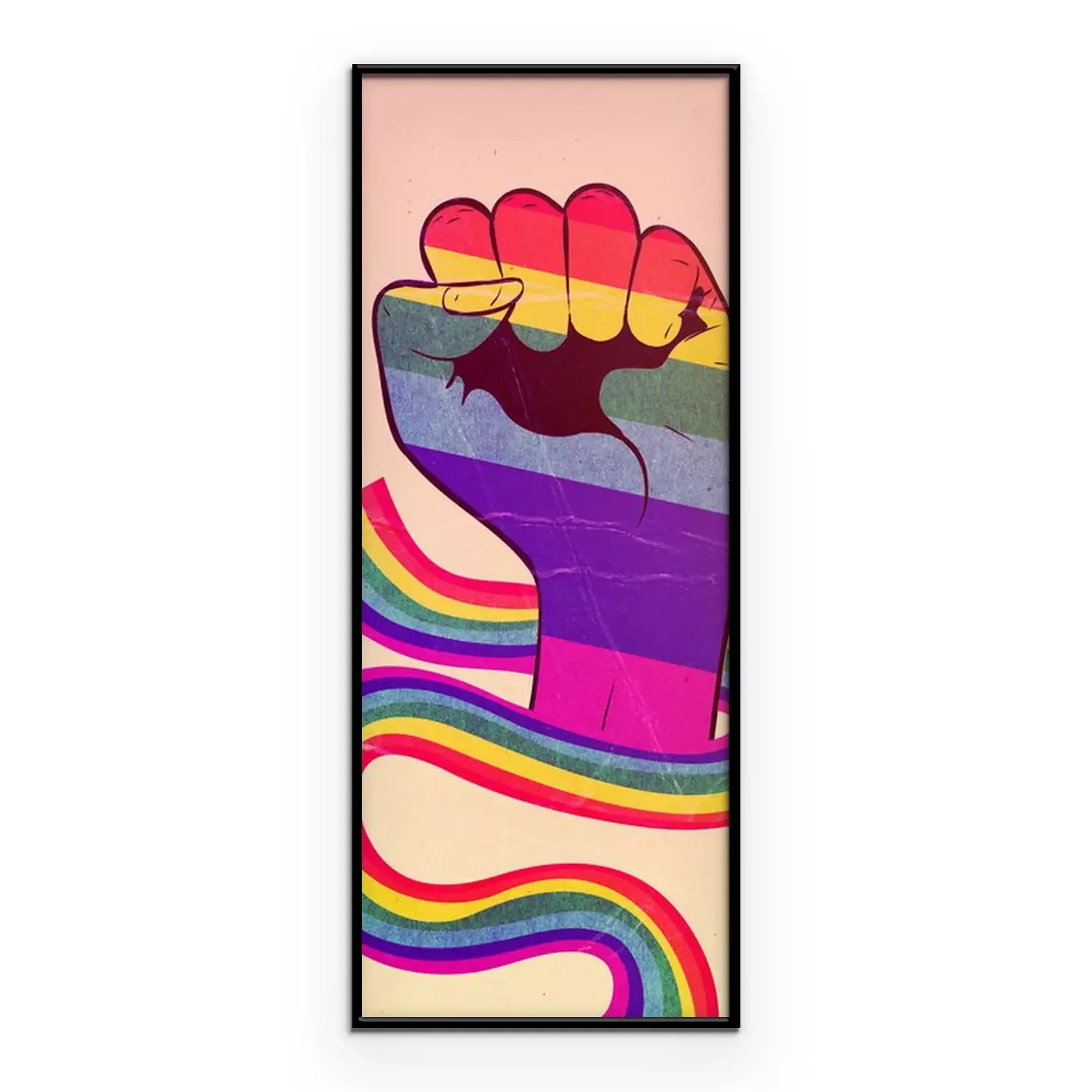 Poster: Een hand gewikkeld in een regenbooglint