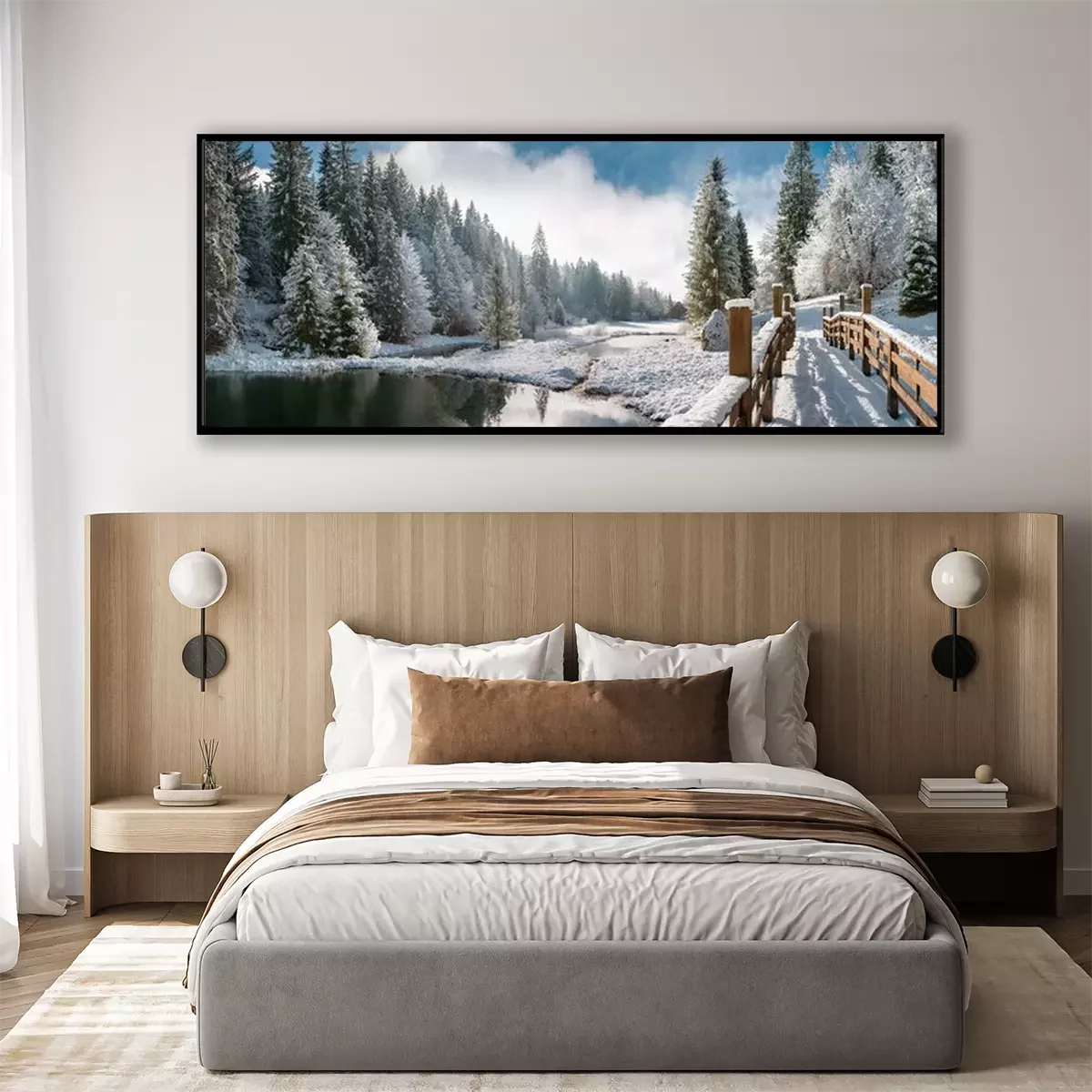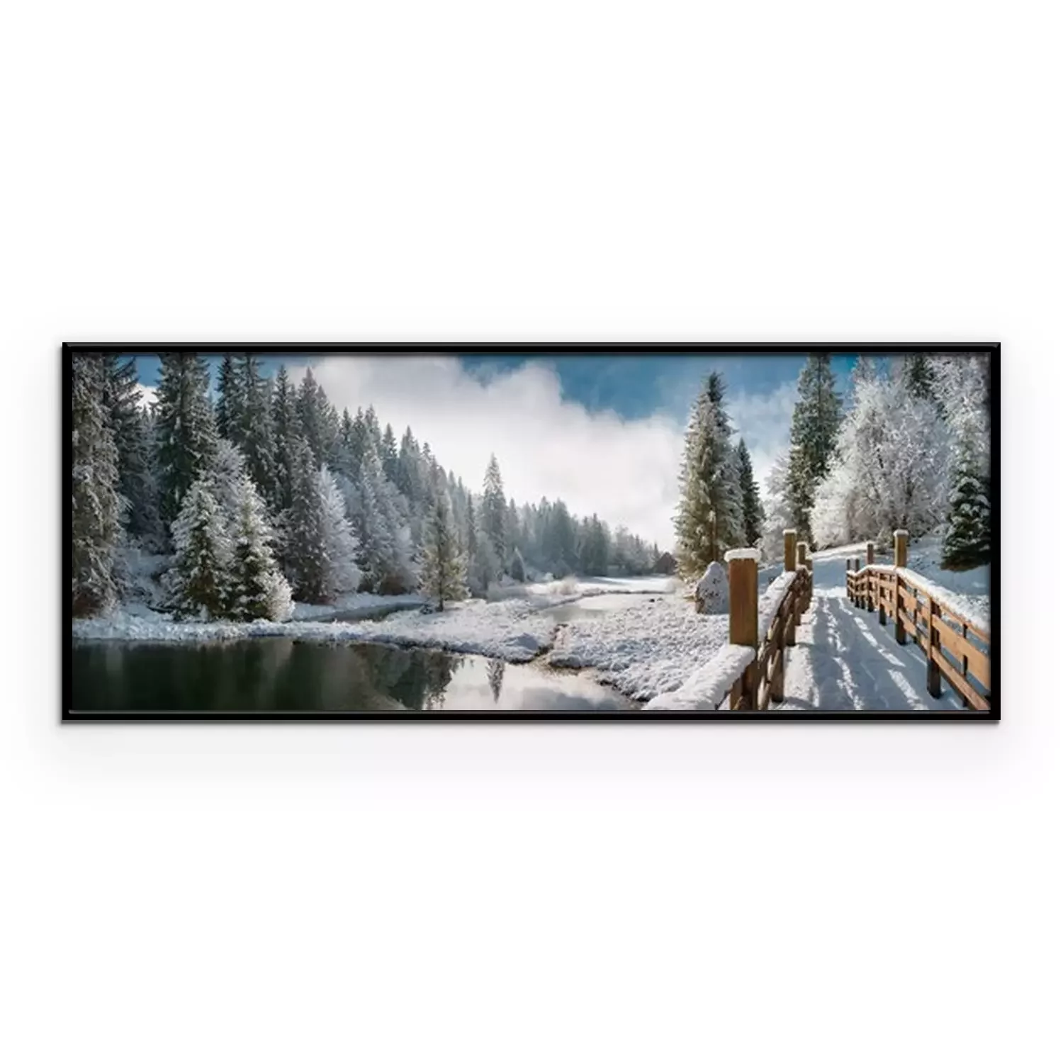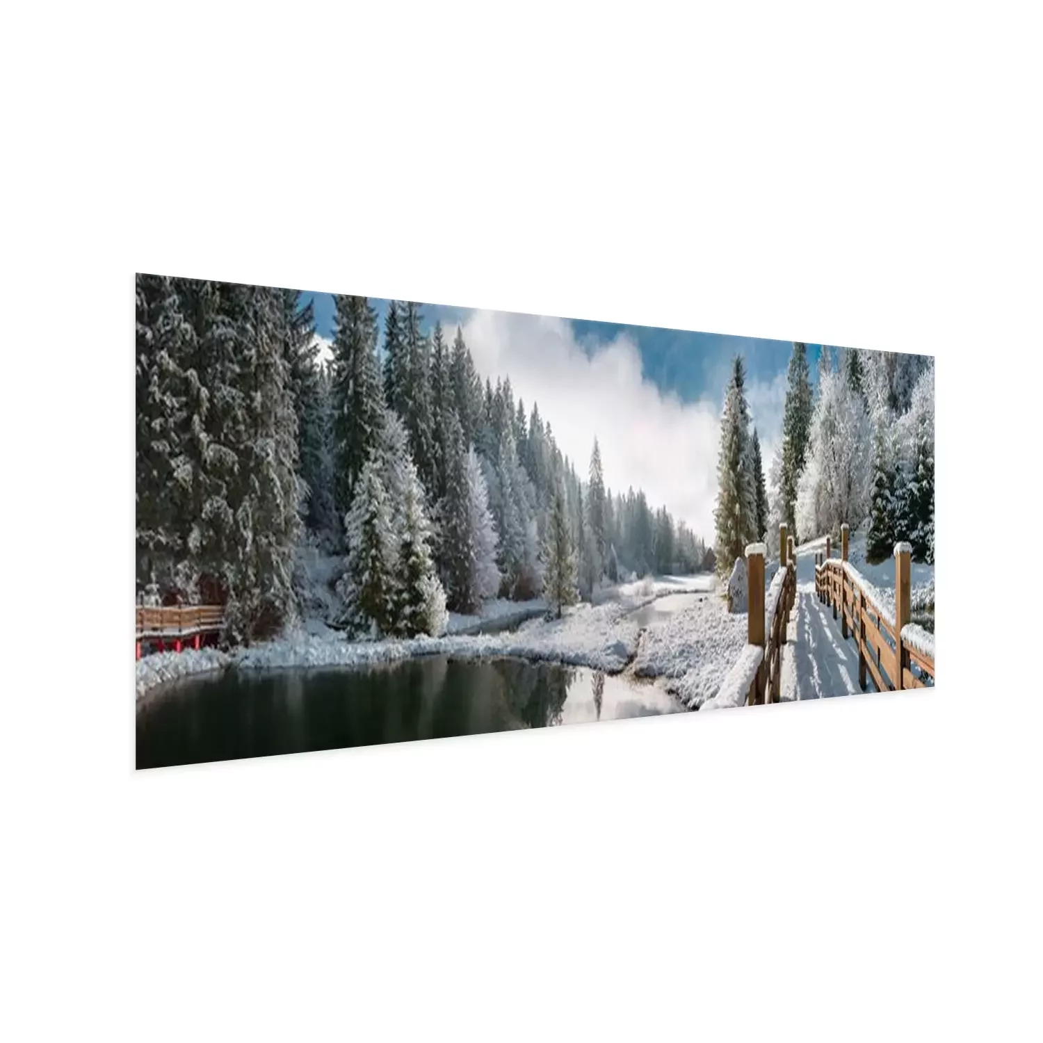 Poster: Een houten brug bedekt met sneeuw