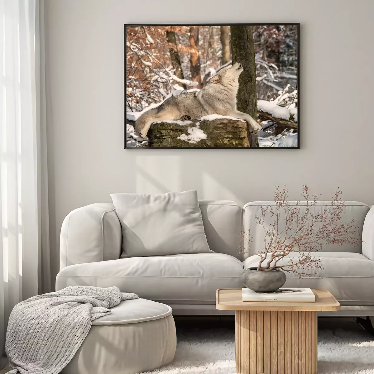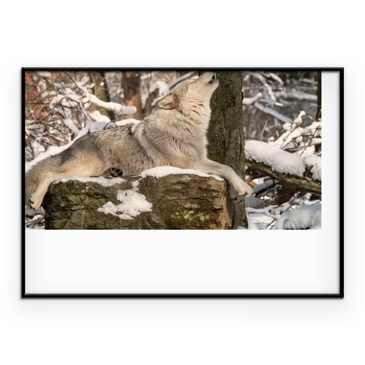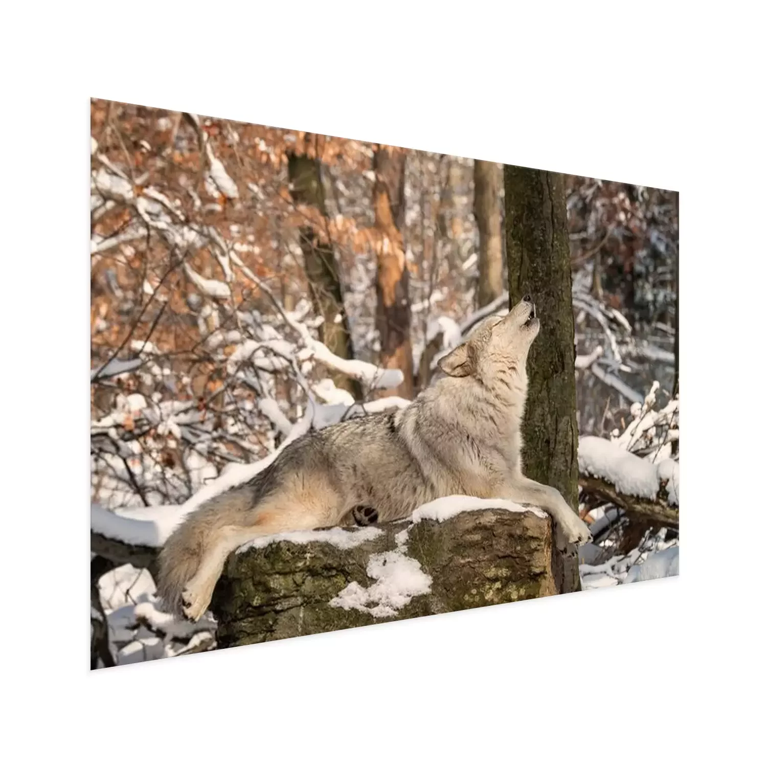 Poster: Een huilende wolf op een rots
