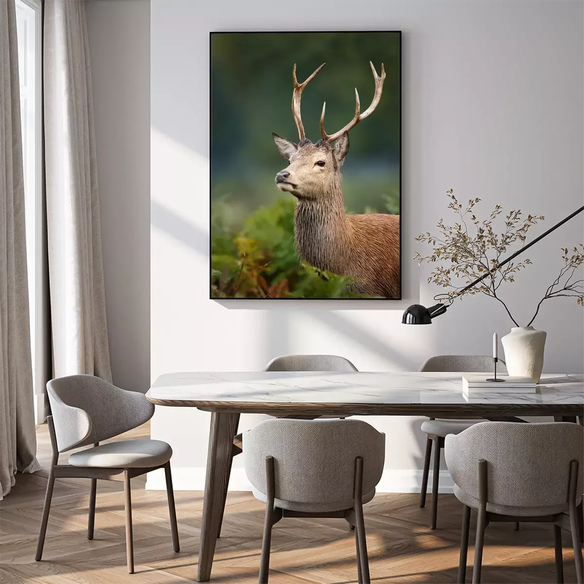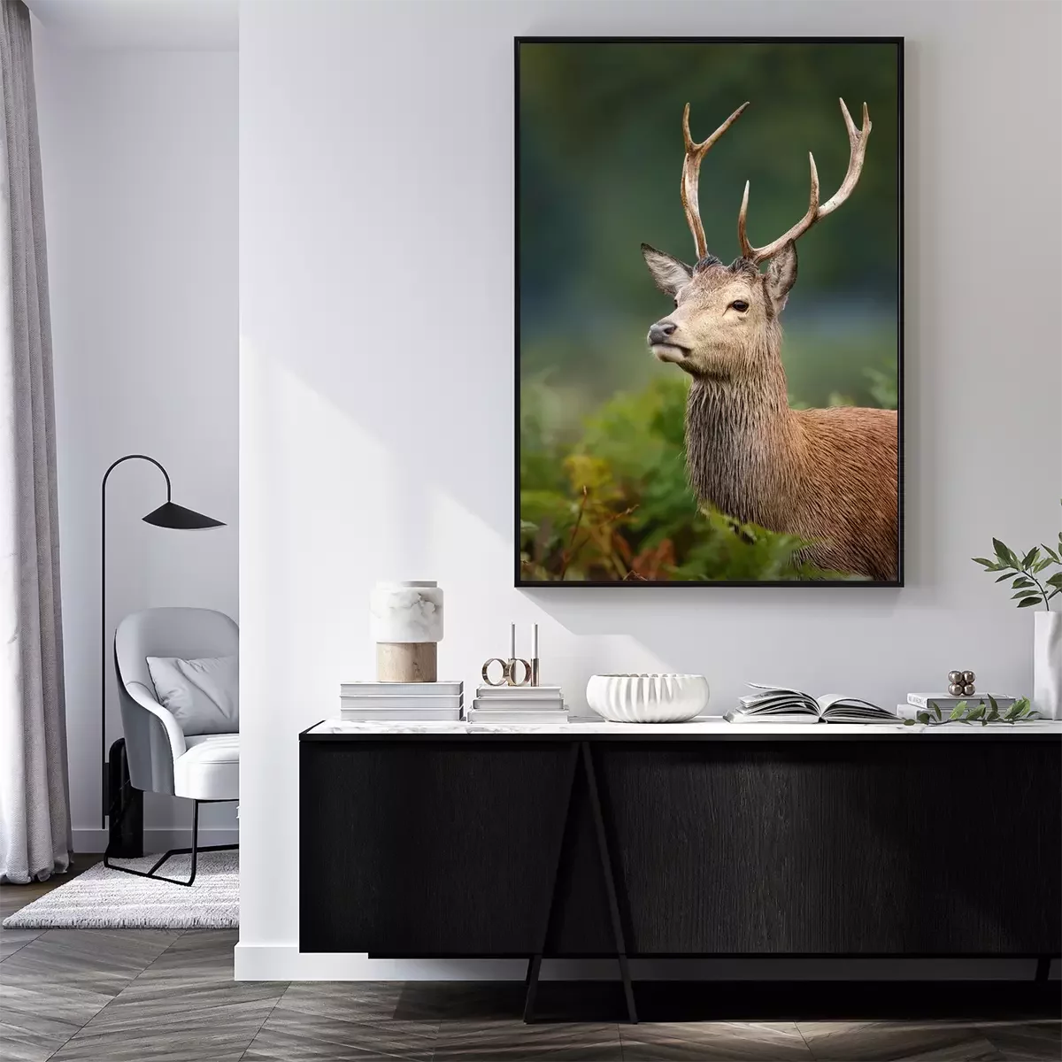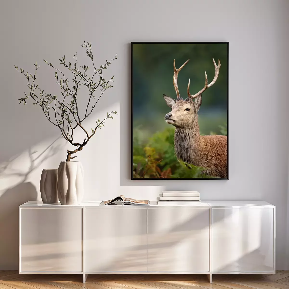 Poster: Een jong hertje in een boslandschap