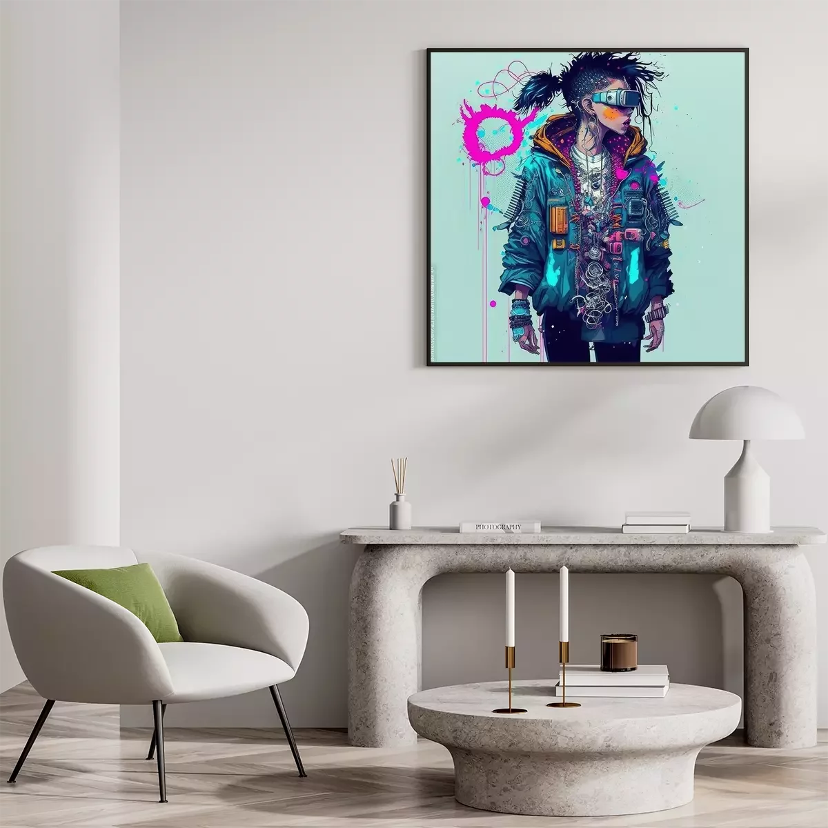 Poster Een jonge cyberpunkjongen