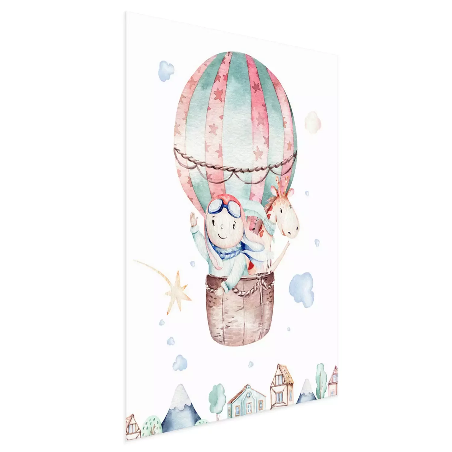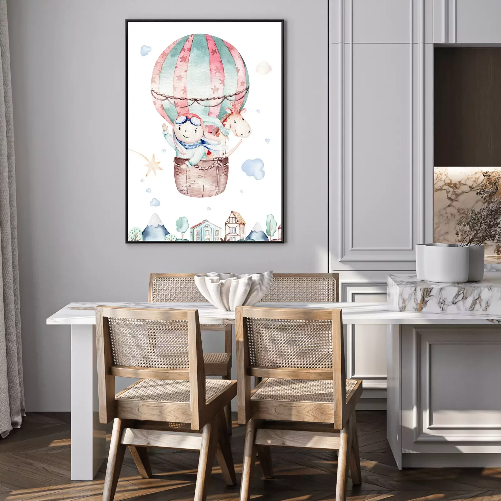 Aquarelvliegtuigen en ballonnen tussen de wolken