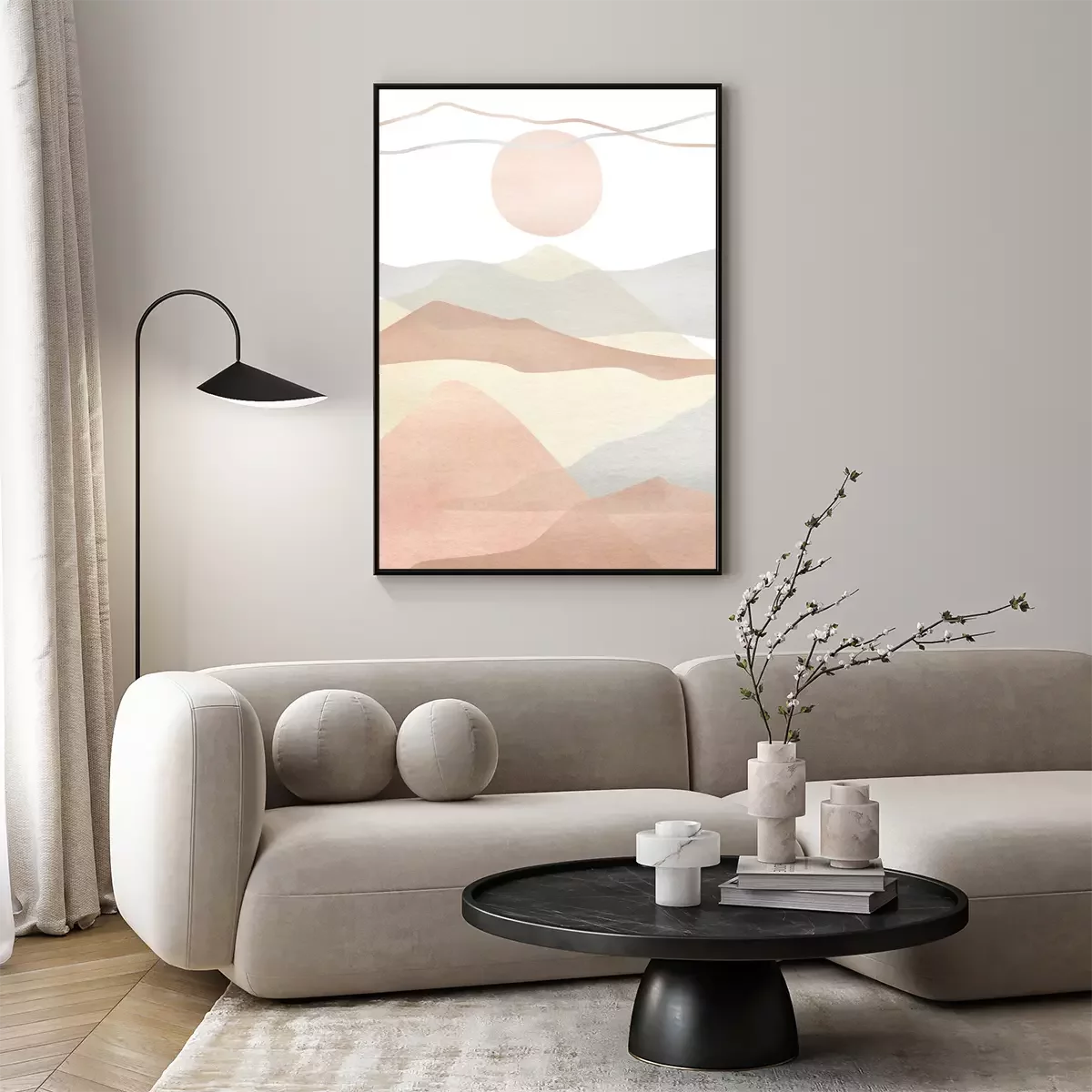 Watercolor creative minimalist hand painted landscape composition, mountains. Abstract modern print, poster, for wall decoration, card or brochure cover design. Aesthetic trendy illustration
