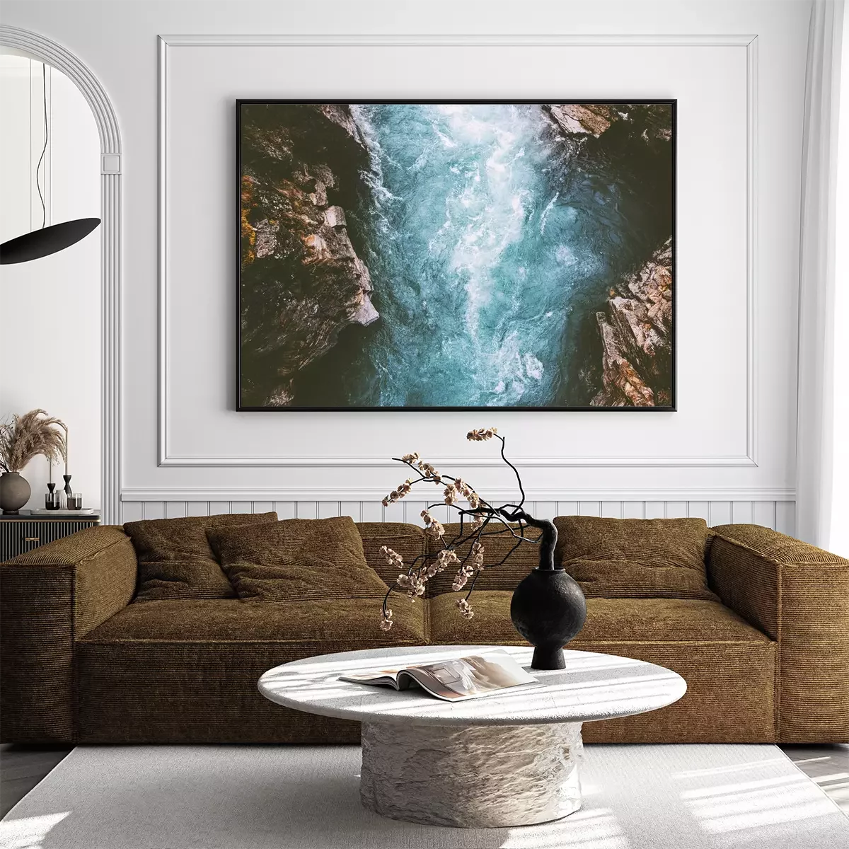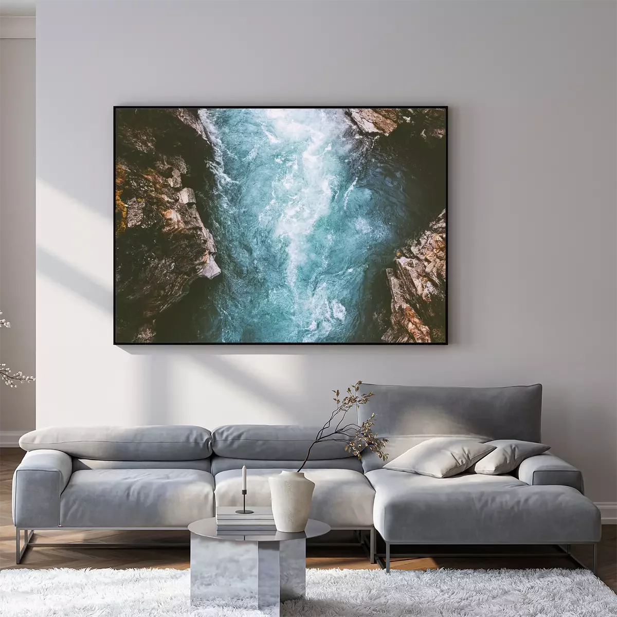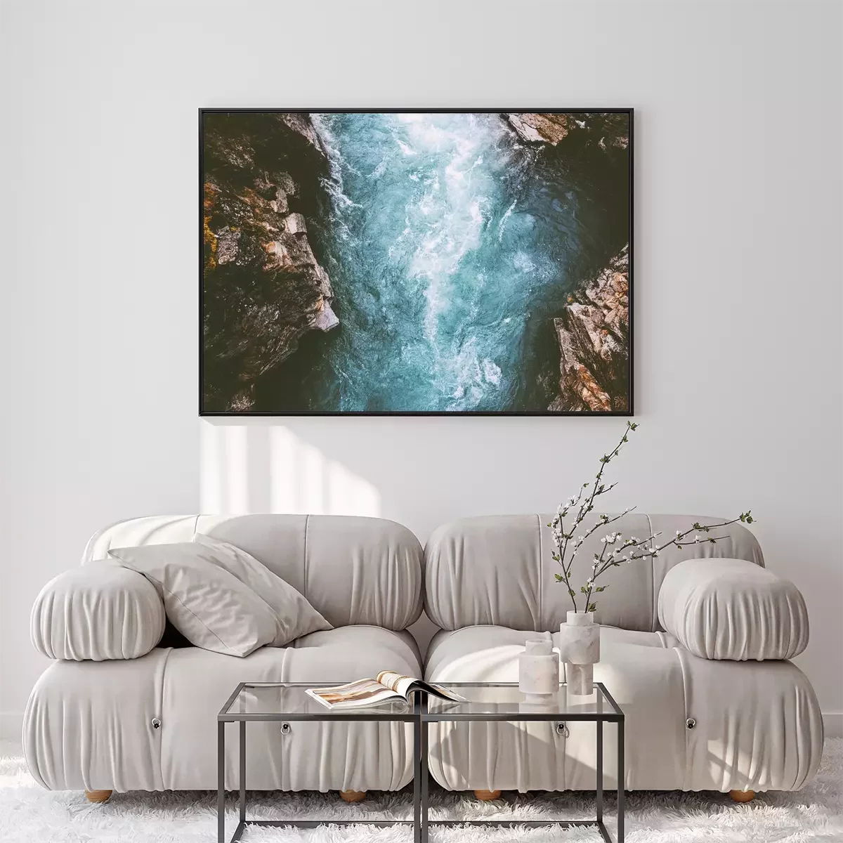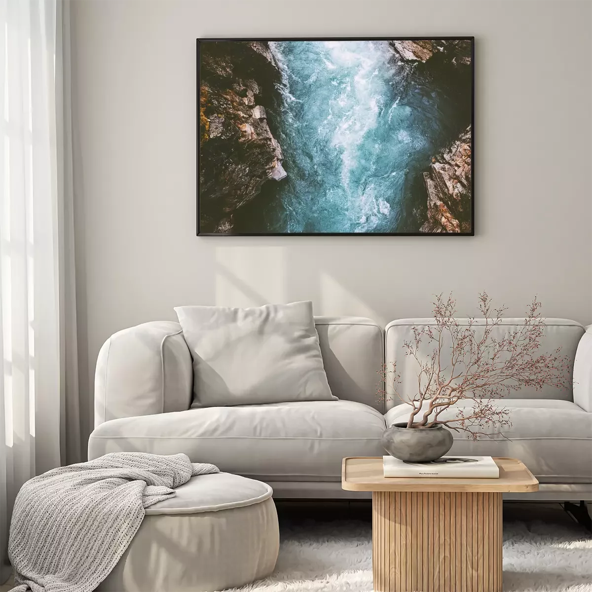 Poster: Een landschap van een schuimende rivier