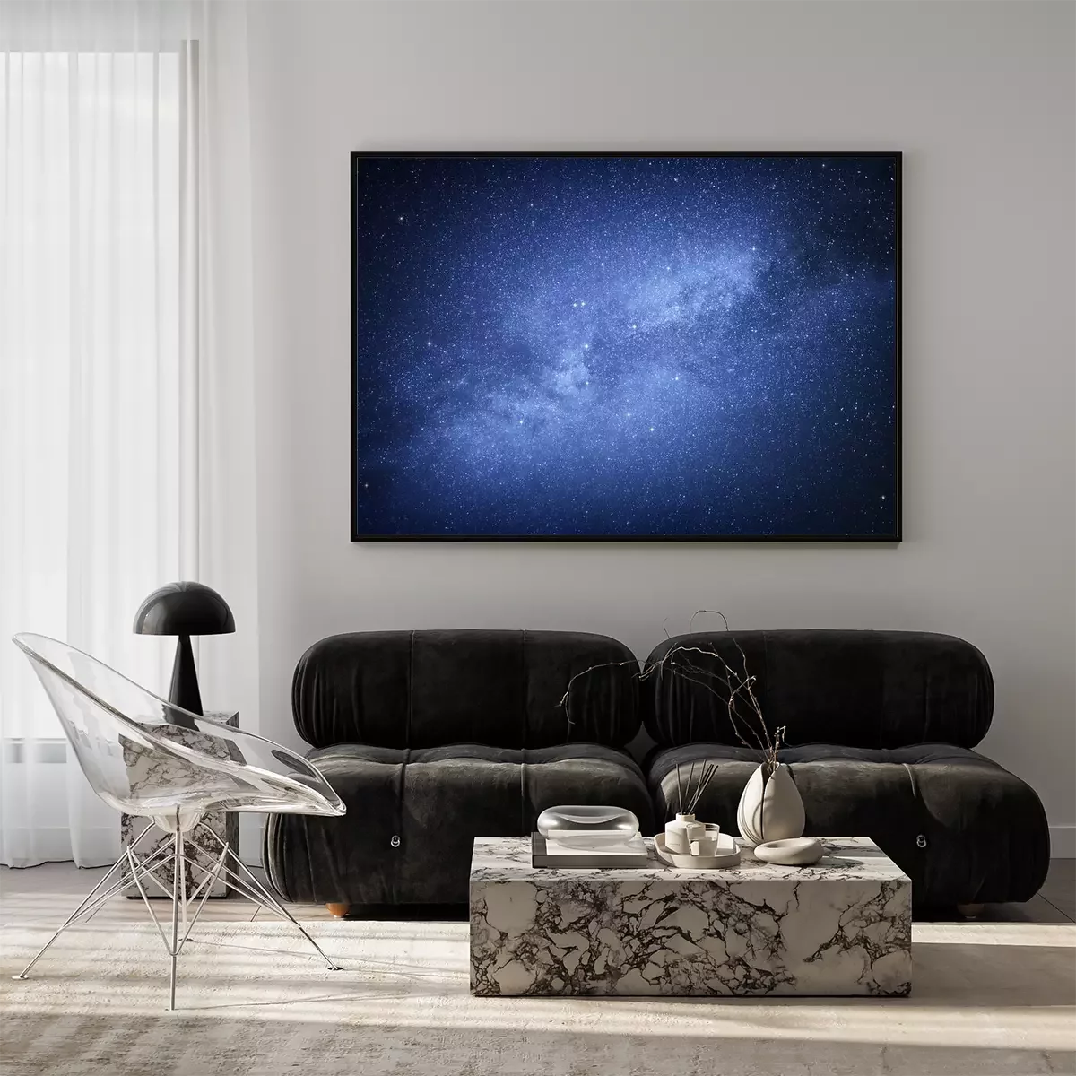 Poster Een langwerpig sterrenstelsel tussen de sterren