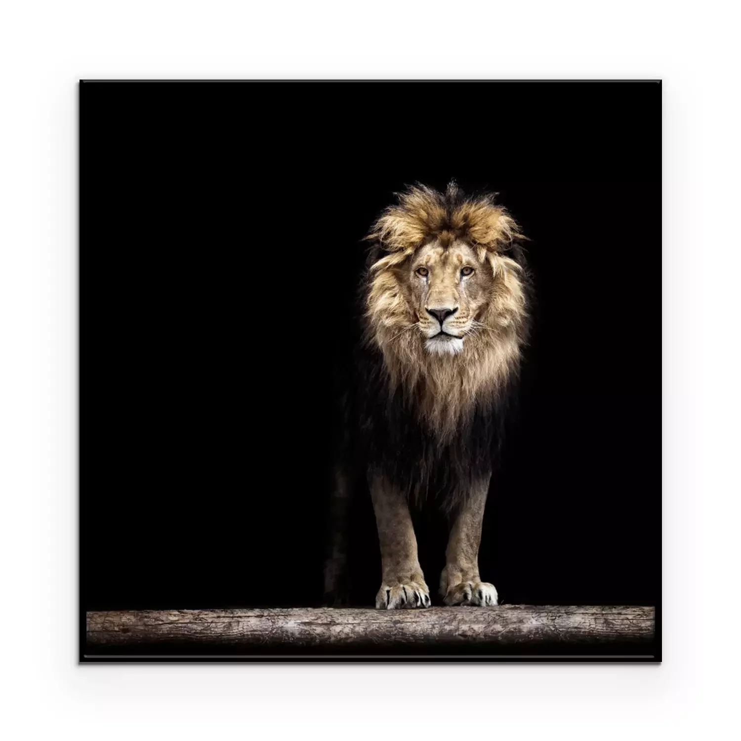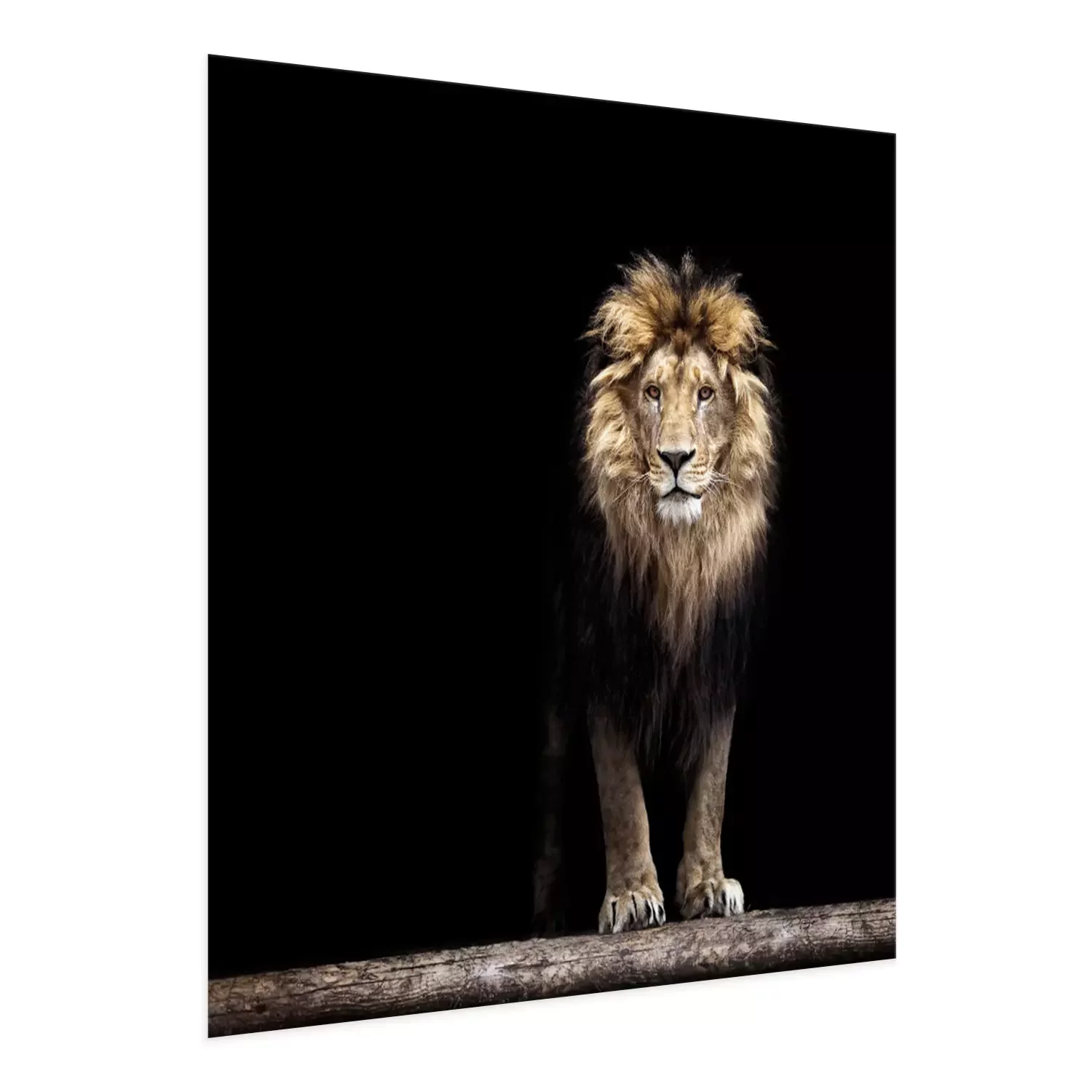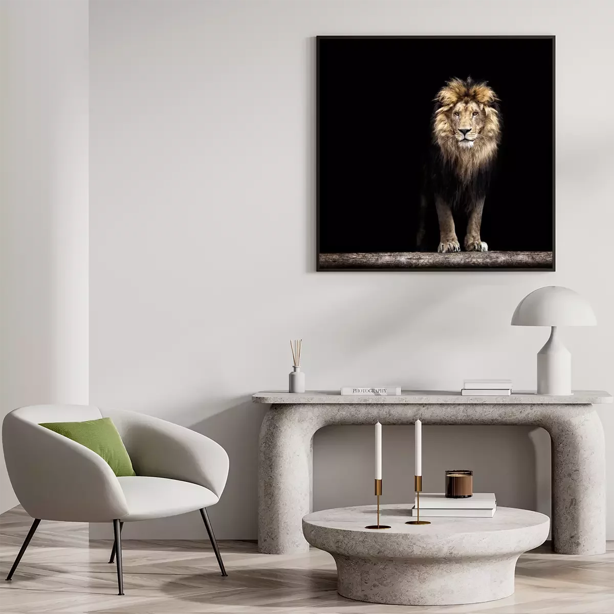 Mooie leeuw bij een drinkplaats op zwarte achtergrond
