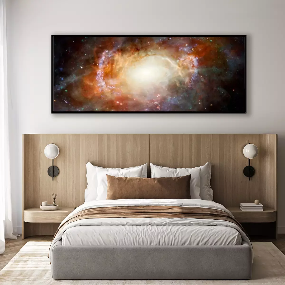 Poster: Een magische kosmos met een kleurrijk sterrenstelsel