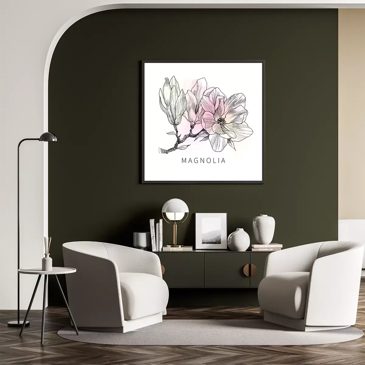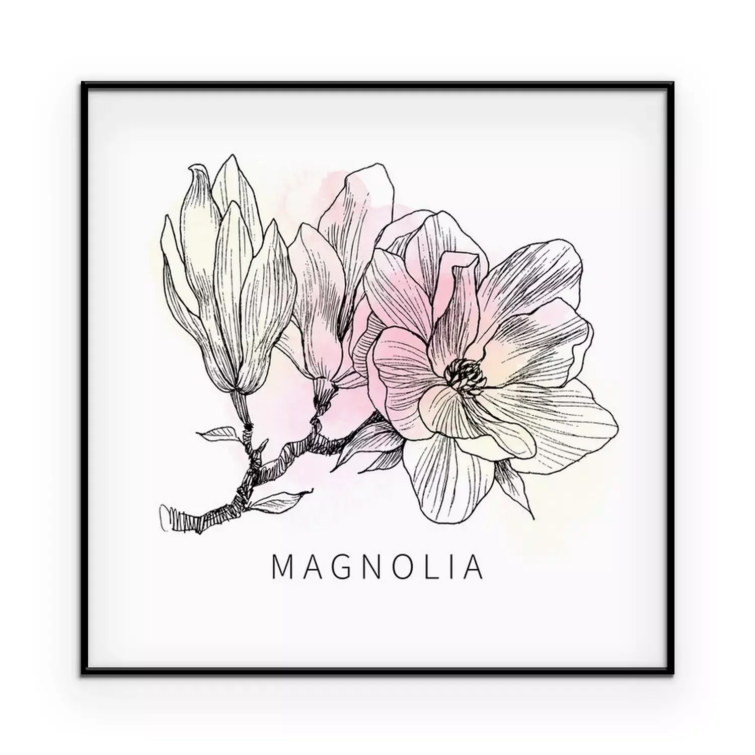 Poster: Een magnoliatak gevuld met pastelkleuren