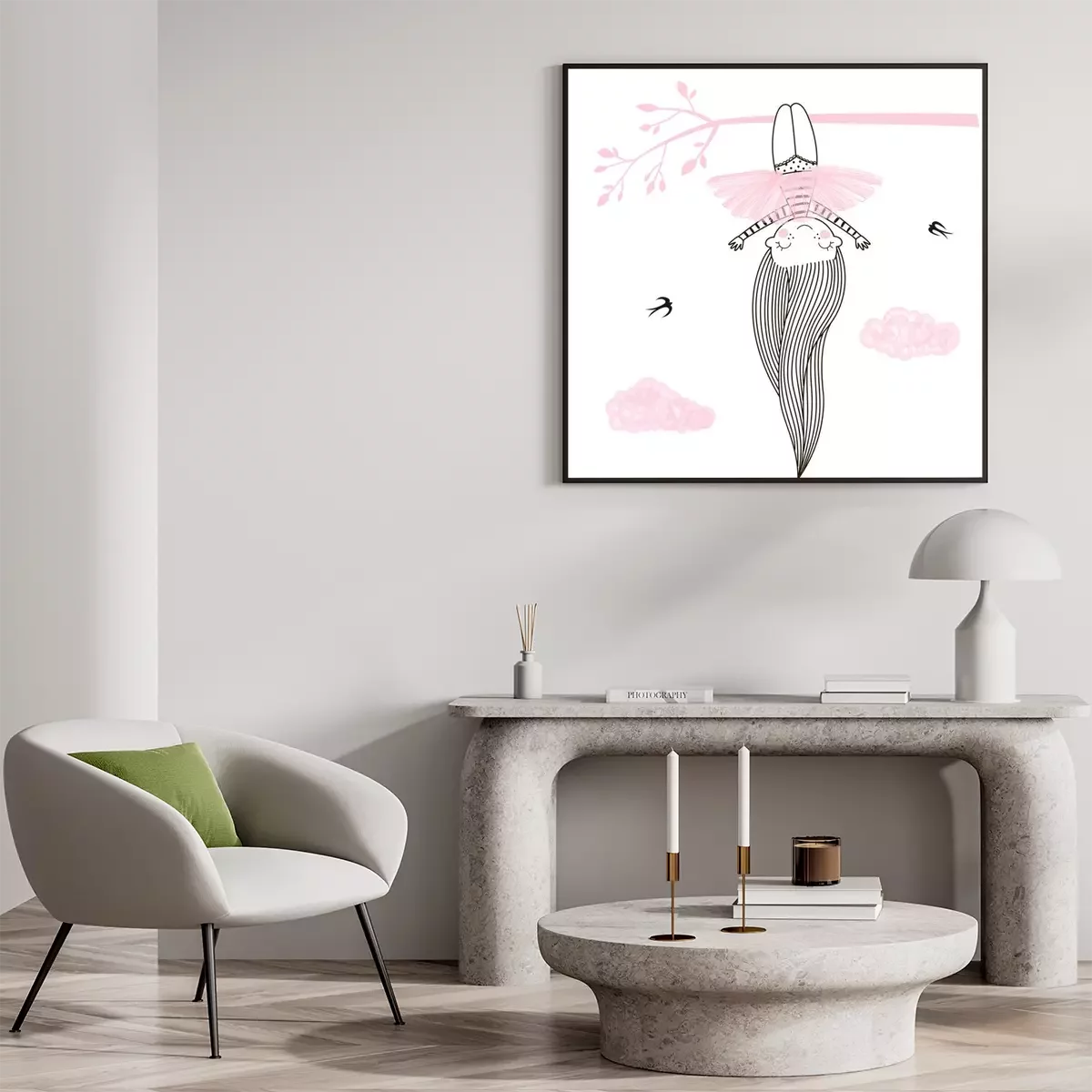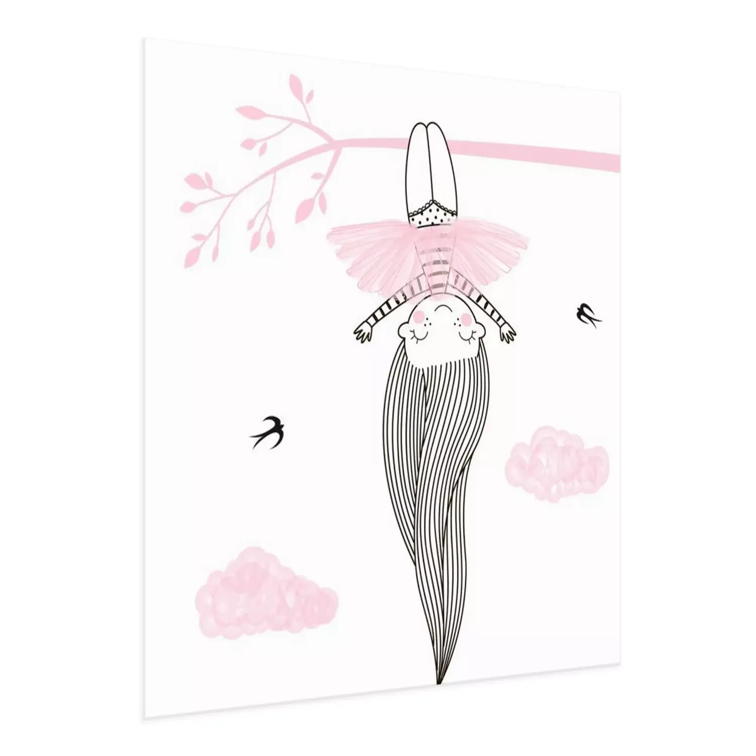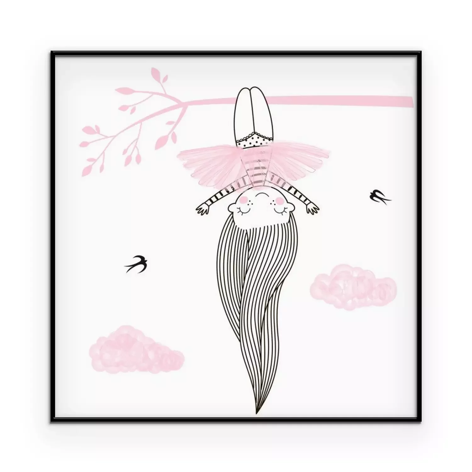 Poster Een meisje dat ondersteboven aan een tak hangt