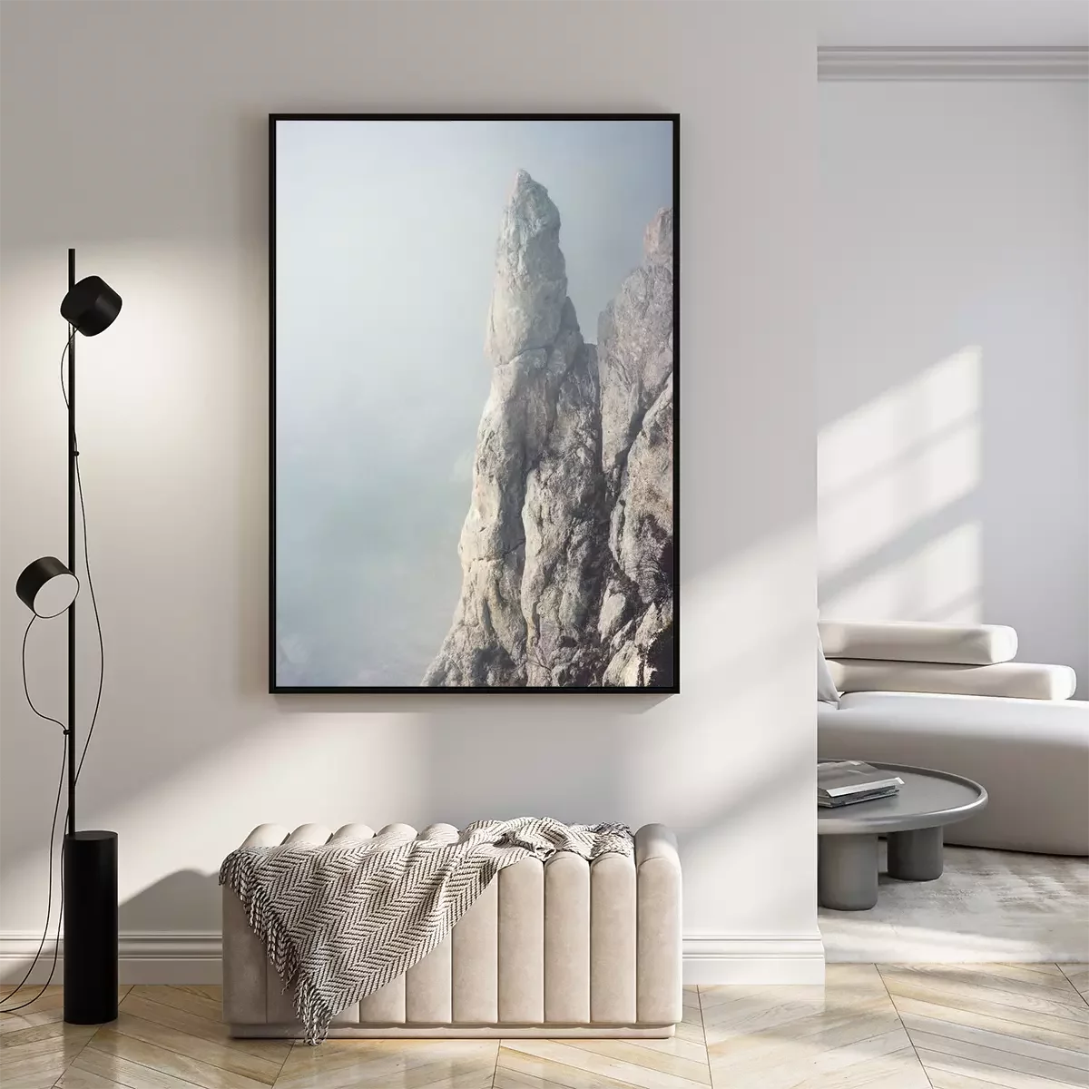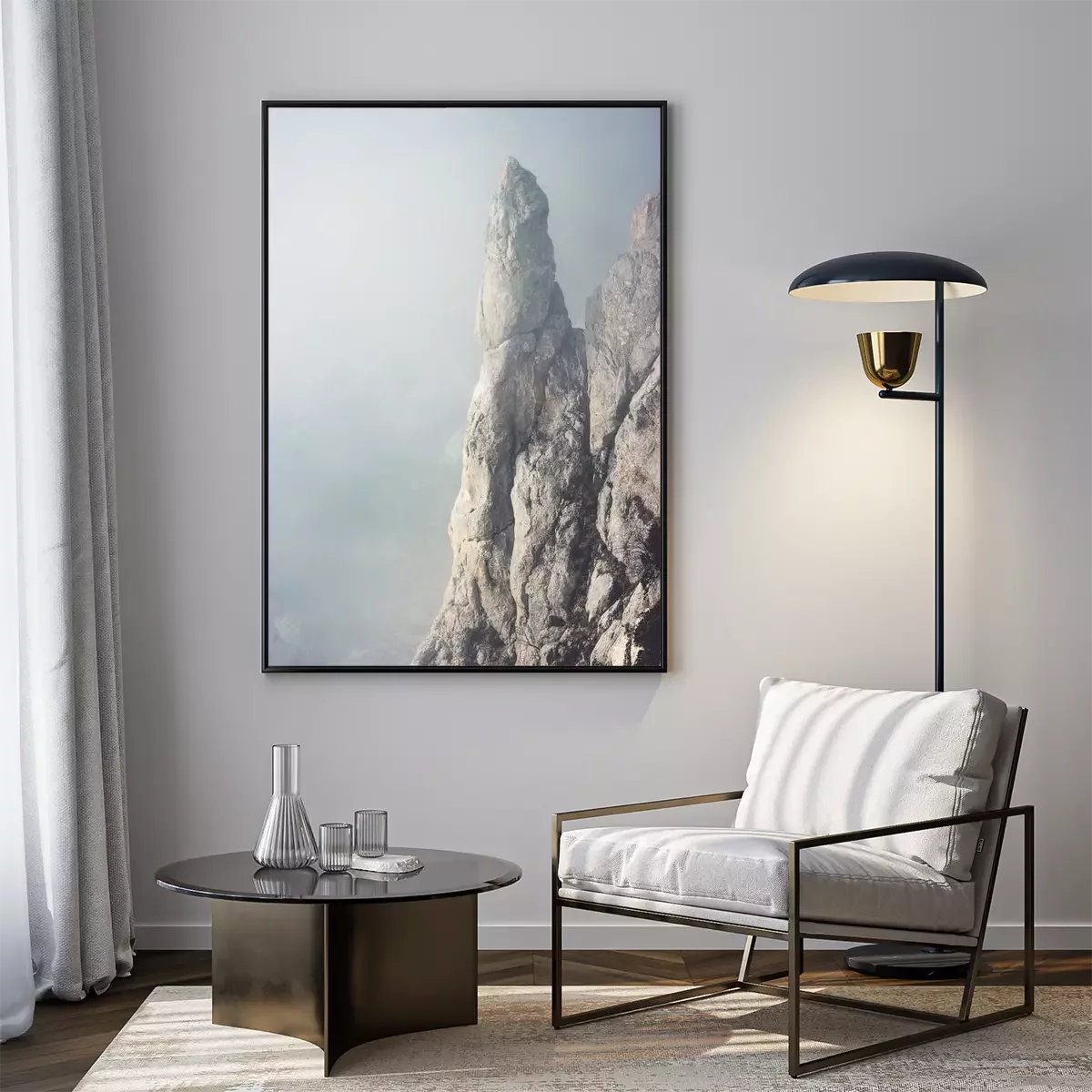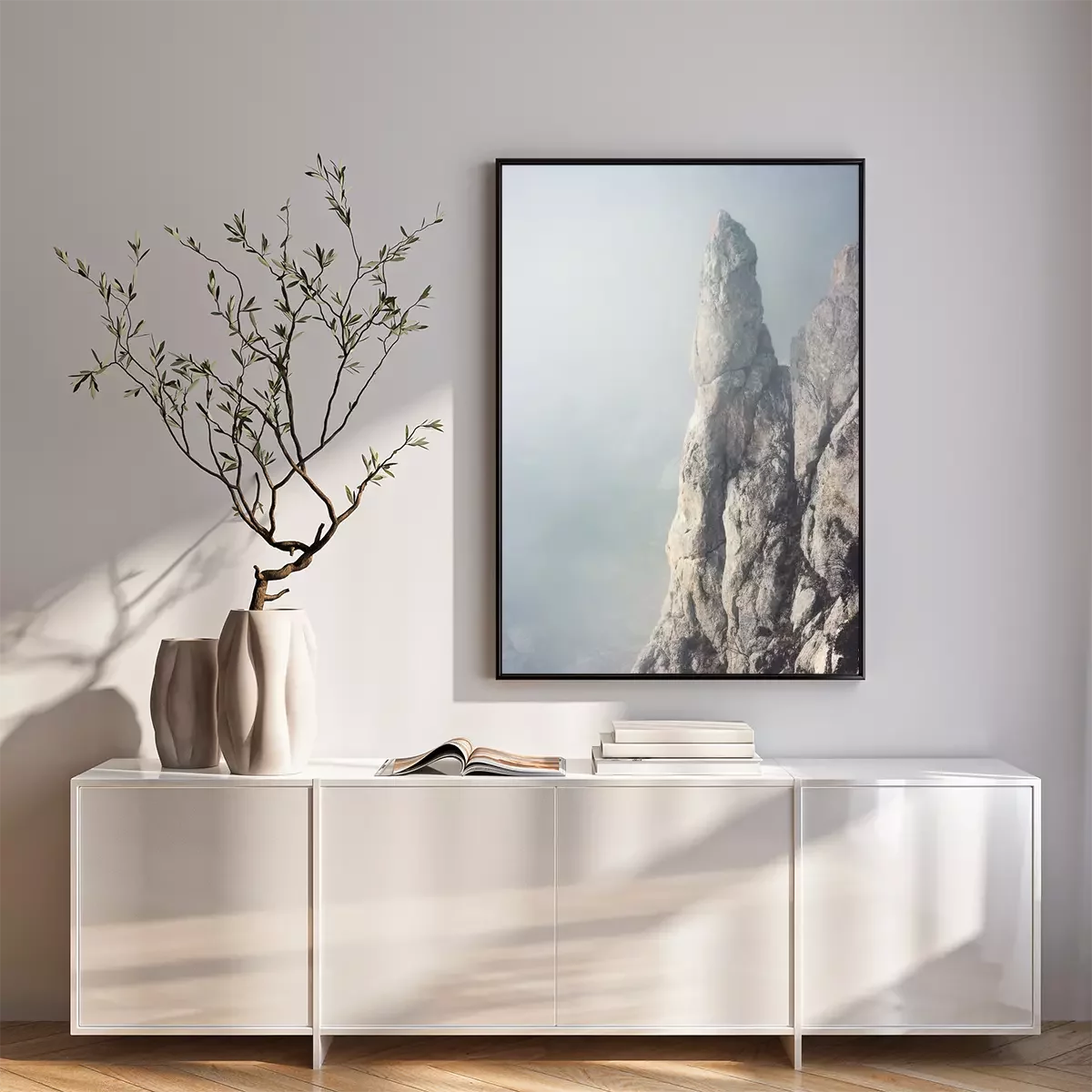 Poster: Een minimalistisch landschap van bergtoppen
