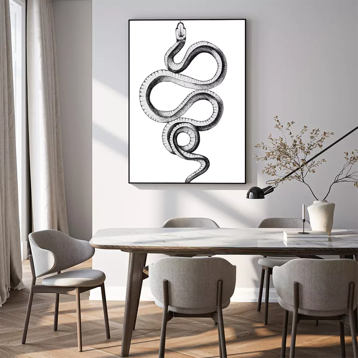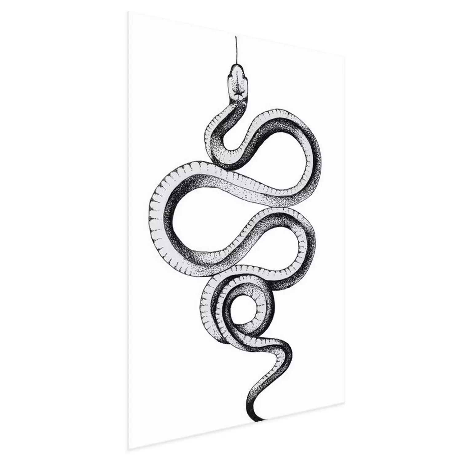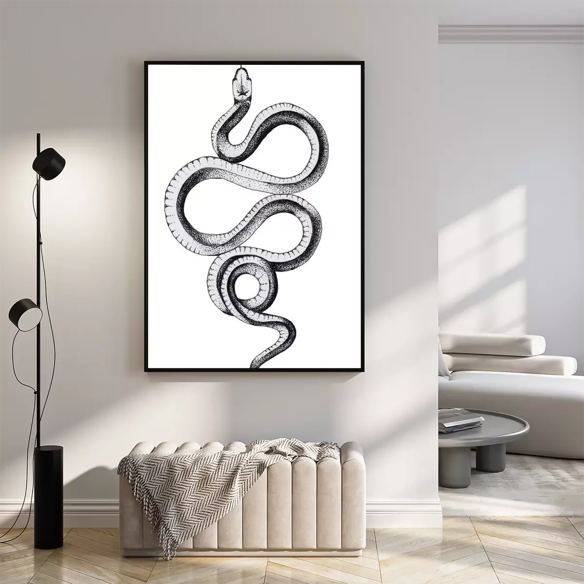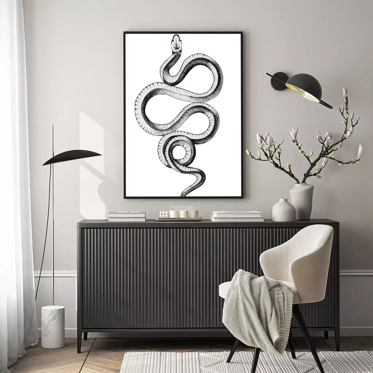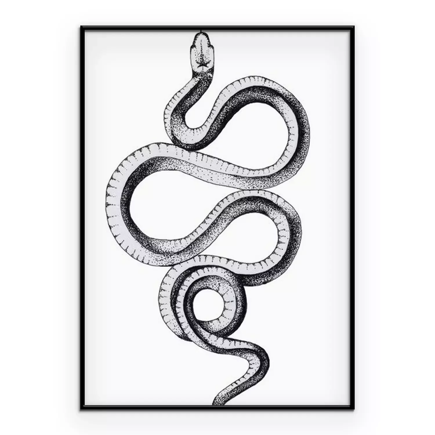 Poster: Een minimalistische tekening van een slang met zijn tong uit