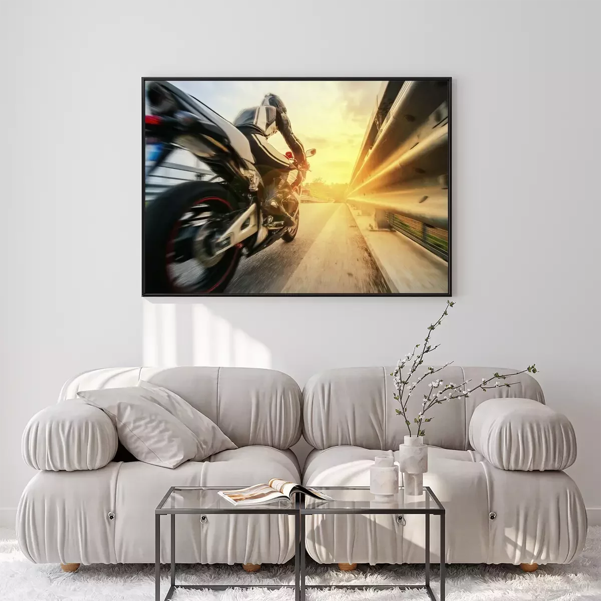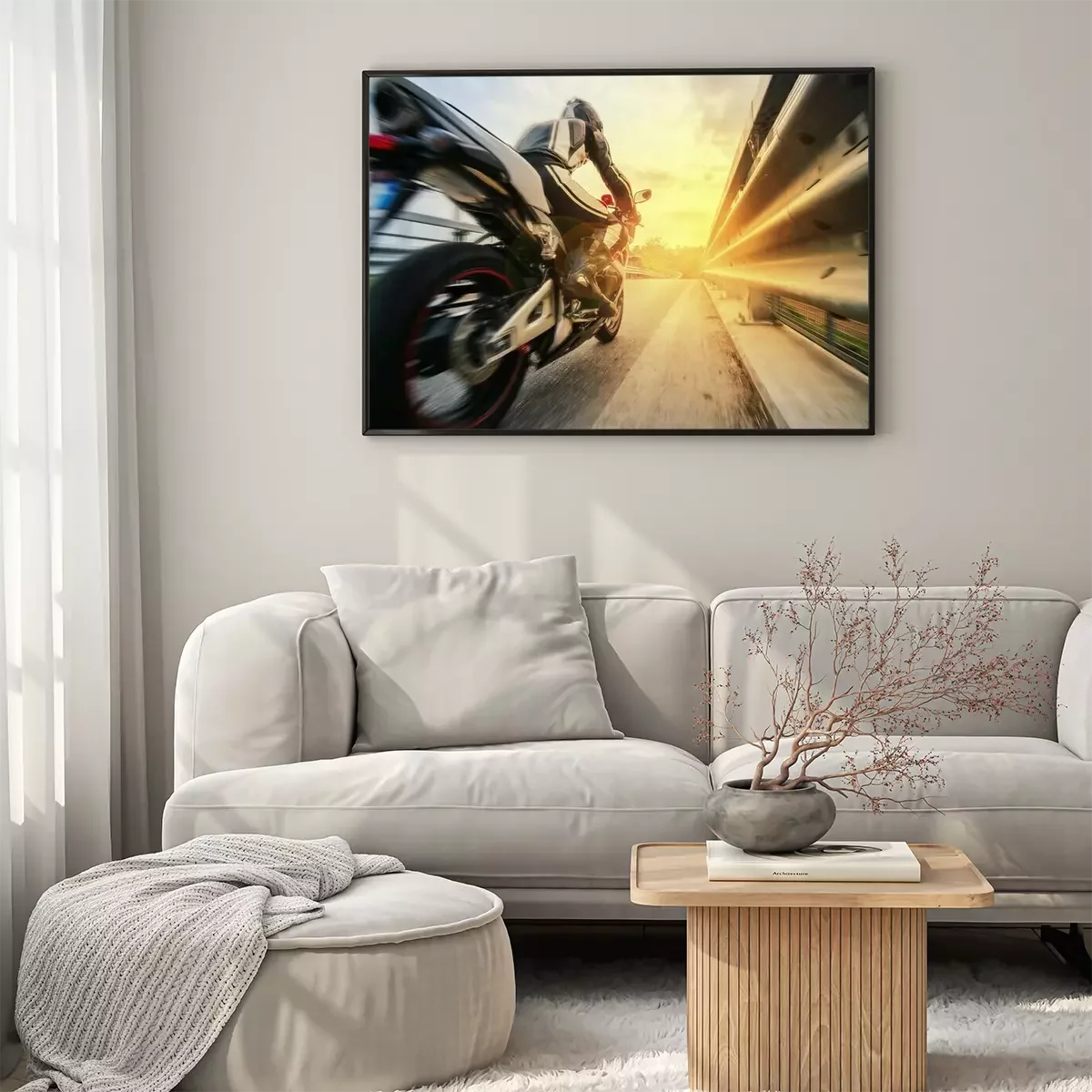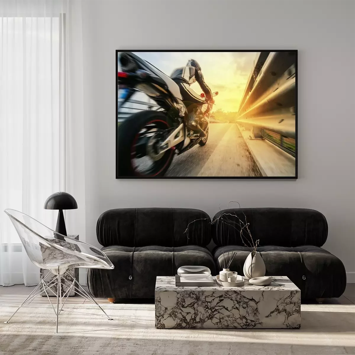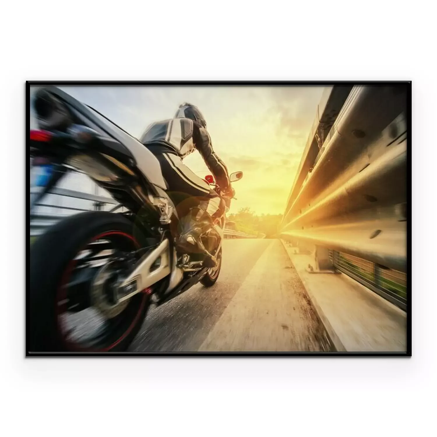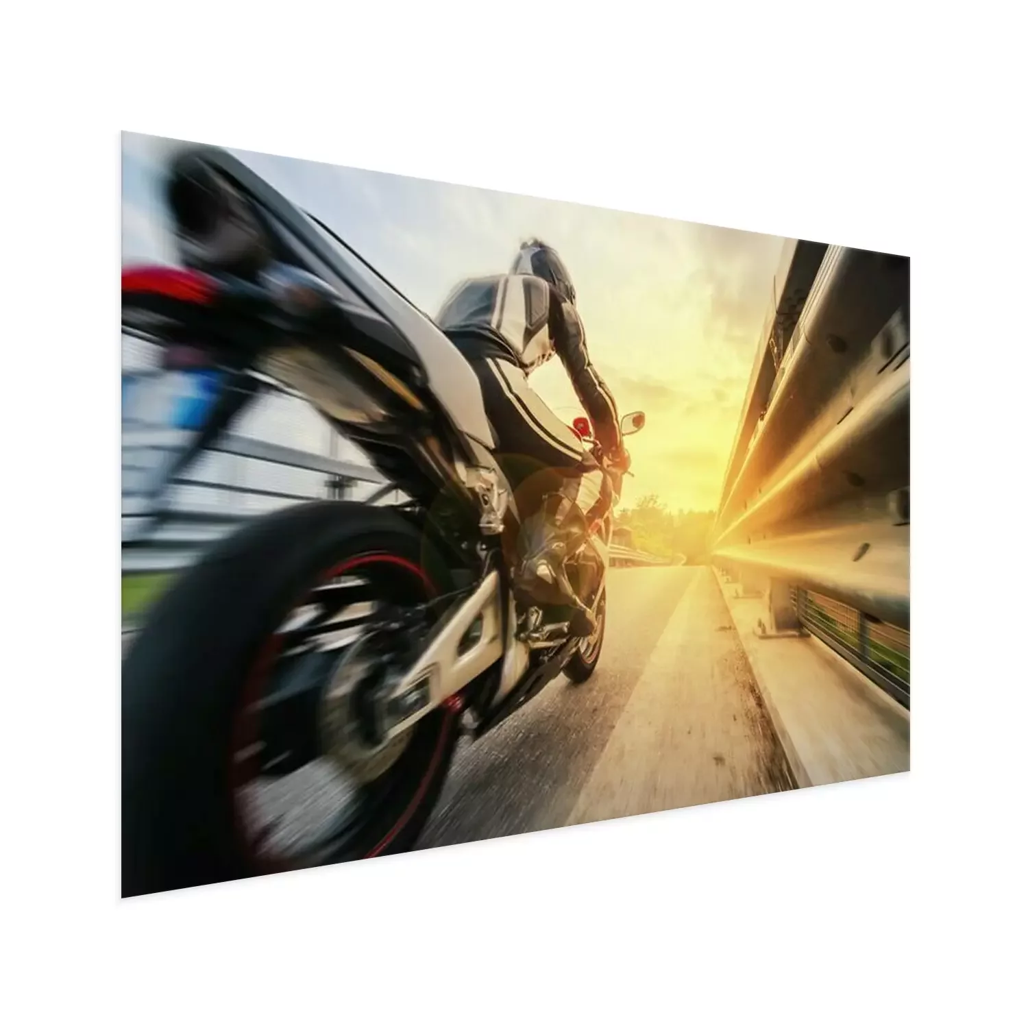 Poster Een motorrijder die te hard rijdt op de weg