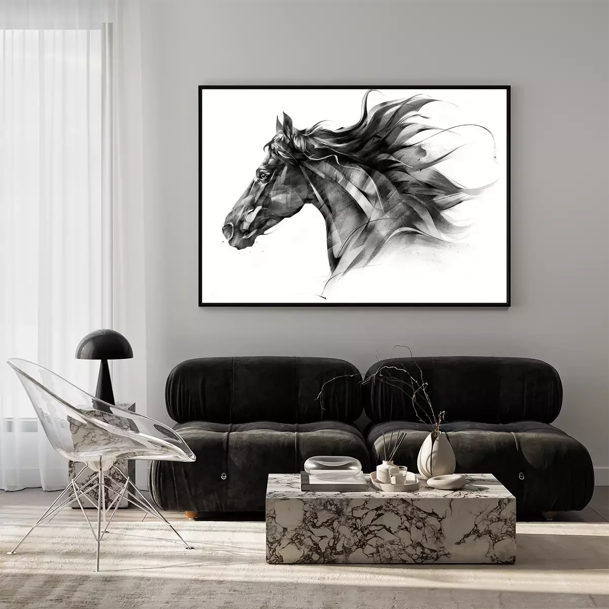 Poster: Een paard met golvende manen