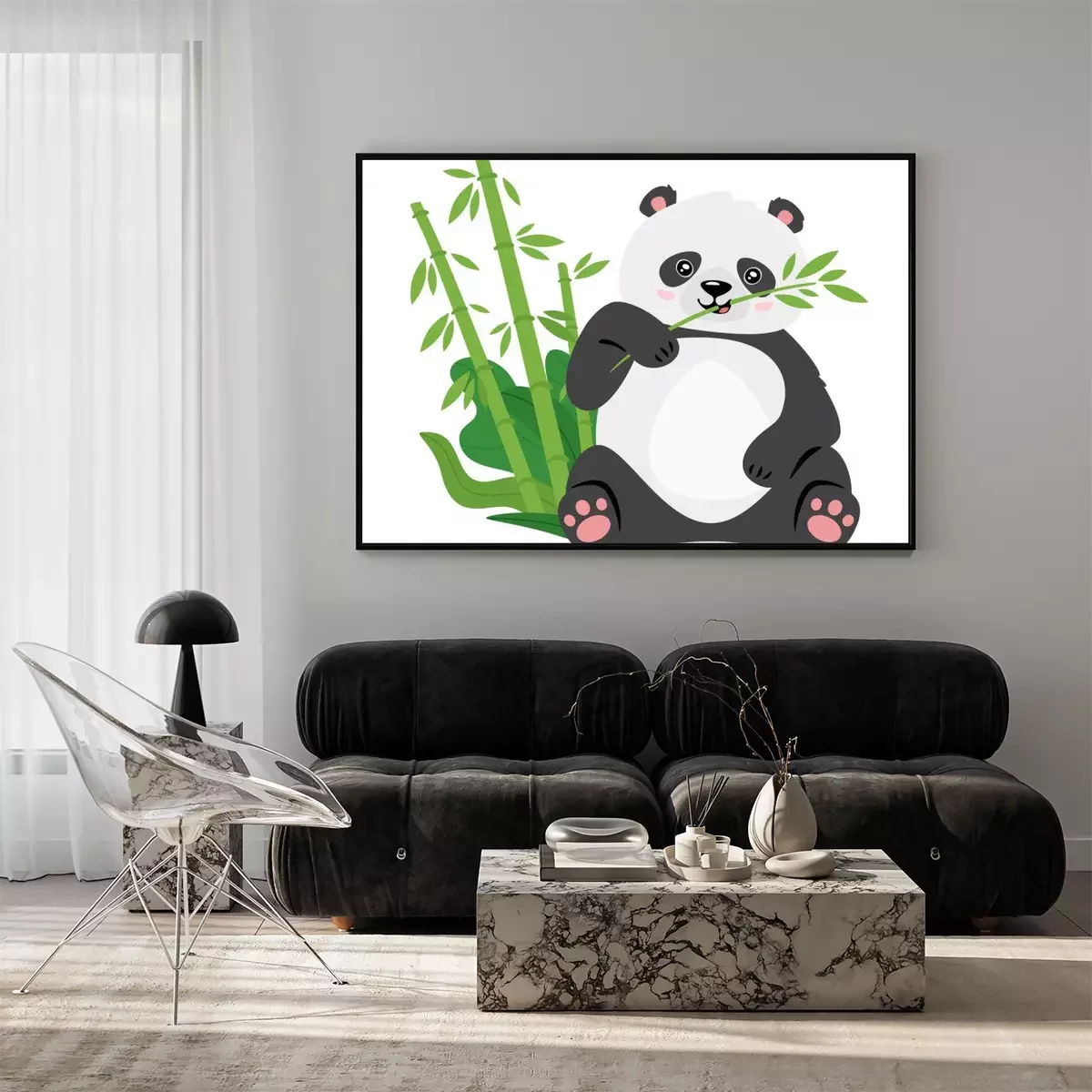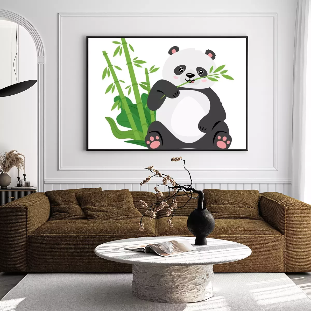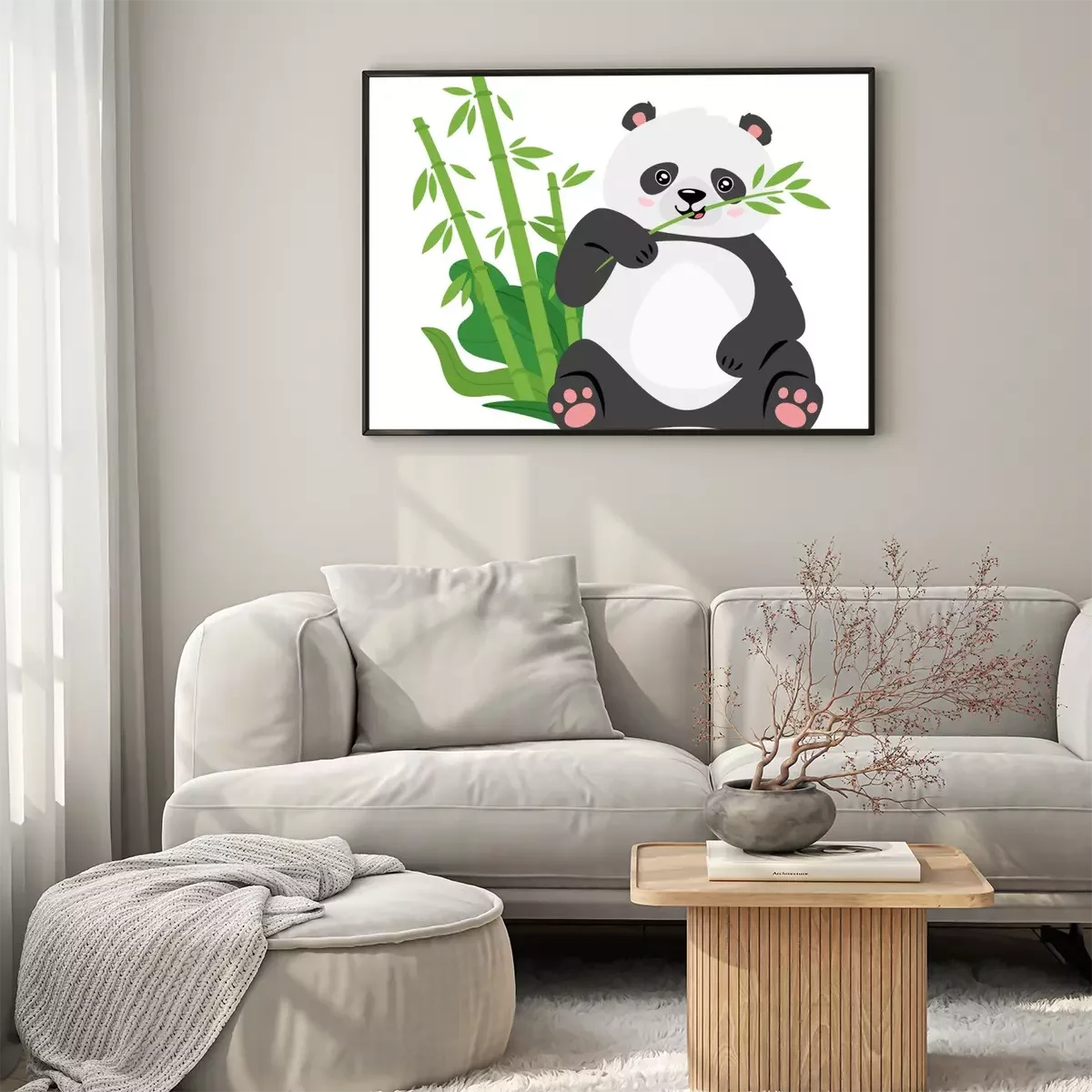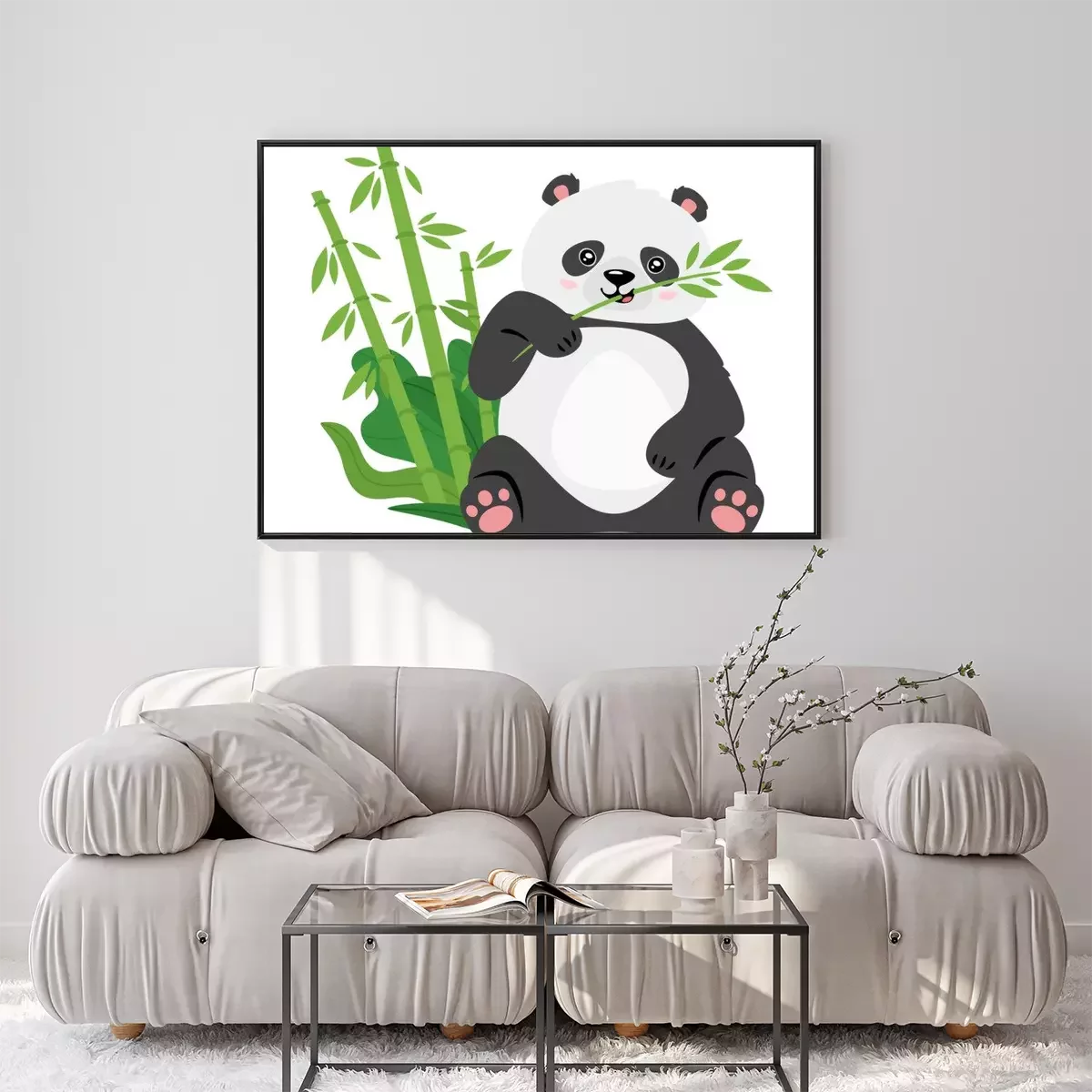 Poster: Een panda die een bamboetak in zijn poot houdt