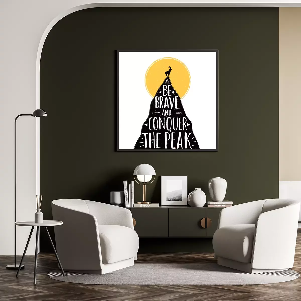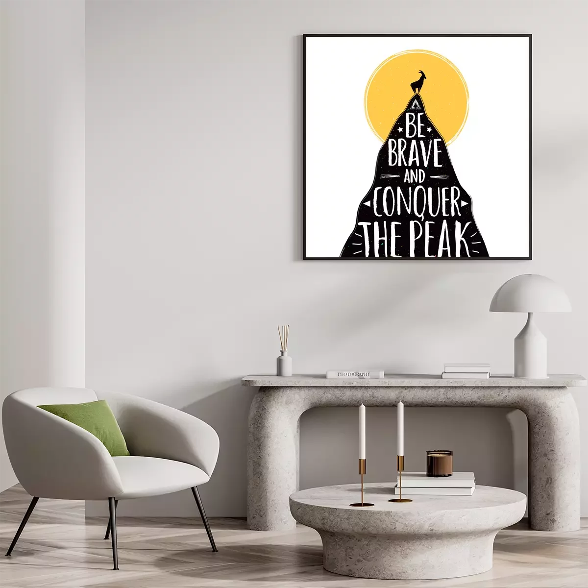 Poster Een patroon met een berg tegen de zon en een inspirerende slogan.