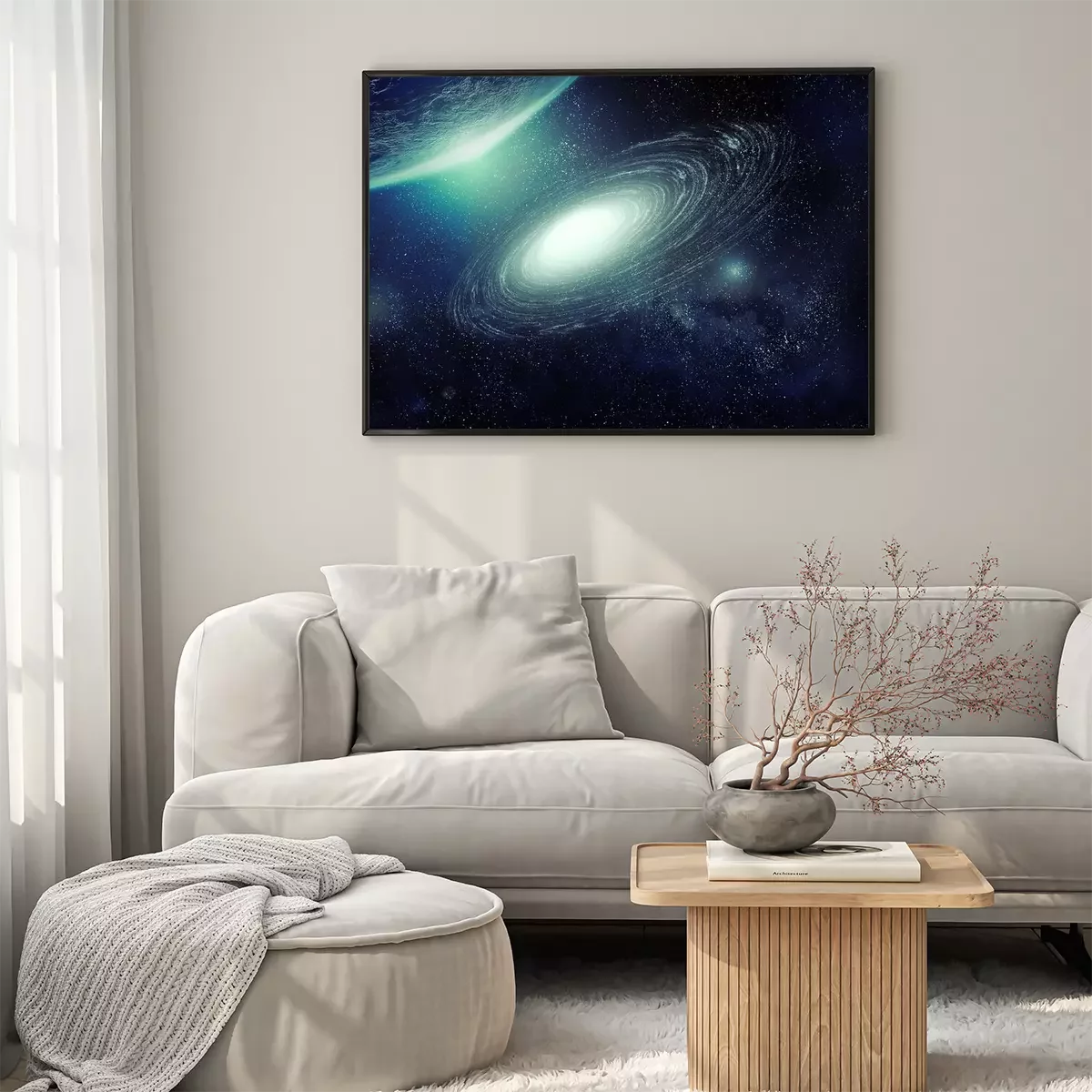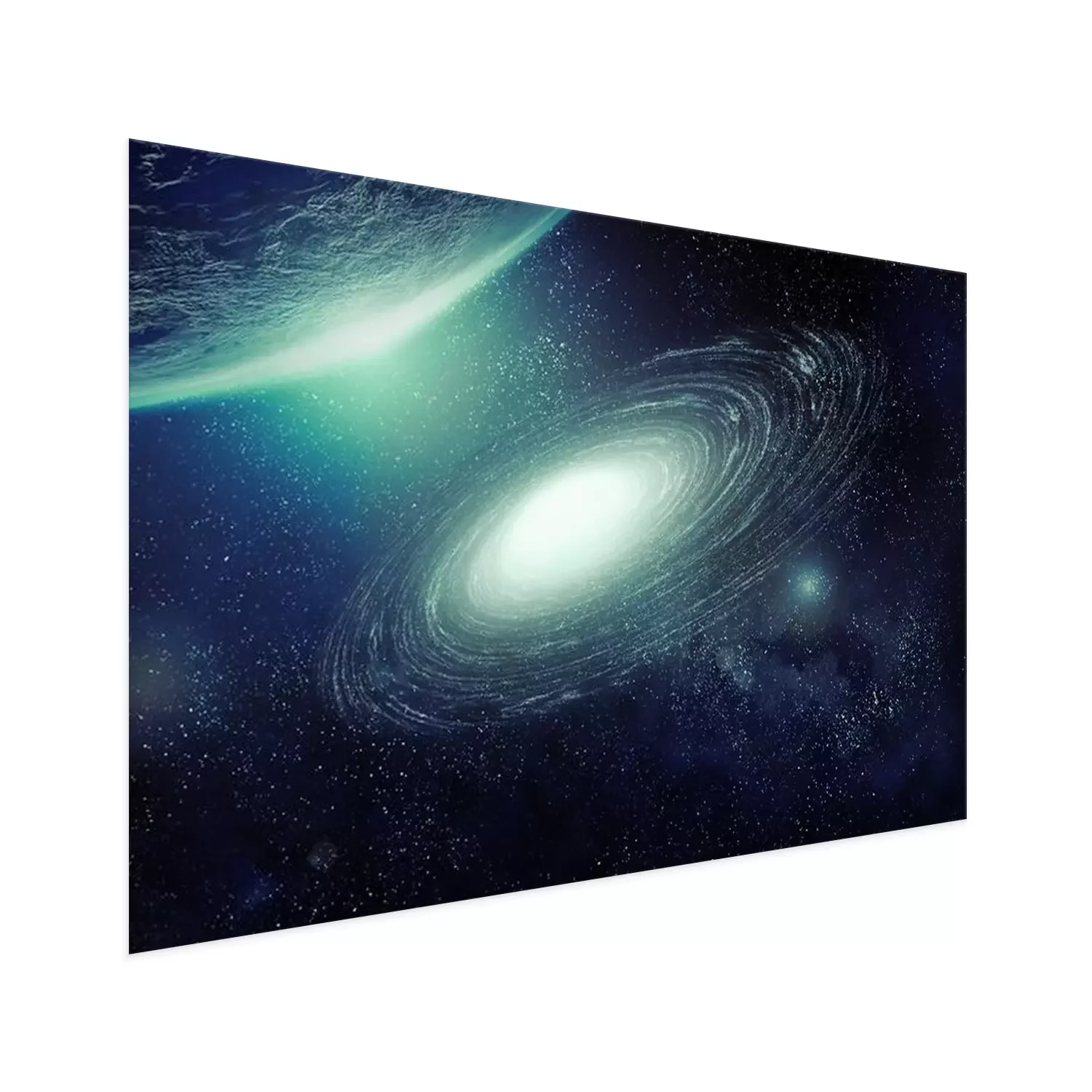 Poster: Een prachtig sterrenstelsel vergezeld van een planeet