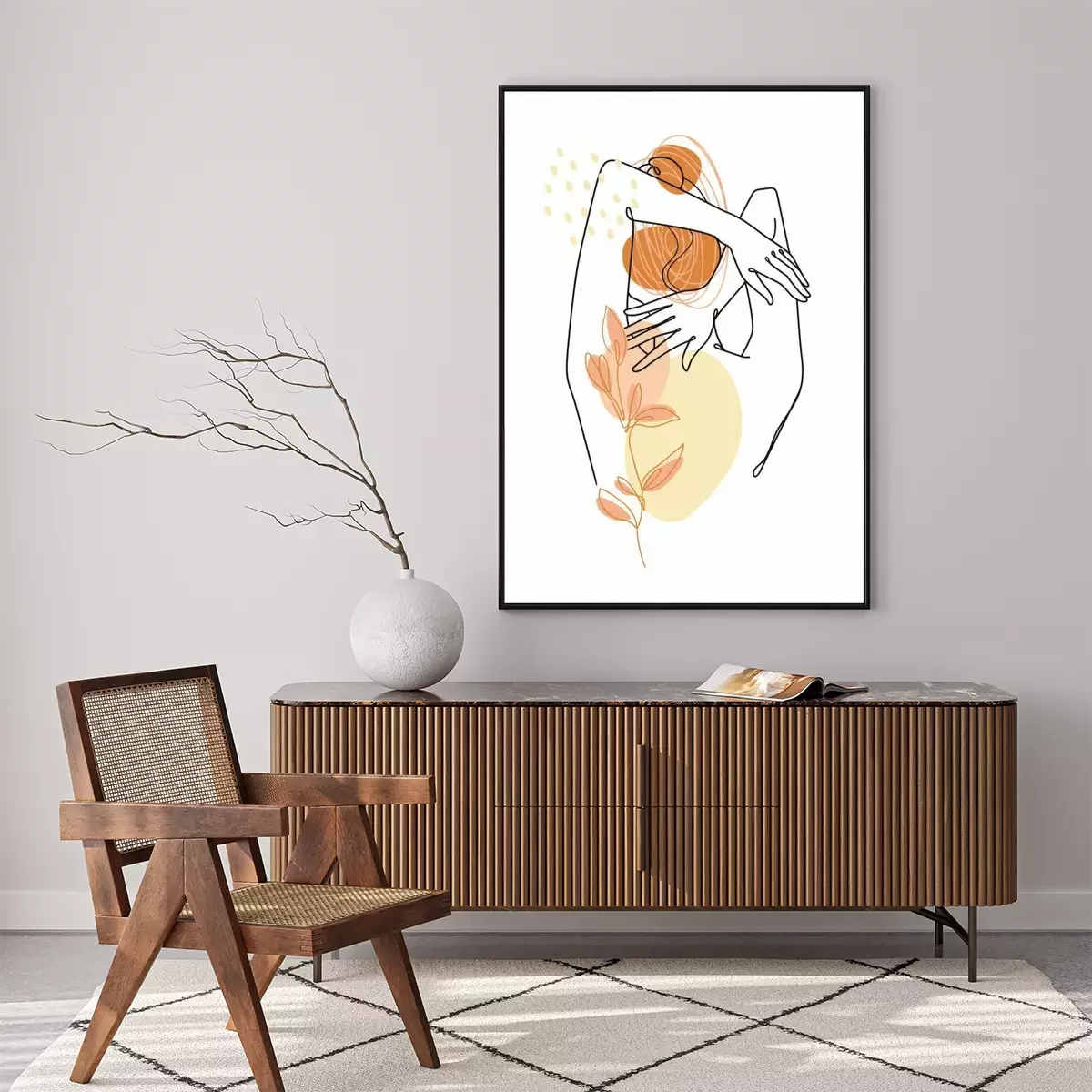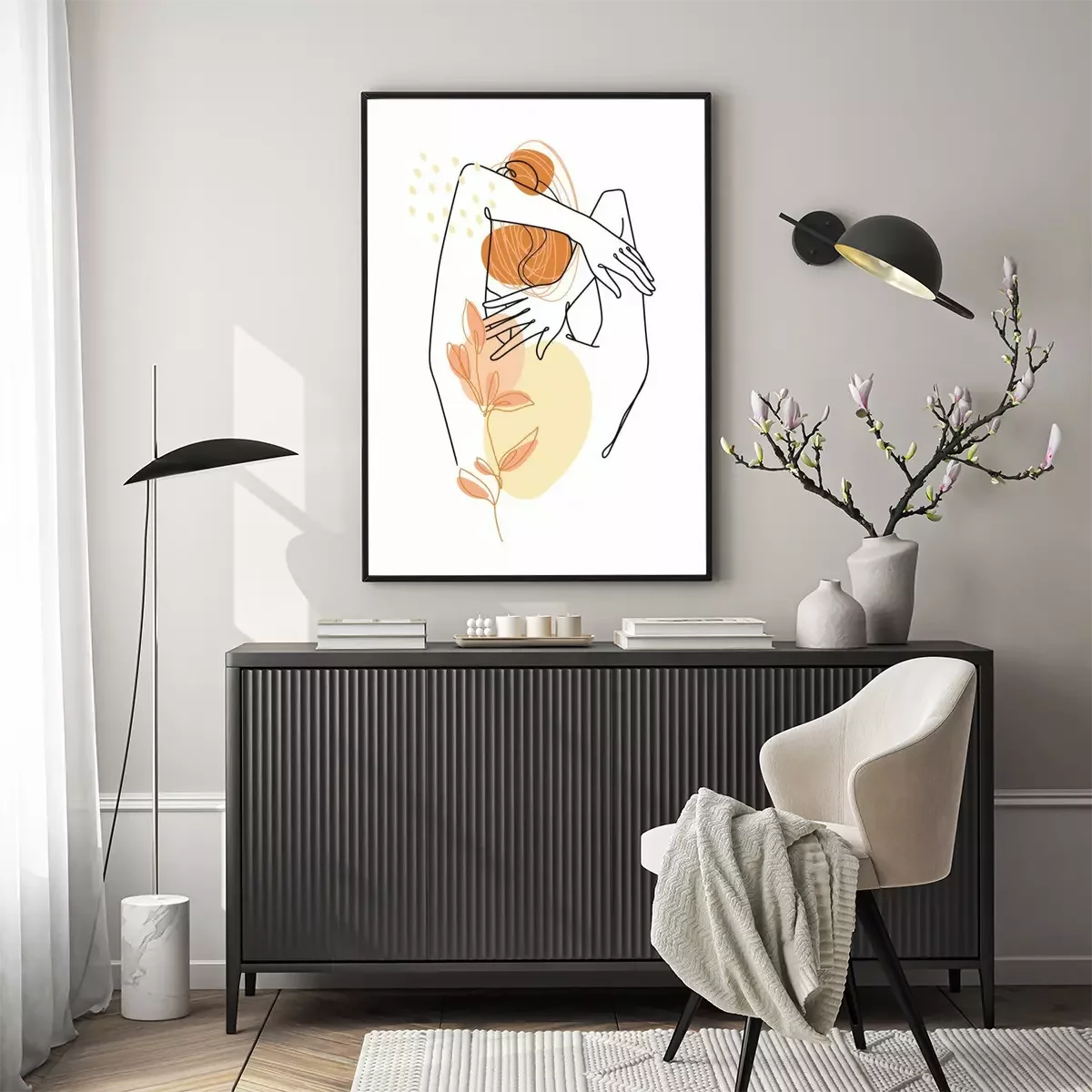 Poster: Een roodharige vrouw geschilderd met één lijn