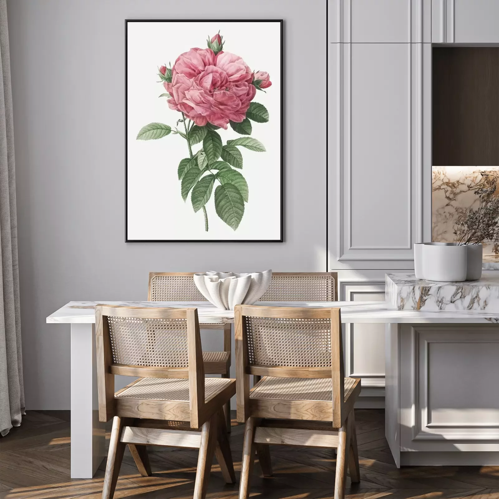 Poster: Een roos omgeven door knoppen