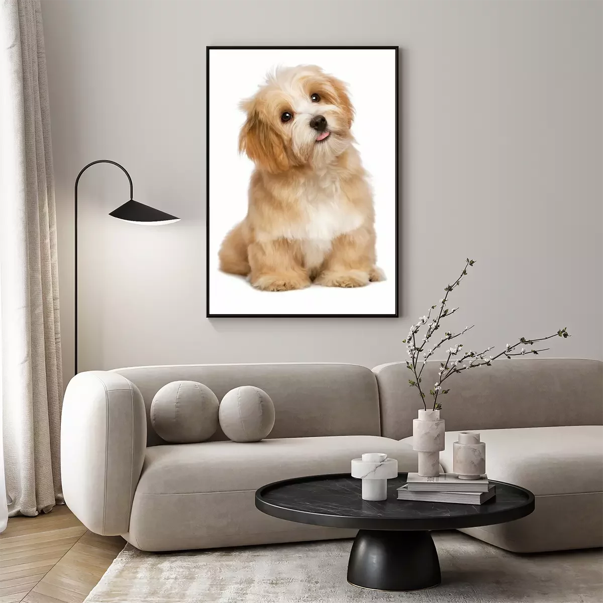 Een foto van een lachende puppy.Probleemloze bezorging verzorgd door vertrouwde vervoerders