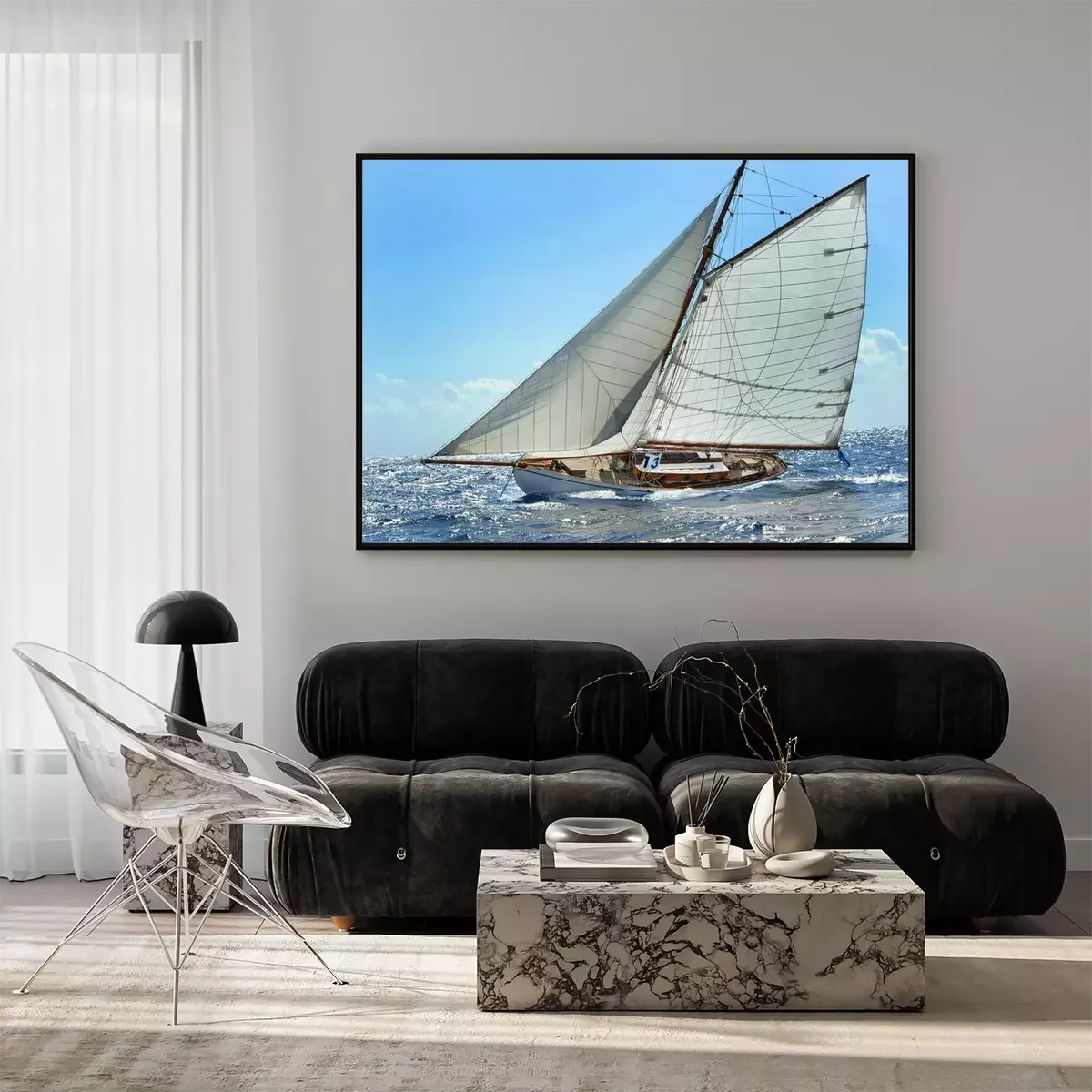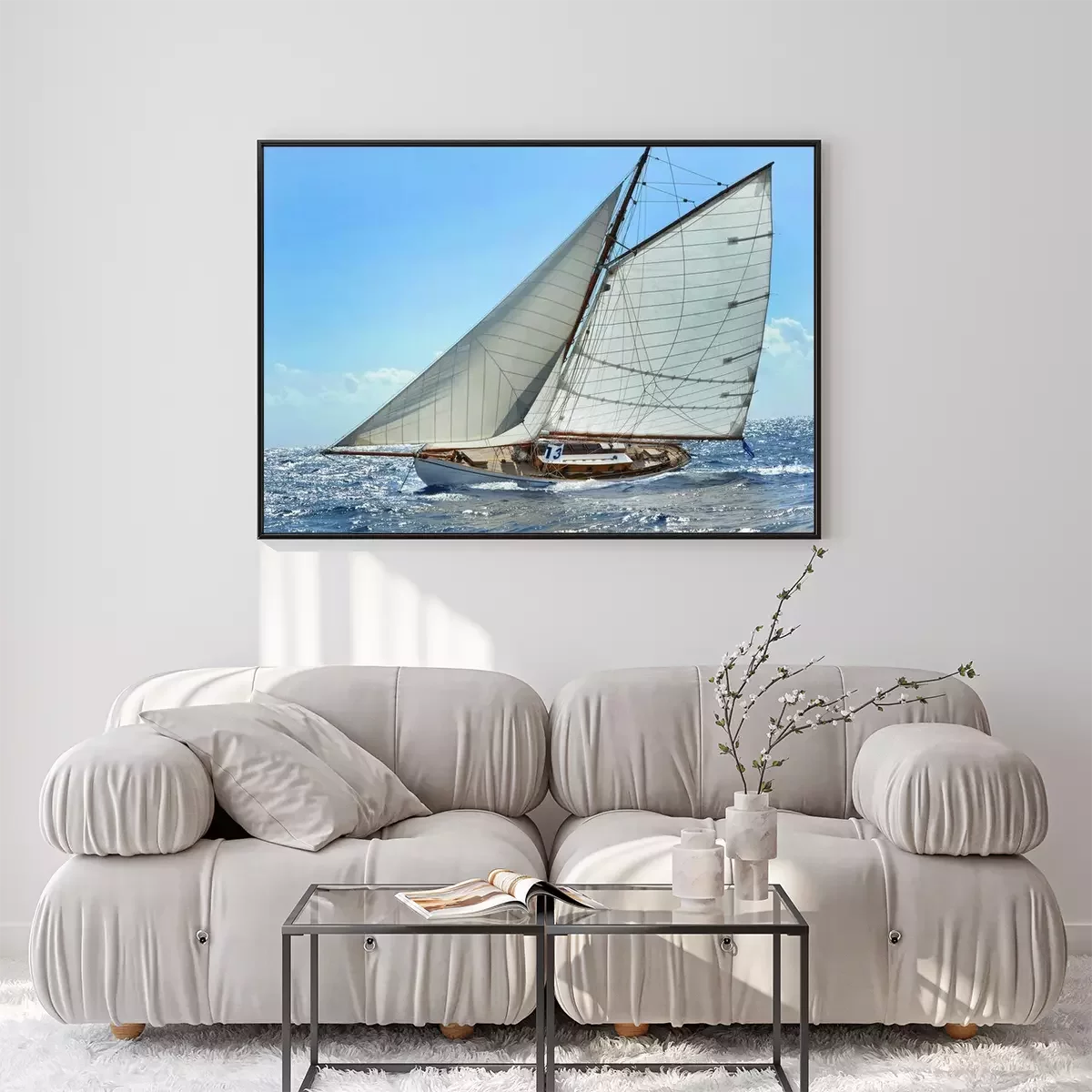Zeilboot op een bruisende oceaanFotobehang