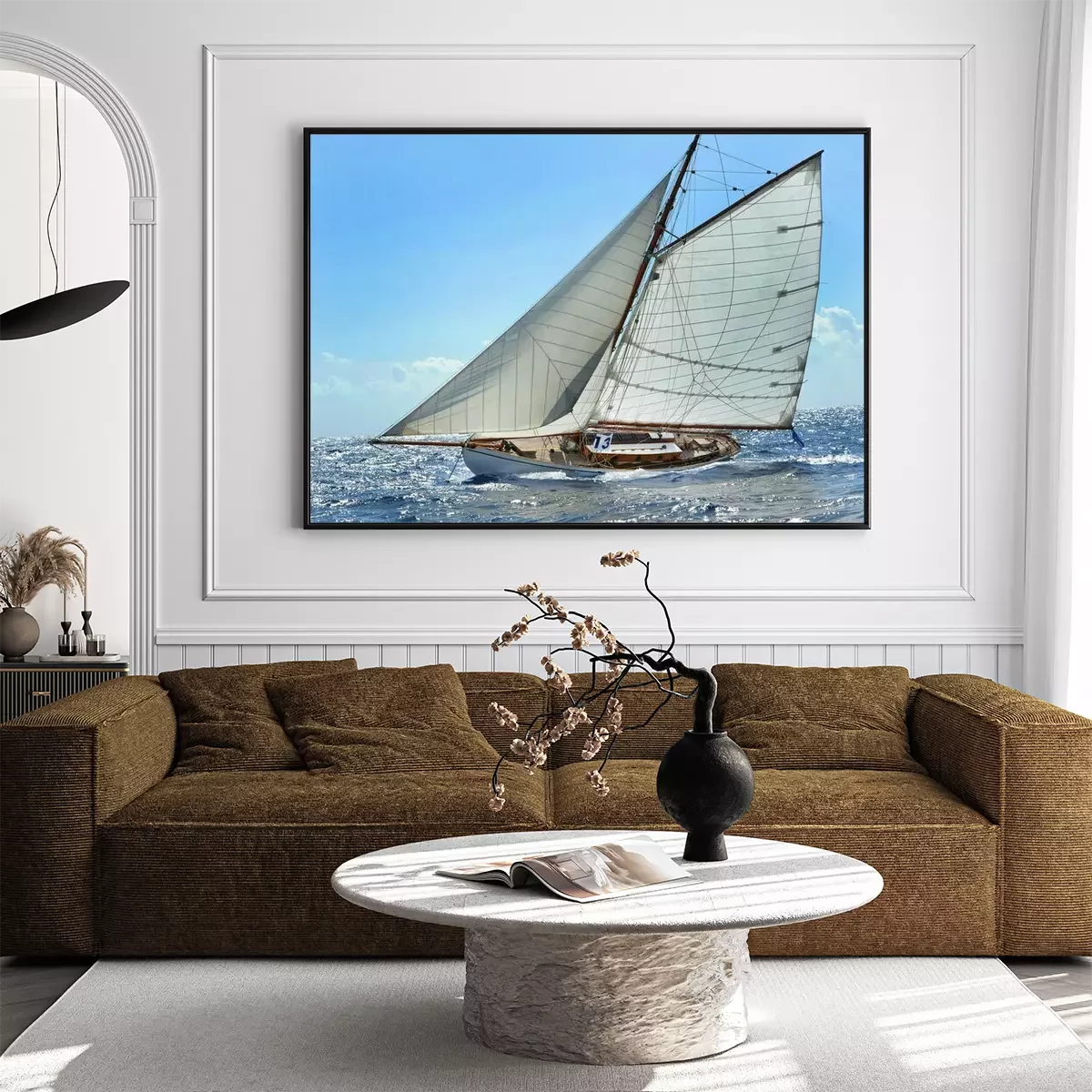 Een zeilboot die op het water manoeuvreert.Probleemloze bezorging verzorgd door vertrouwde vervoerders