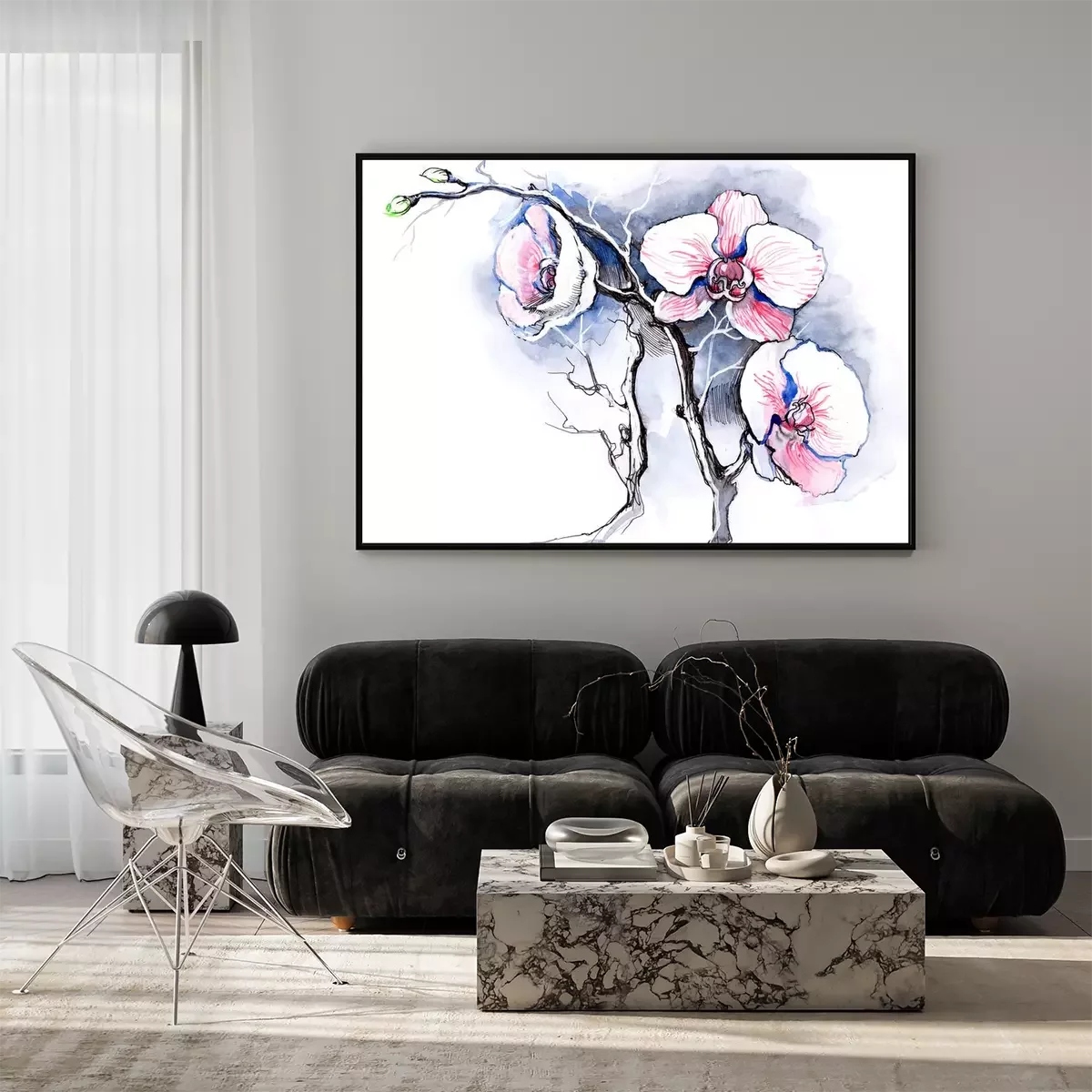 Poster: Een slaperige orchidee in een stormachtige omgeving