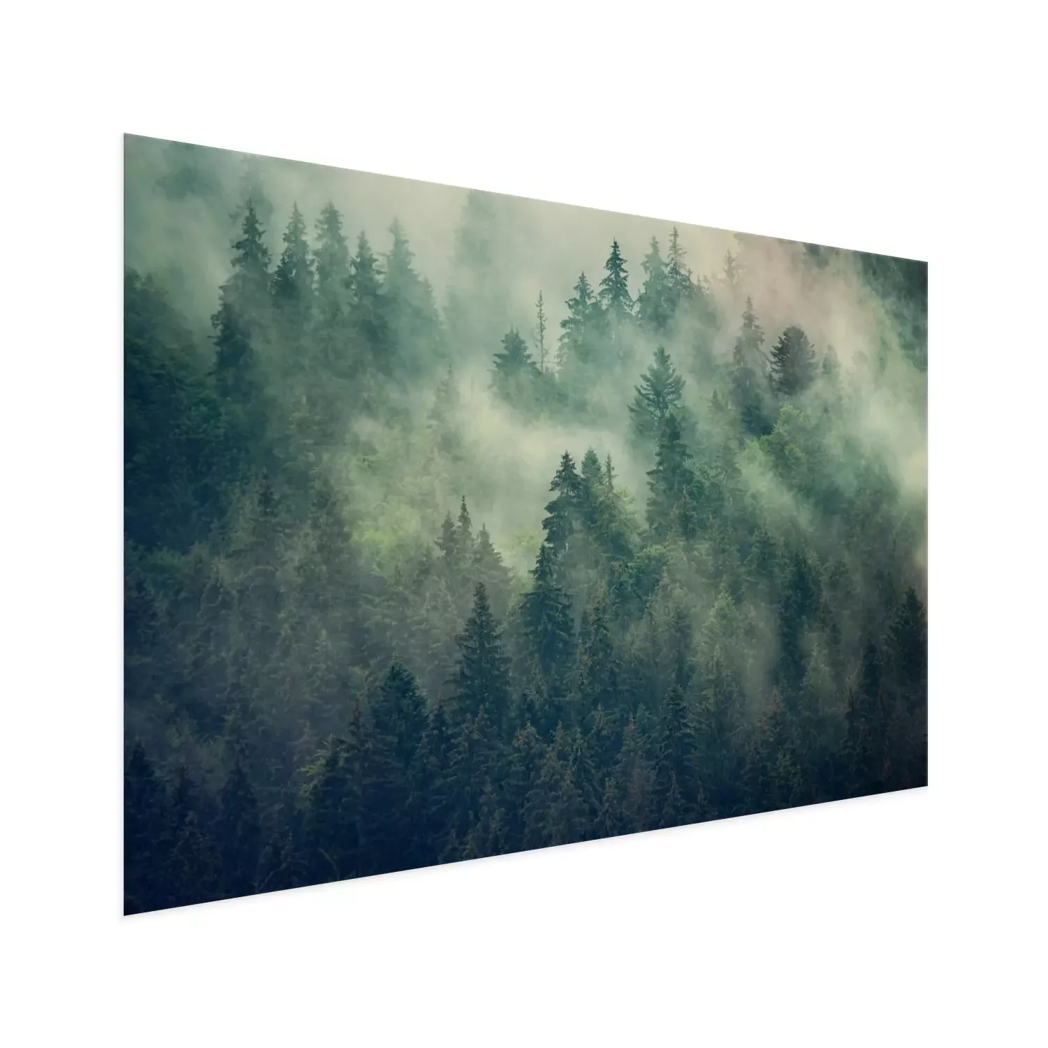 Donkergroen naaldbos in de mistFotobehang