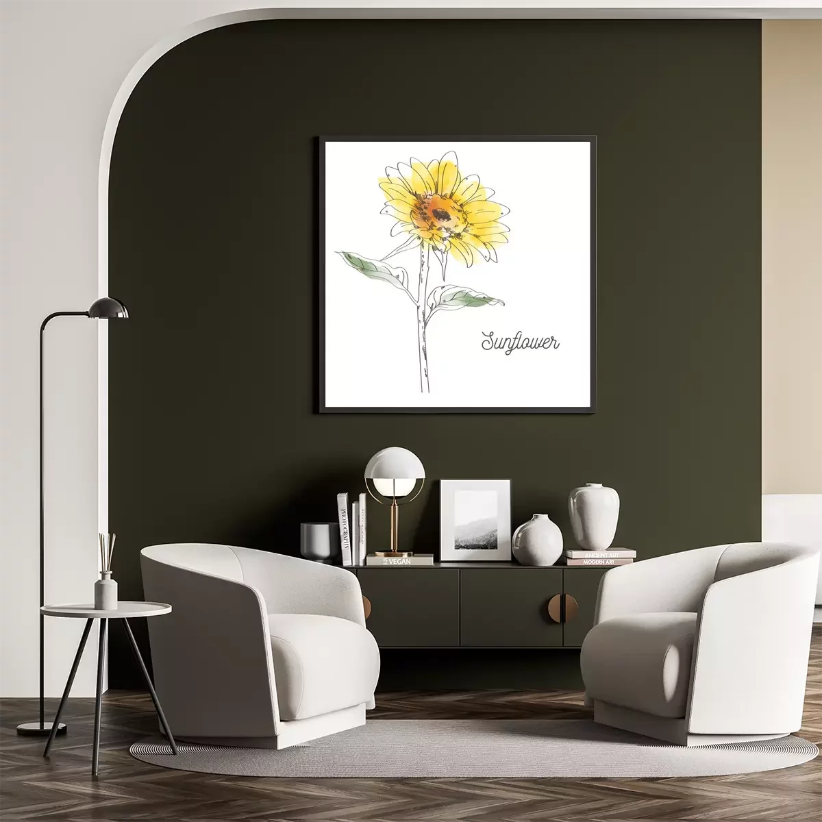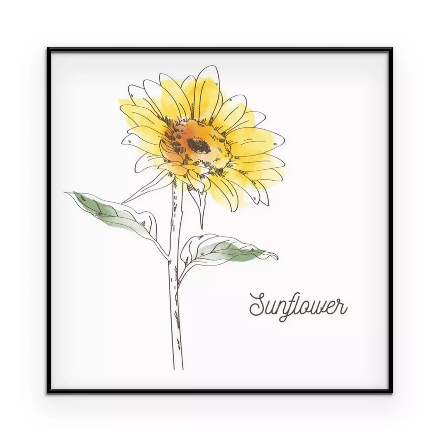 Poster: Een tekening van zonnebloemen gevuld met een kleurrijke patch