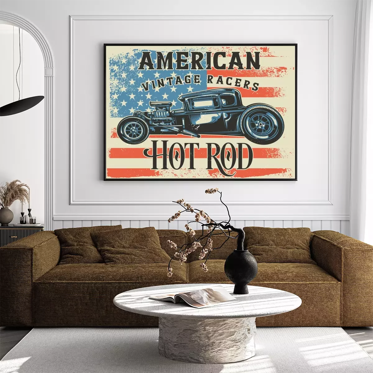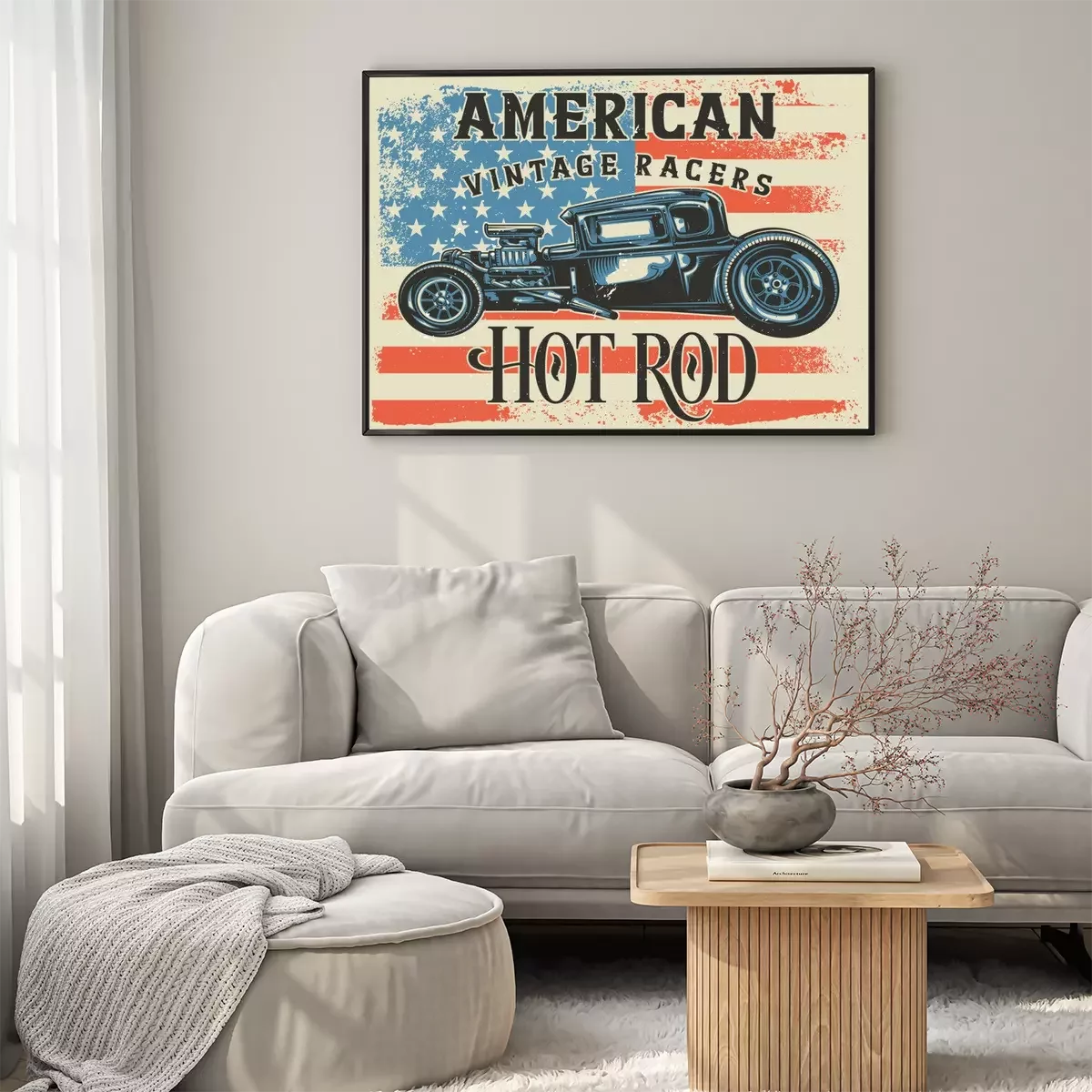 Poster: Een voertuig in de klassieke Amerikaanse uitvoering