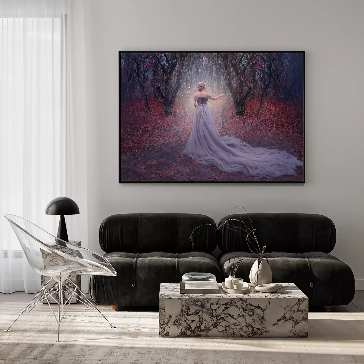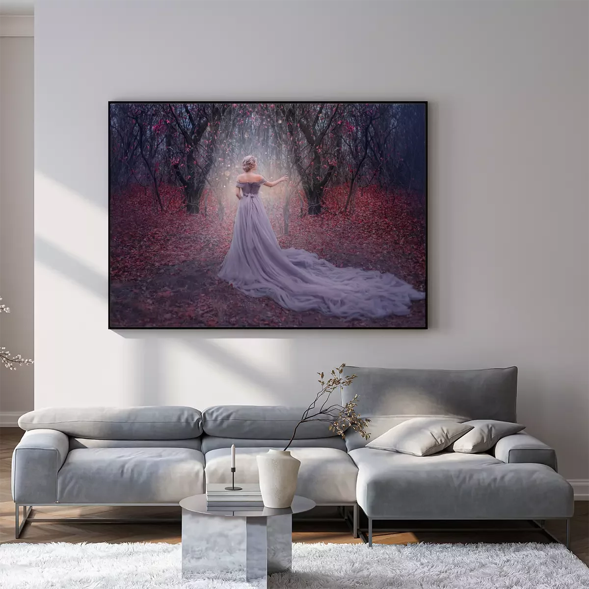 Poster: Een vrouw en een magische uitstraling in het bos