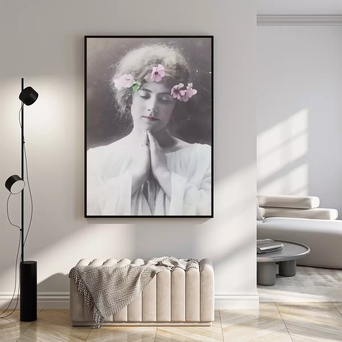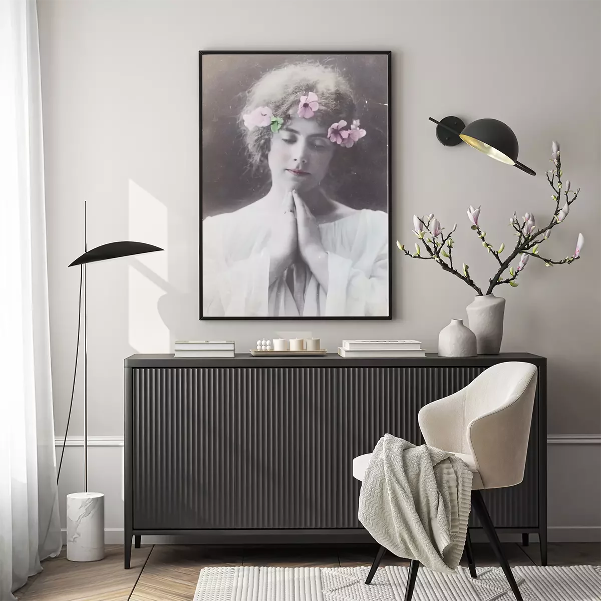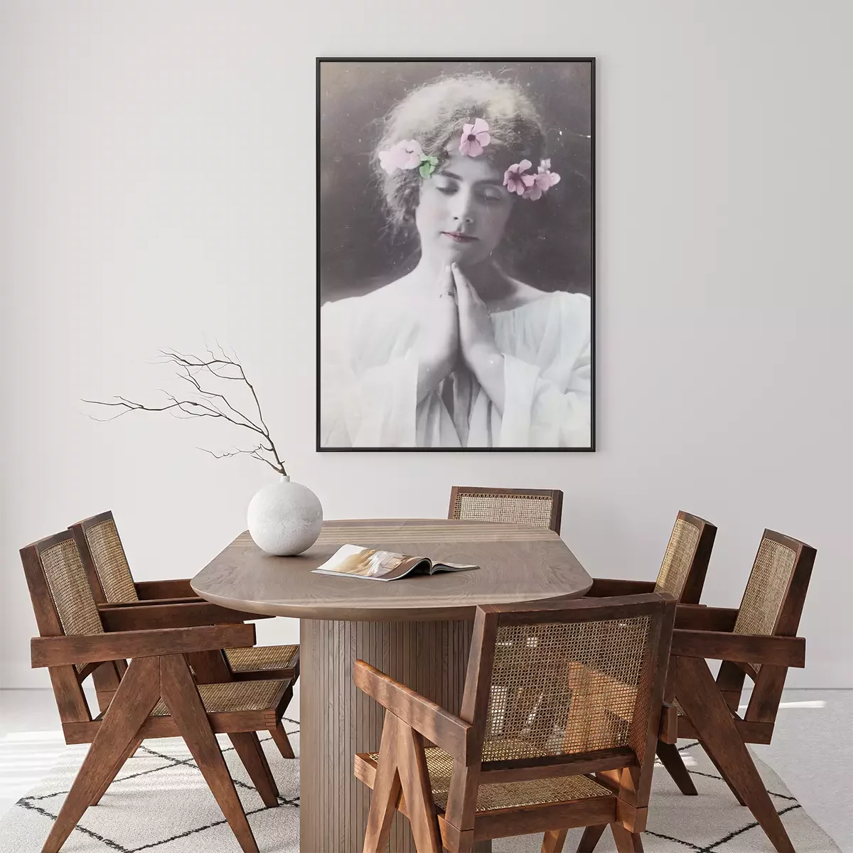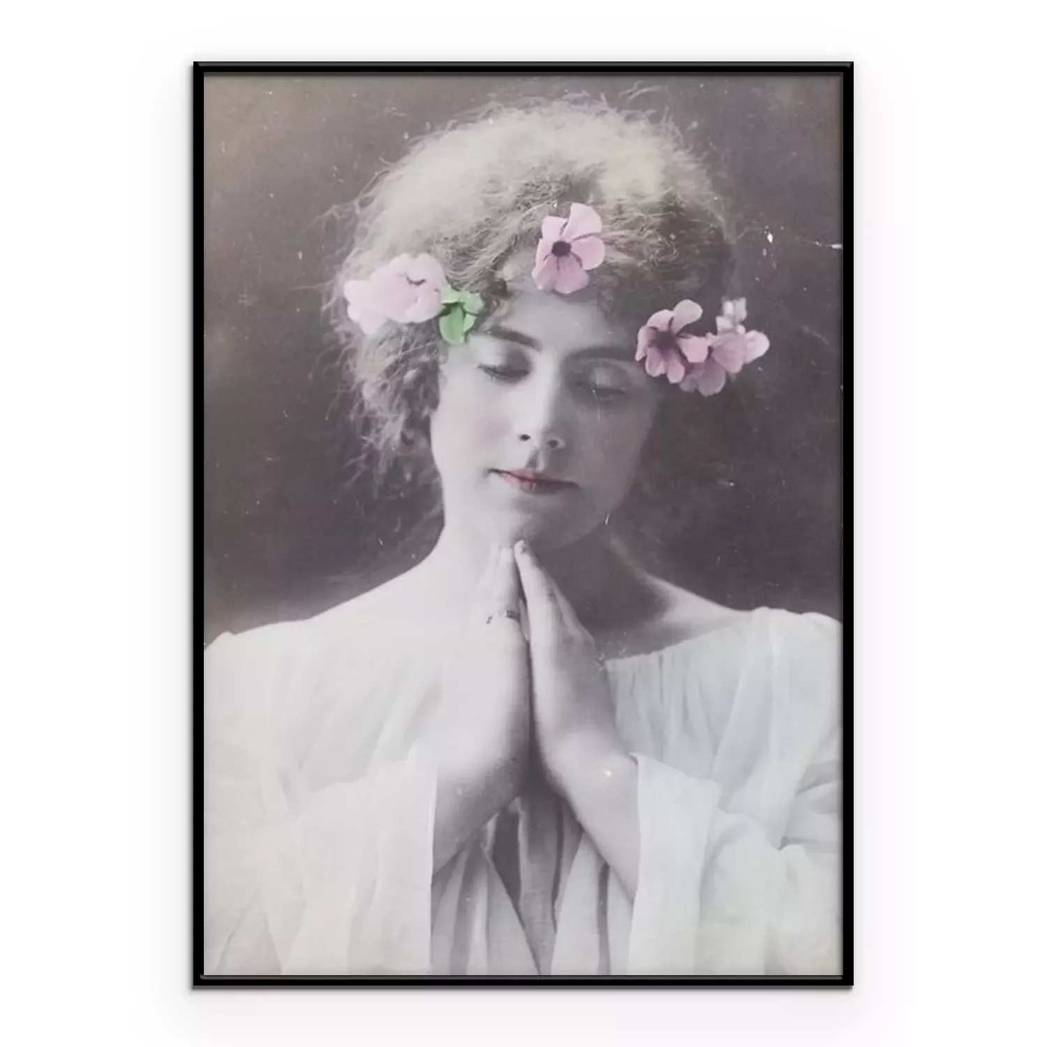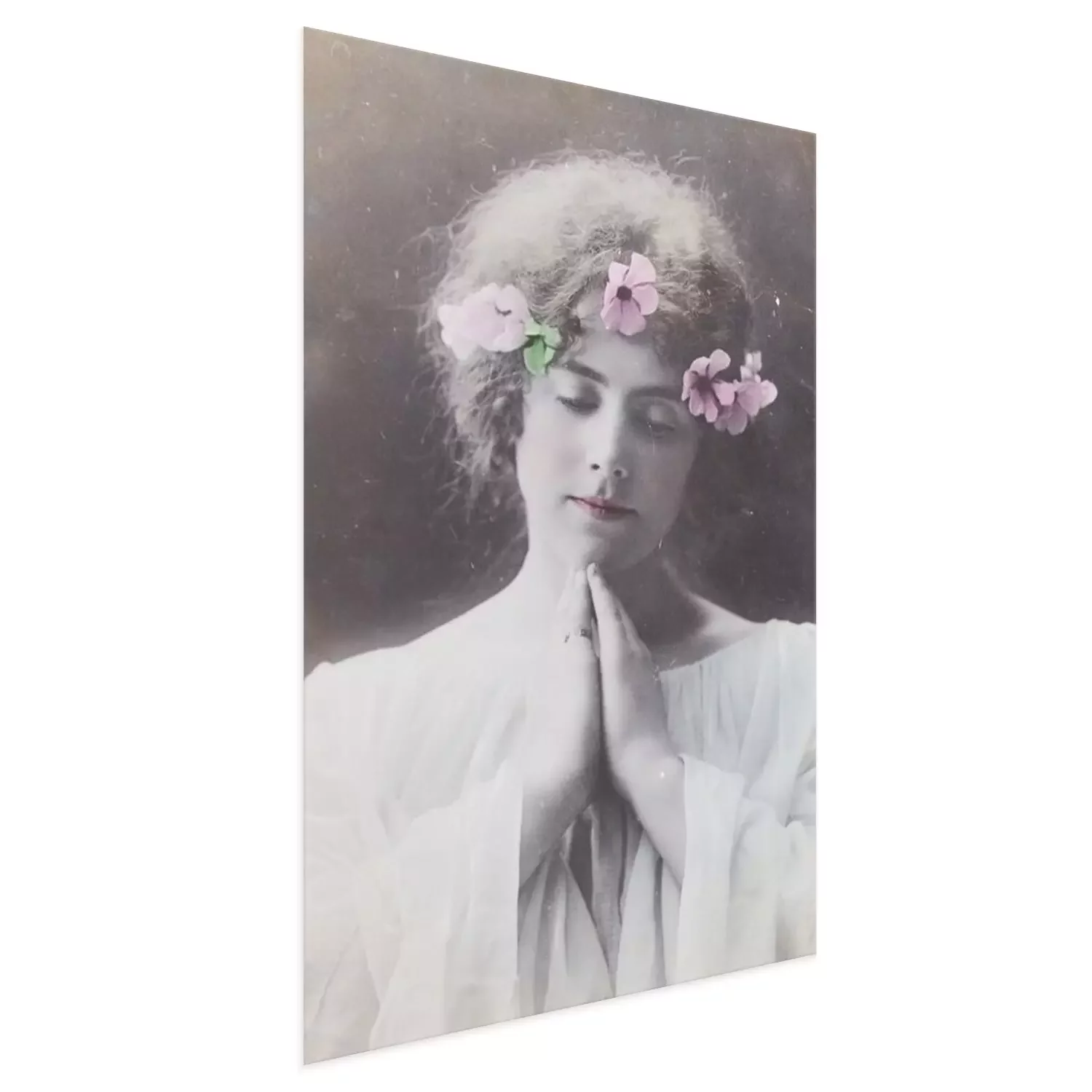 Poster: Een vrouw met bloemen in haar haar