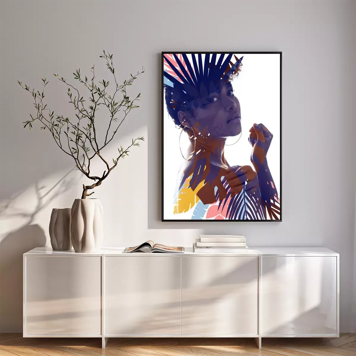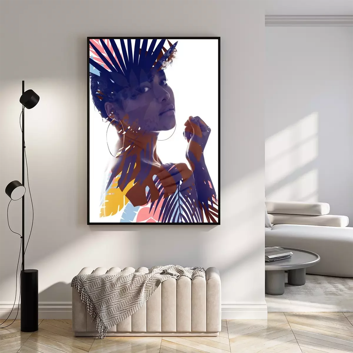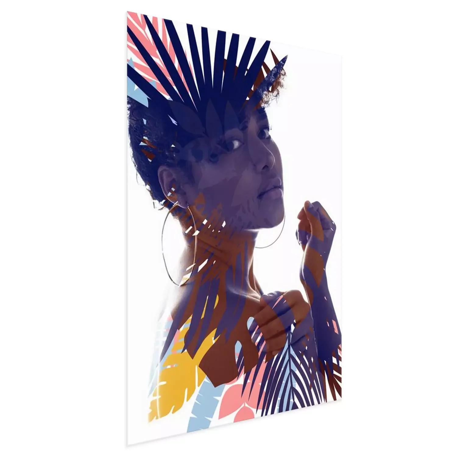 Poster Een vrouw met een lichaam bedekt met kleurrijke afbeeldingen