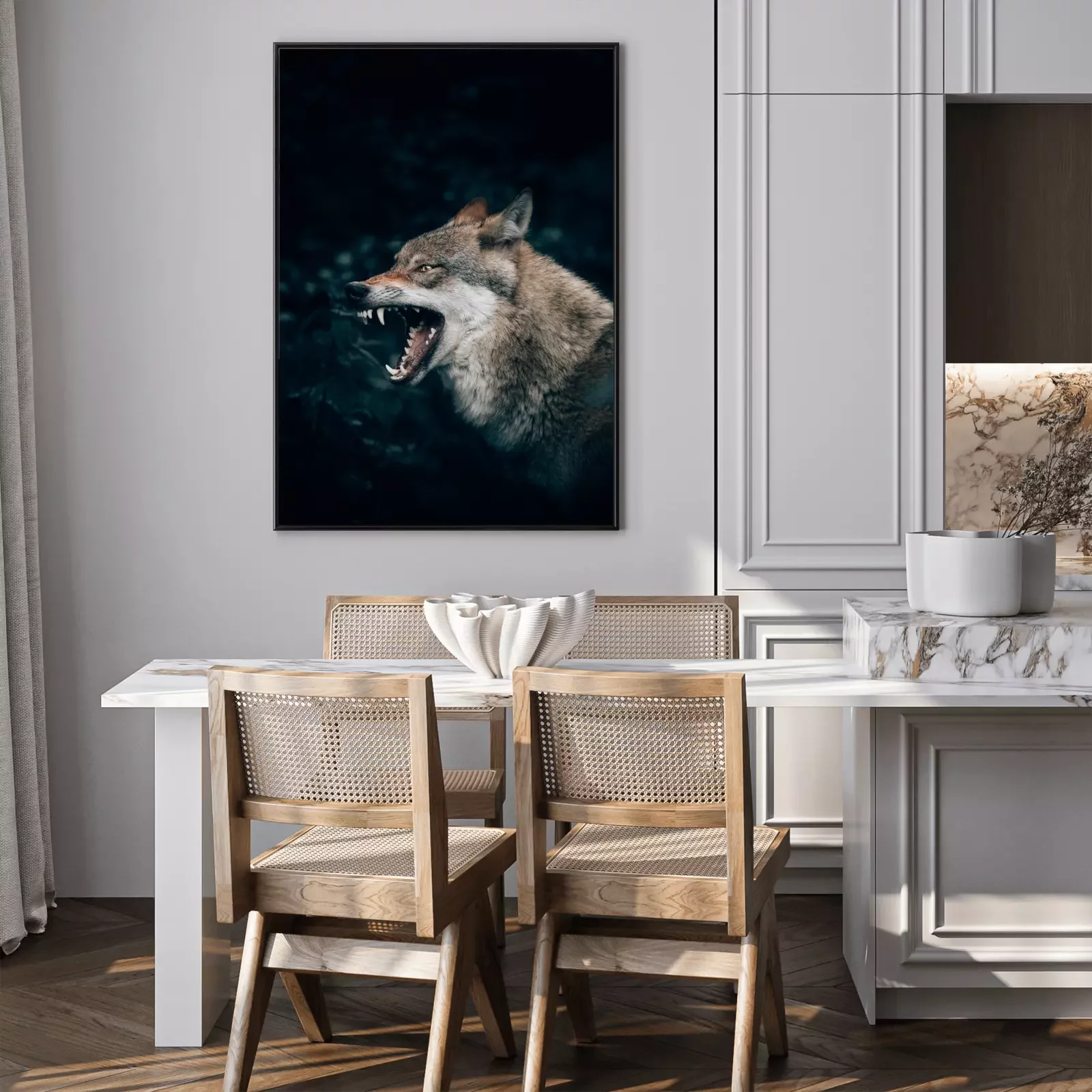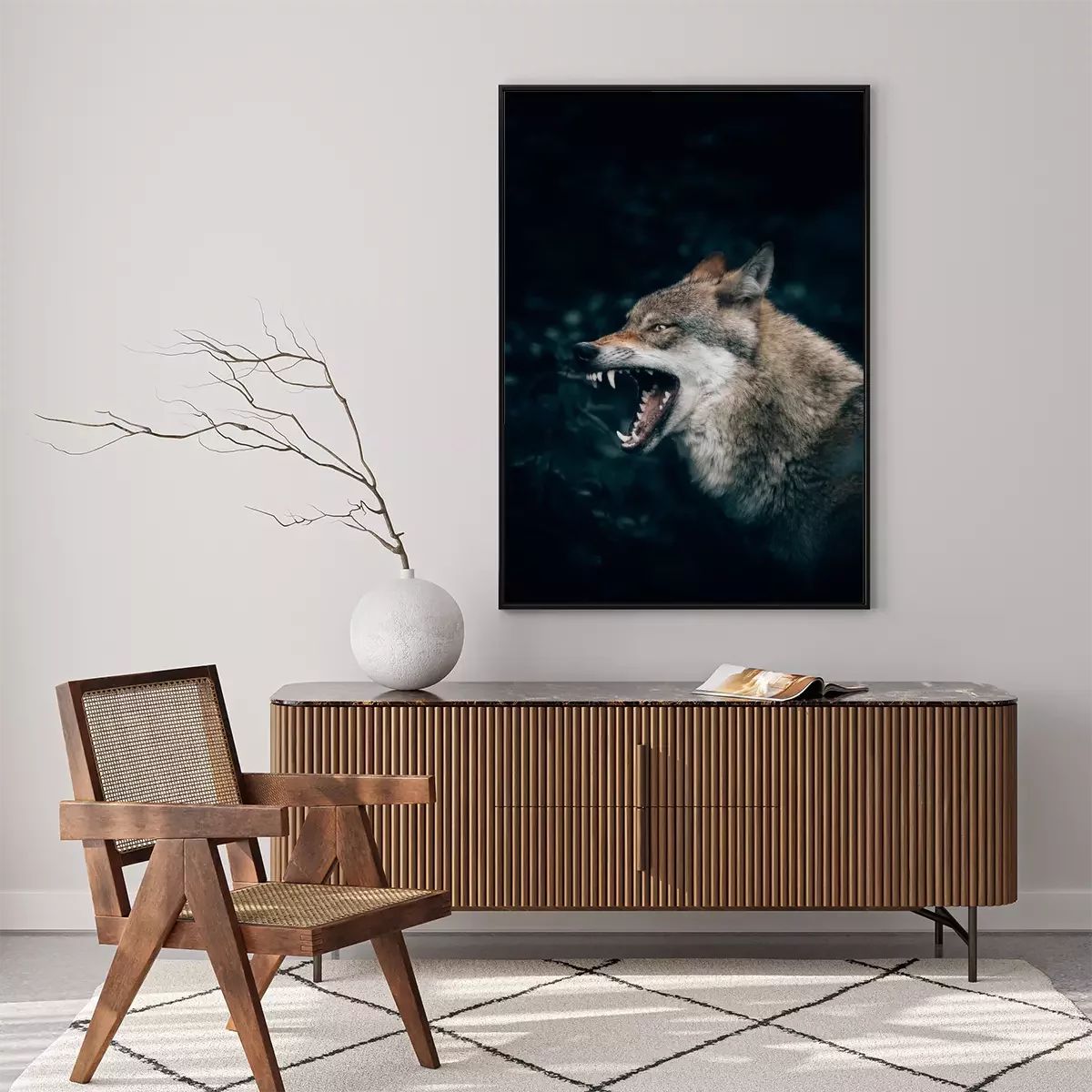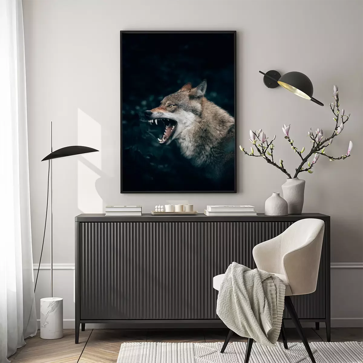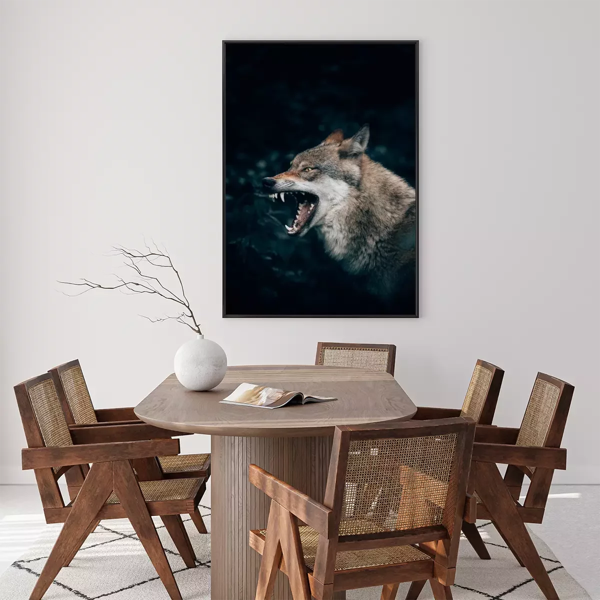 Poster: Een wolf die zijn tanden ontbloot
