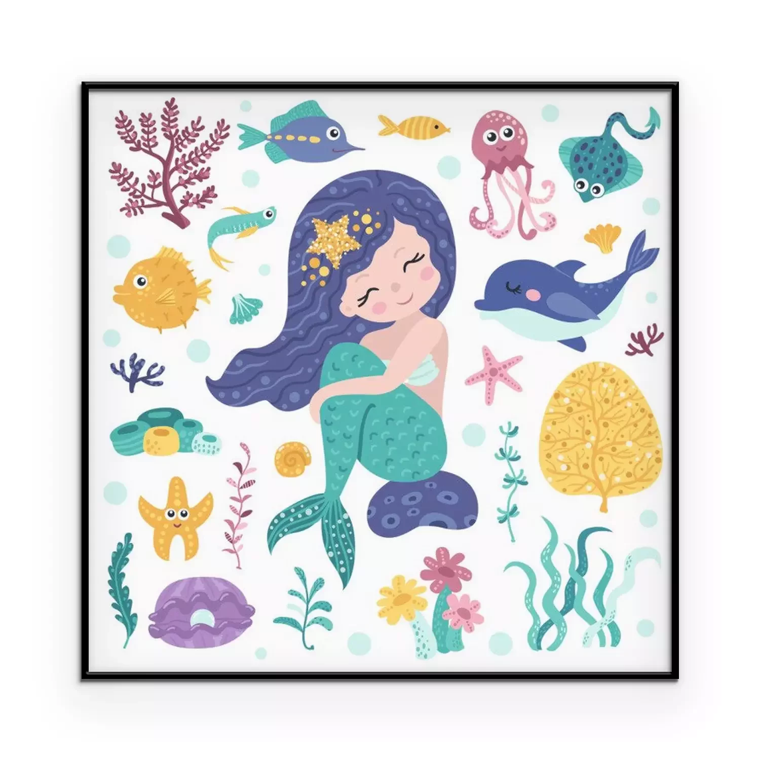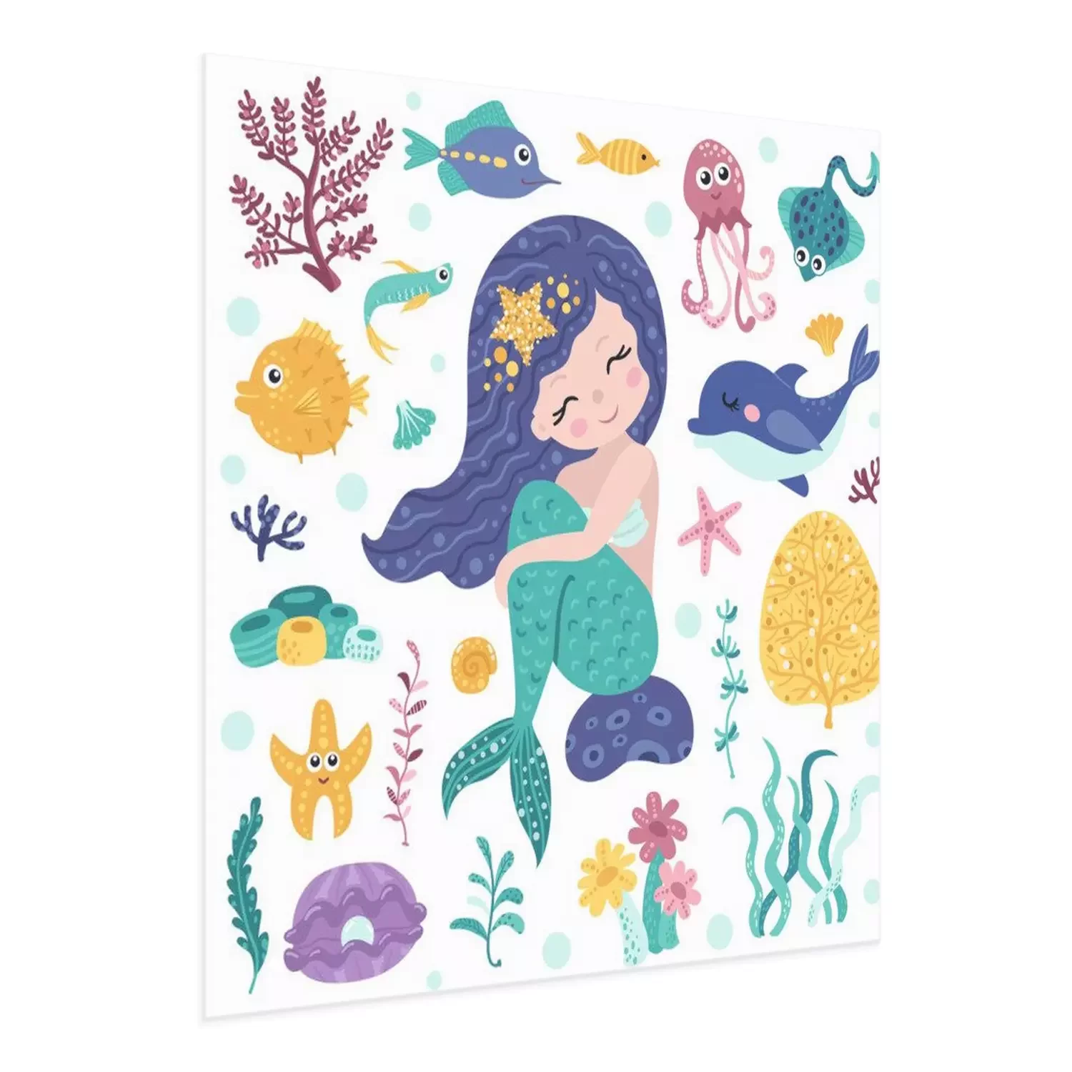 Poster: Een zeemeermin op een steen en kleurrijke vissen