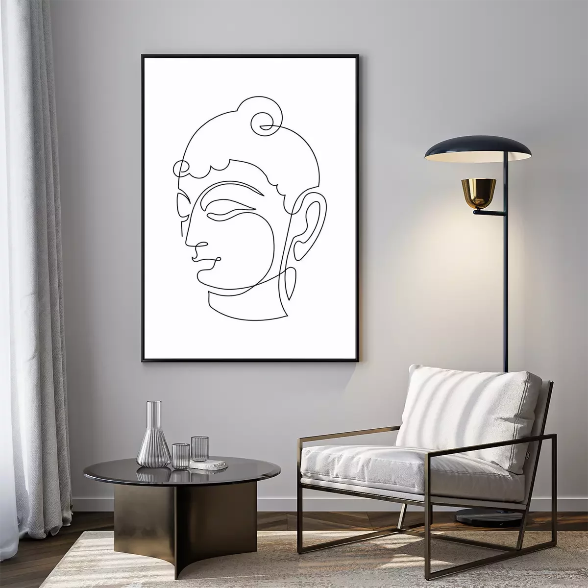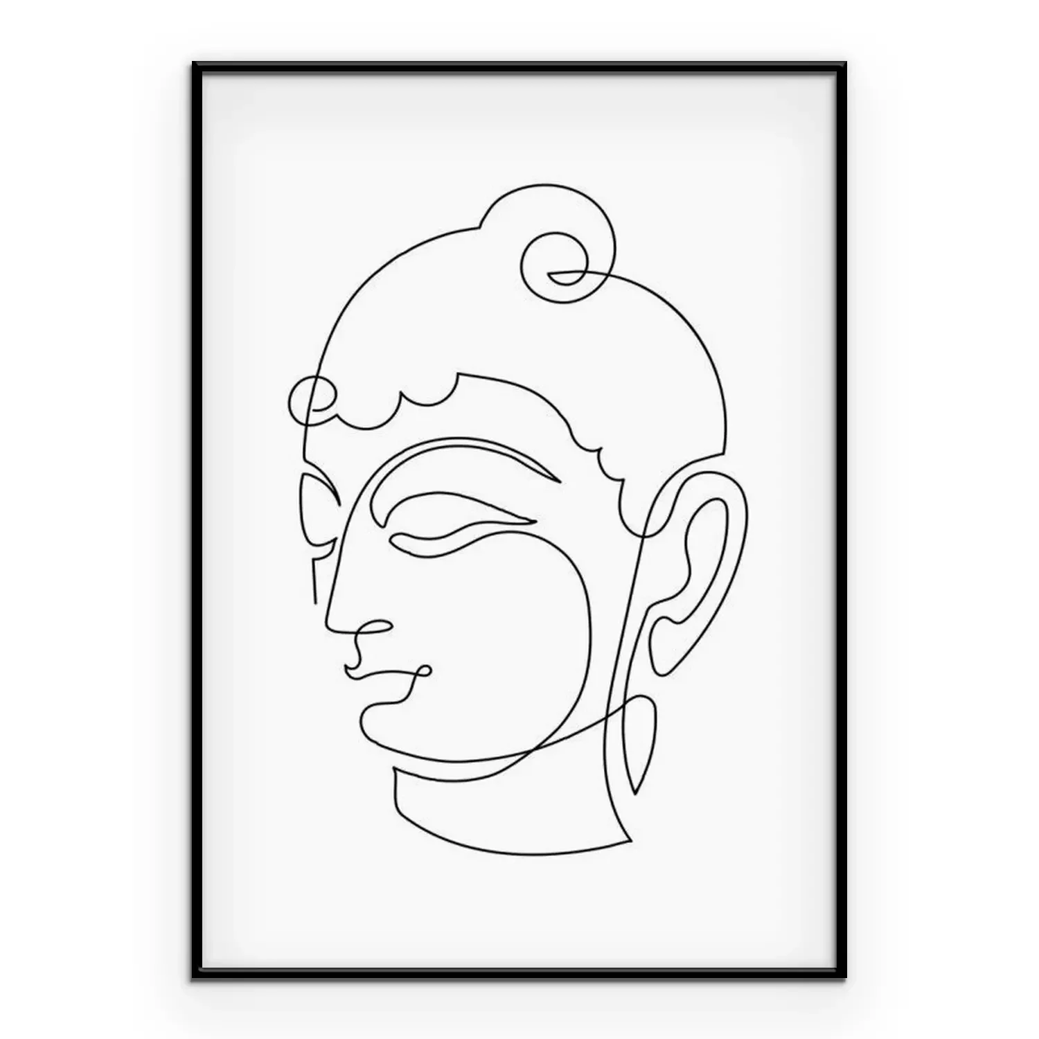 Poster: Een zwarte lijn die het gezicht van een boeddha vormt