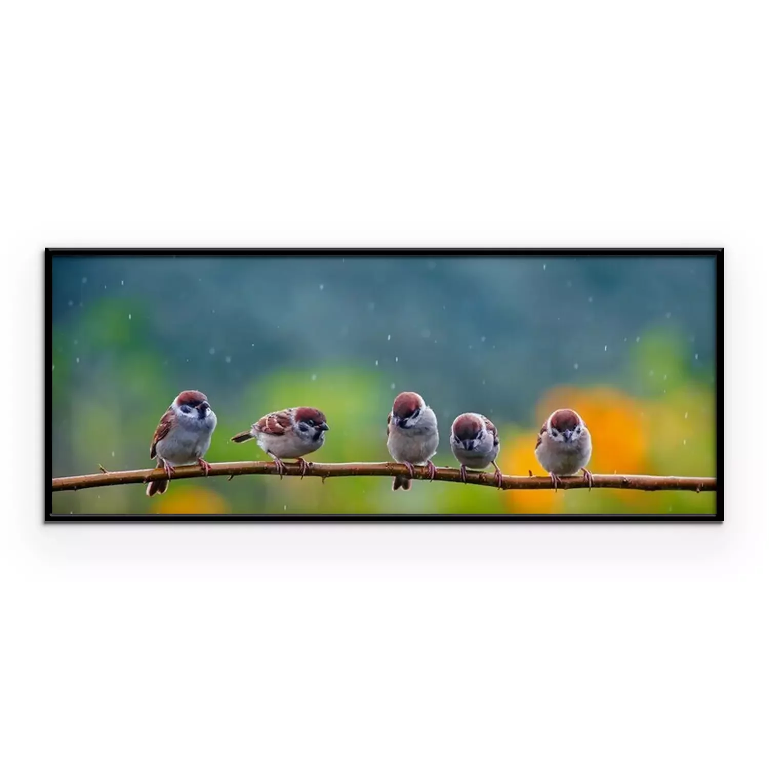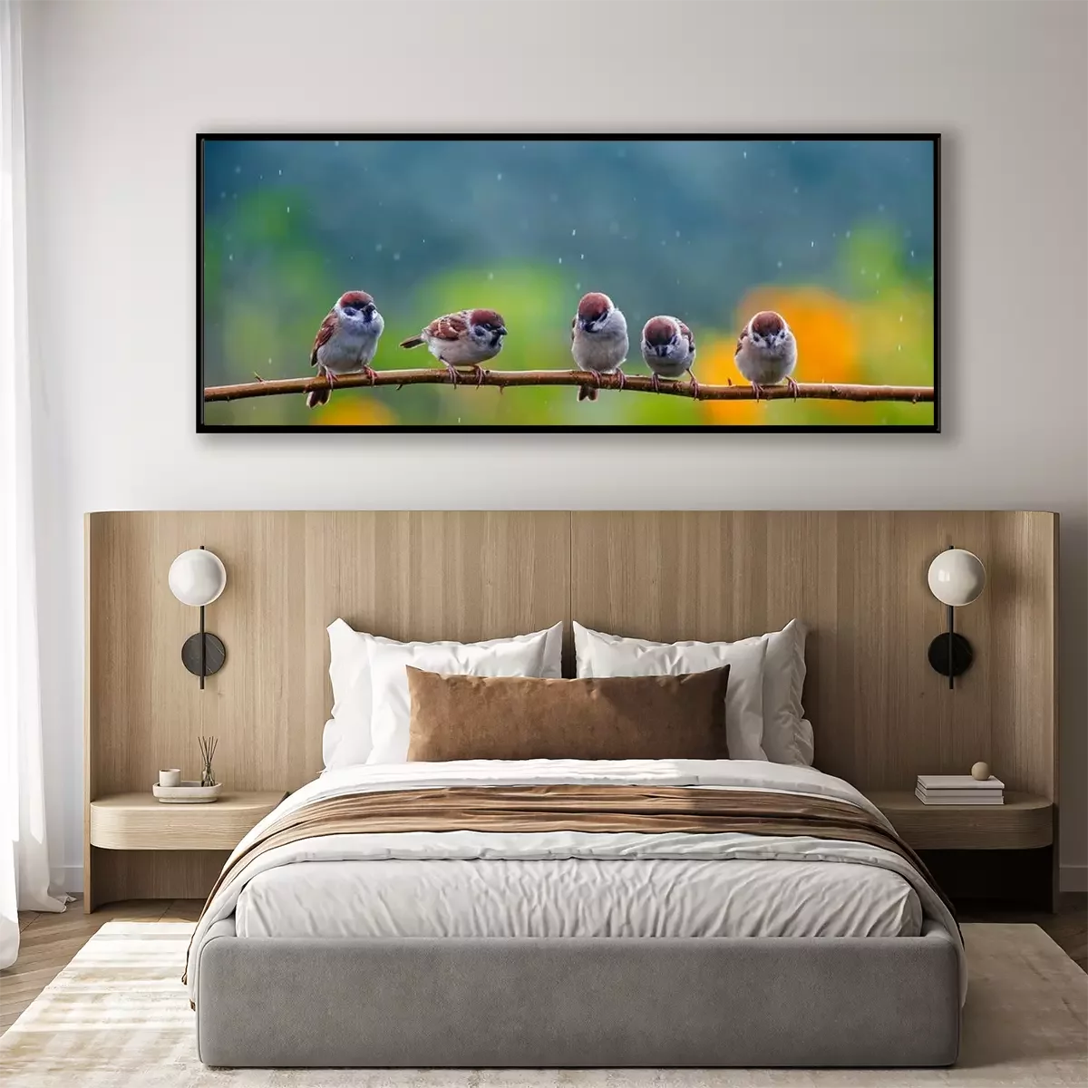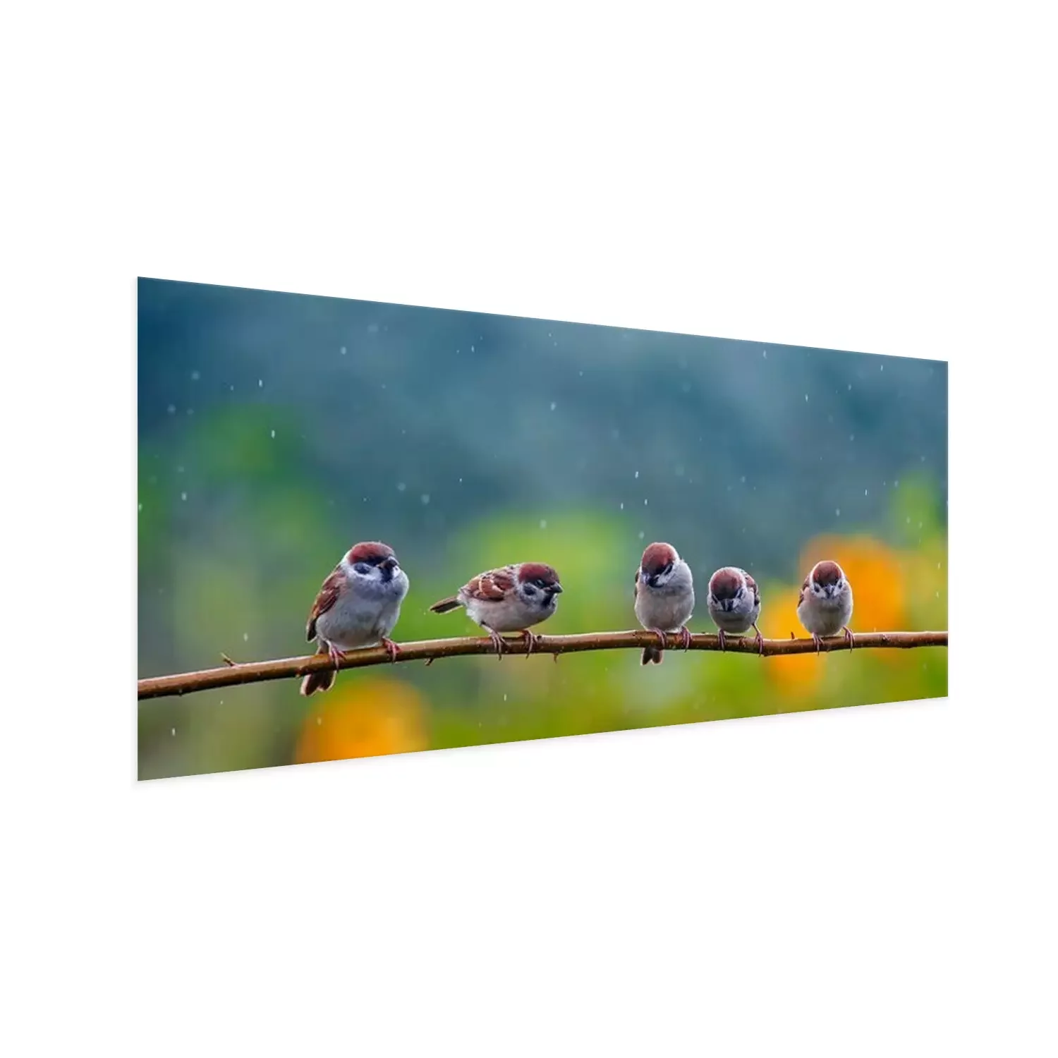 Poster: Een zwerm vogels op een onscherpe achtergrond