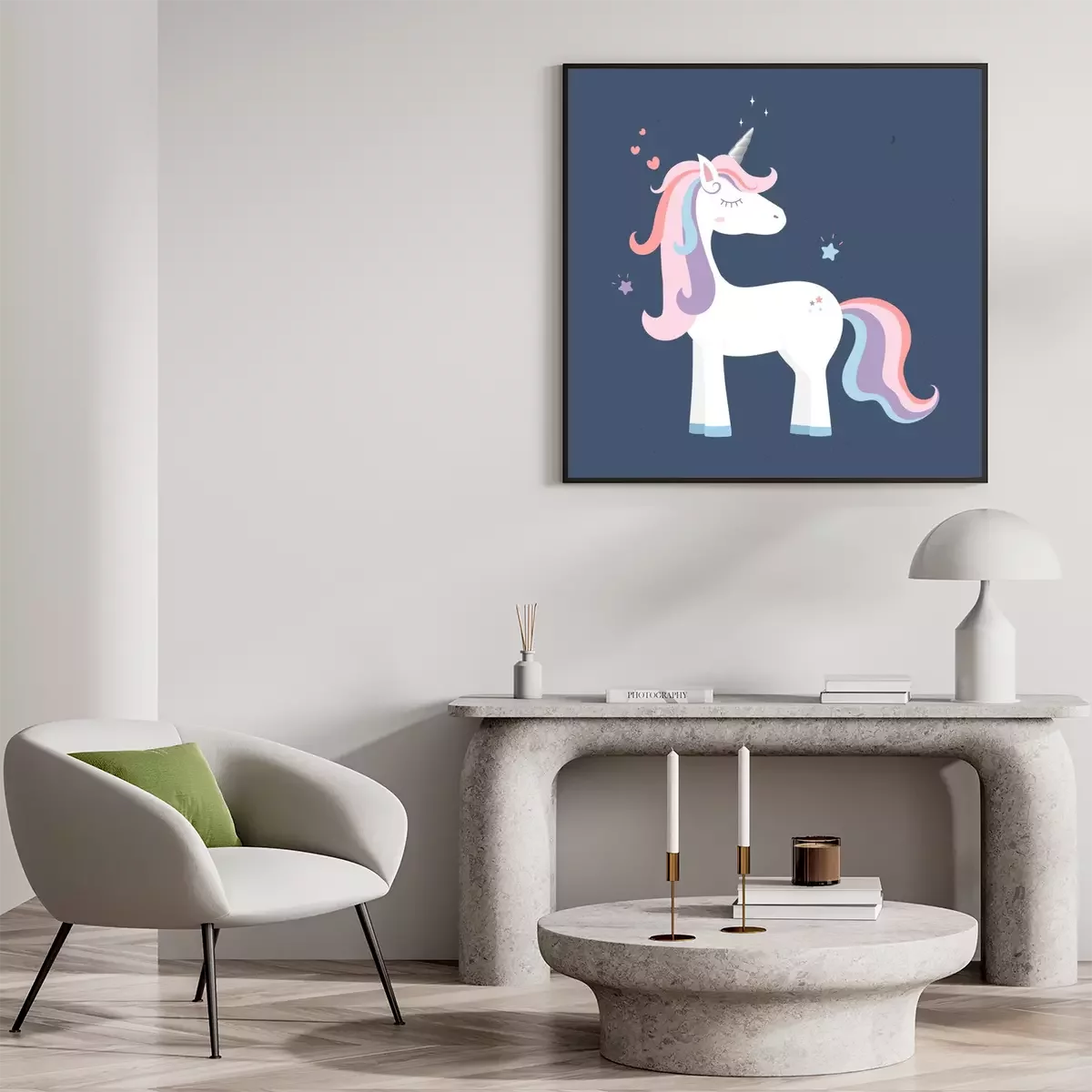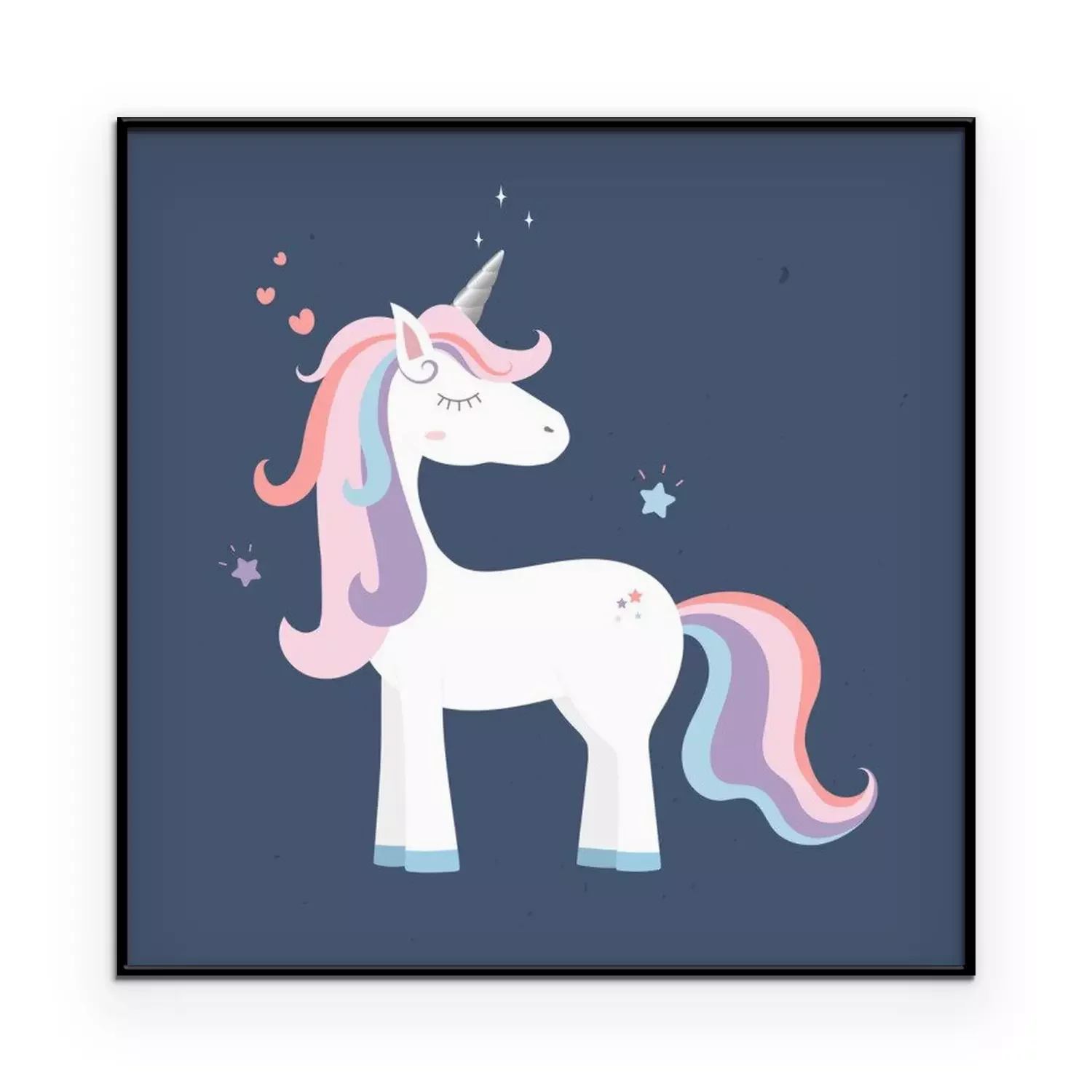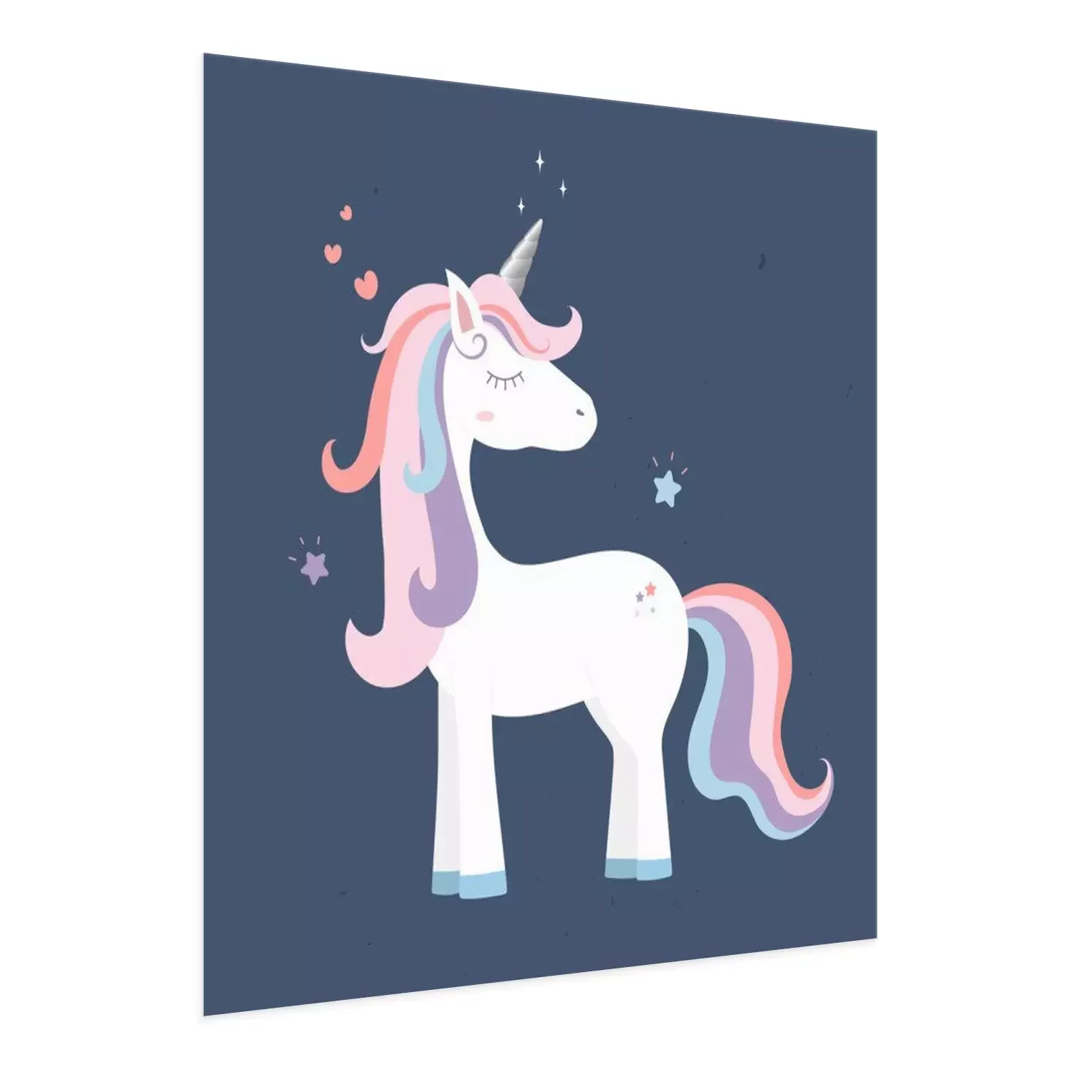 Poster: Eenhoorn in profiel op een marineblauwe achtergrond