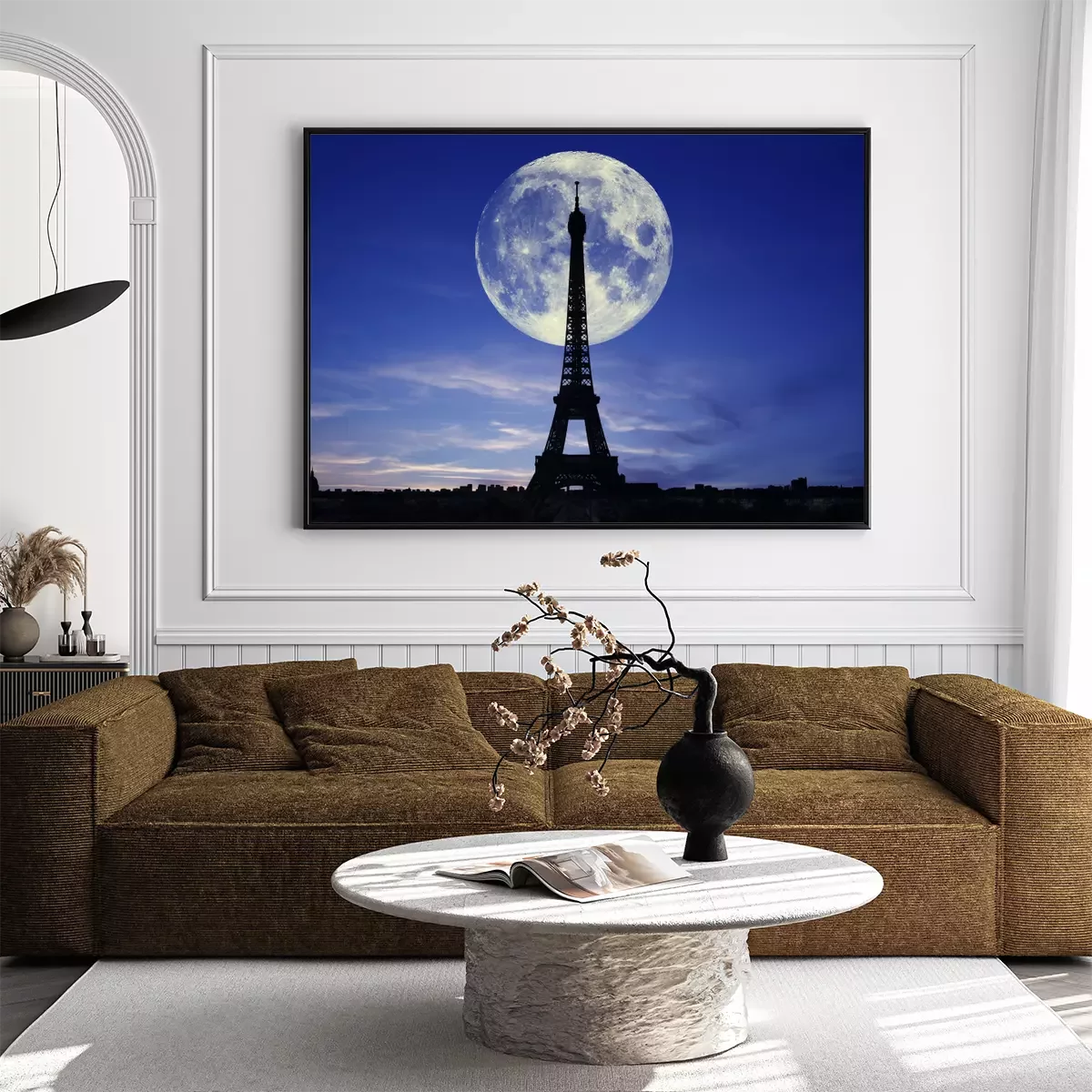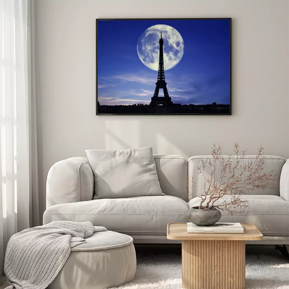 Poster: Eiffeltoren en de maan 's nachts