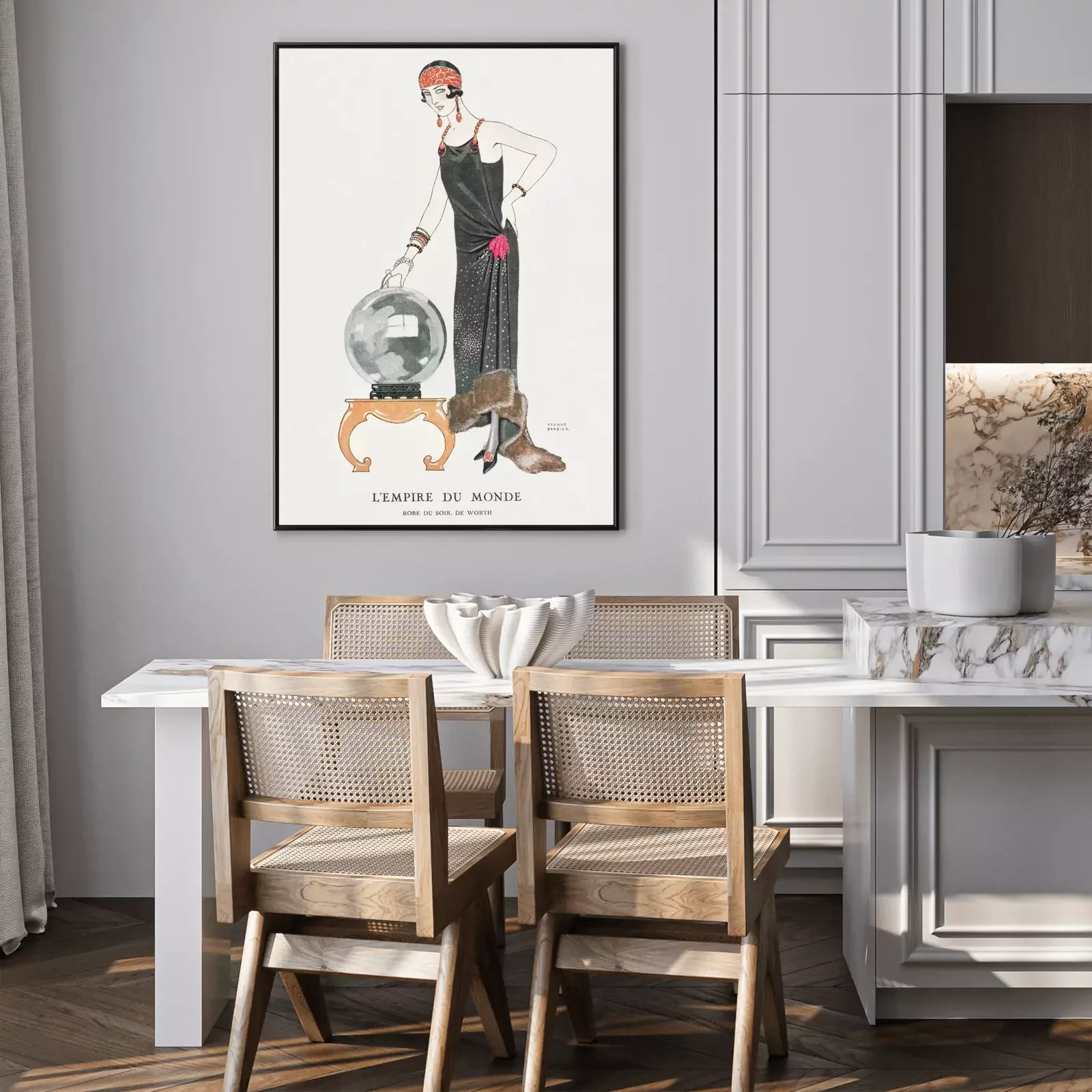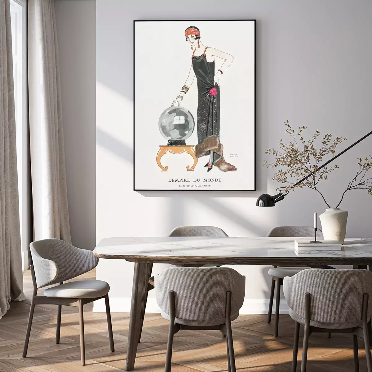 Poster: Elegante dame in lange jurk