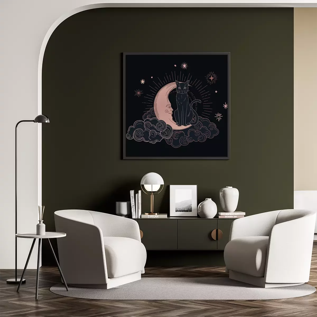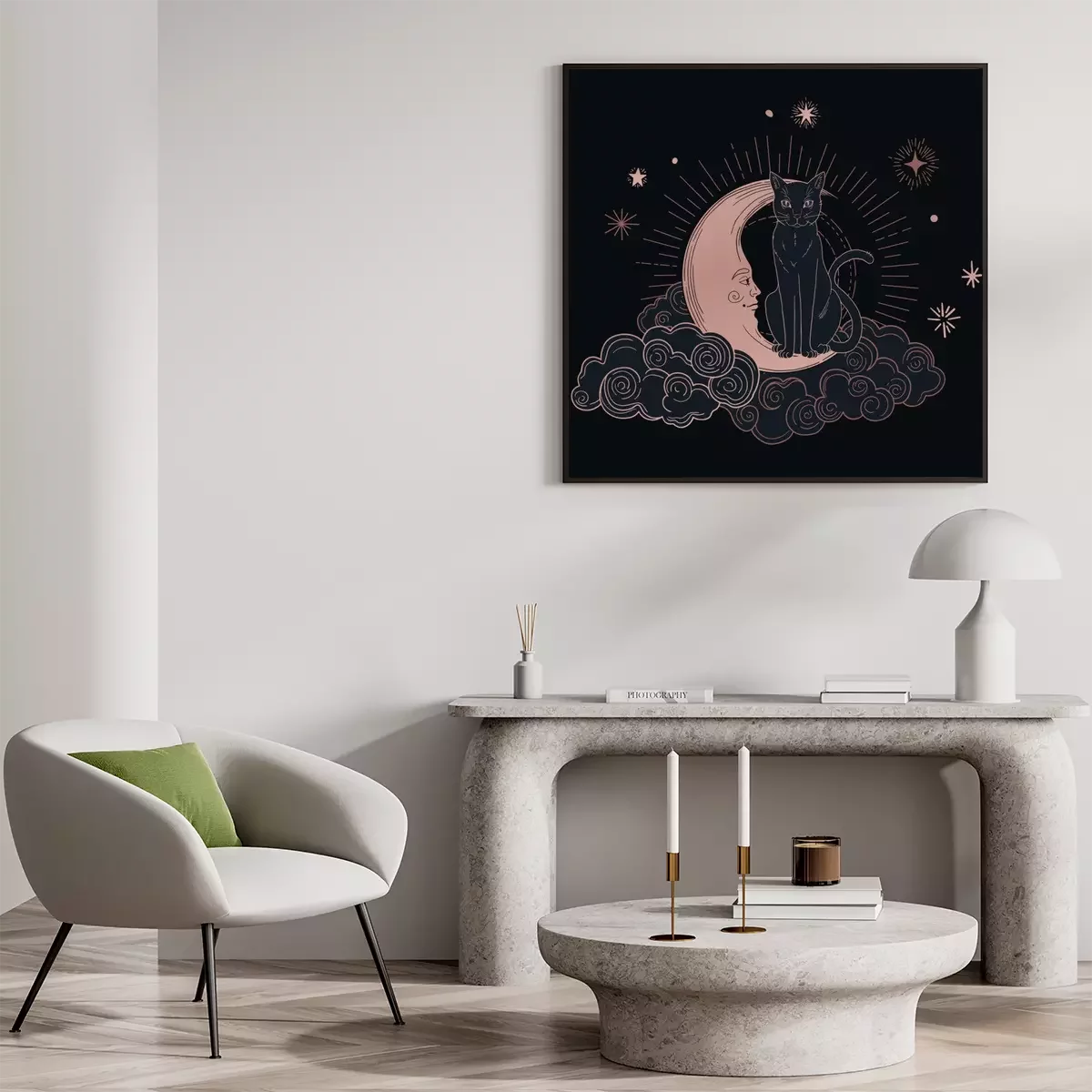 Poster: Esoterische kat op de maan