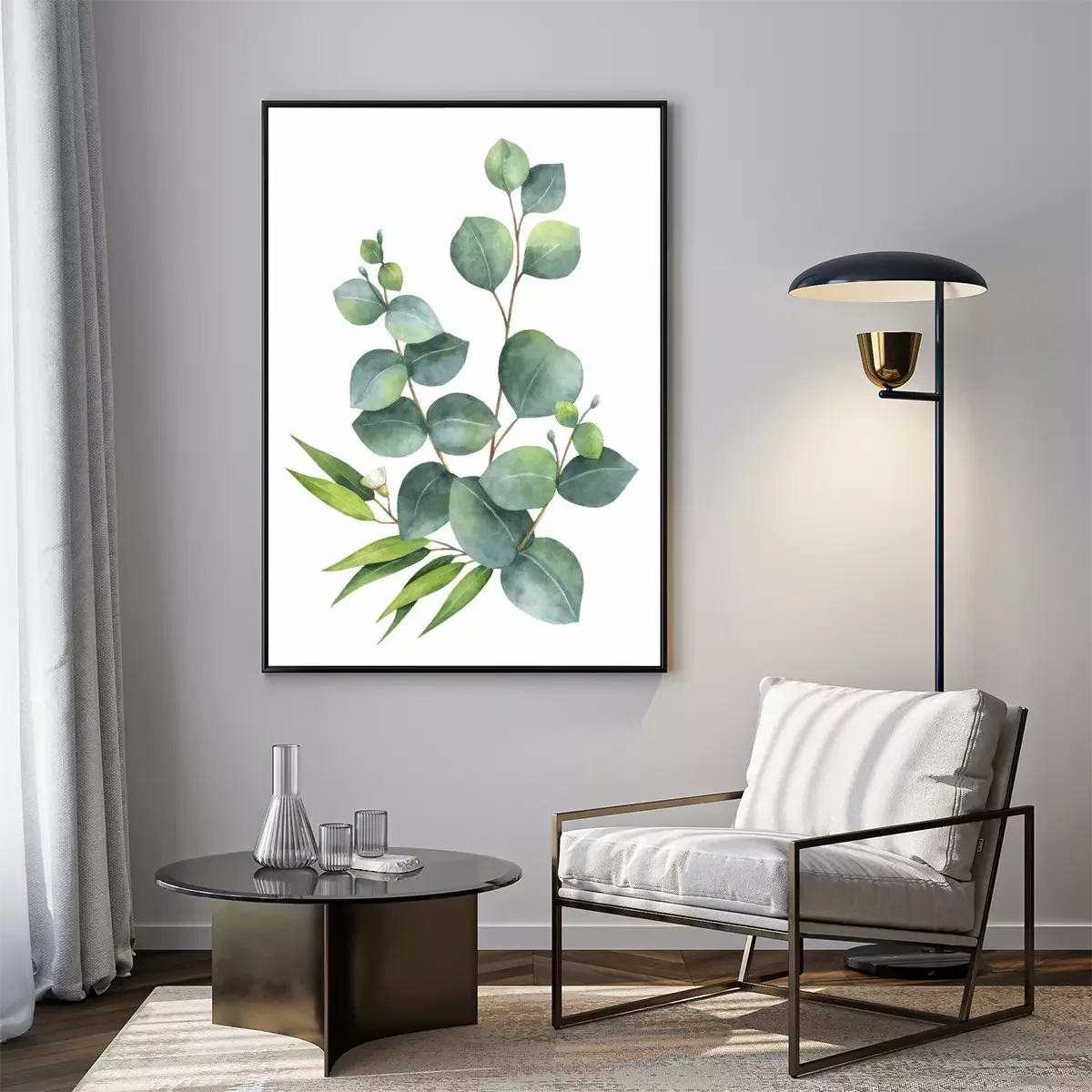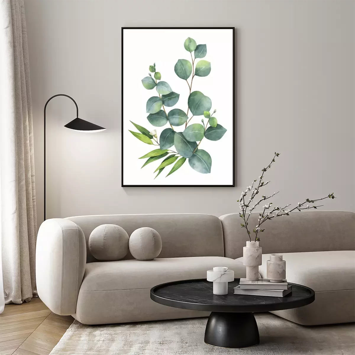 Poster: Eucalyptusbladeren aan bruine twijgen