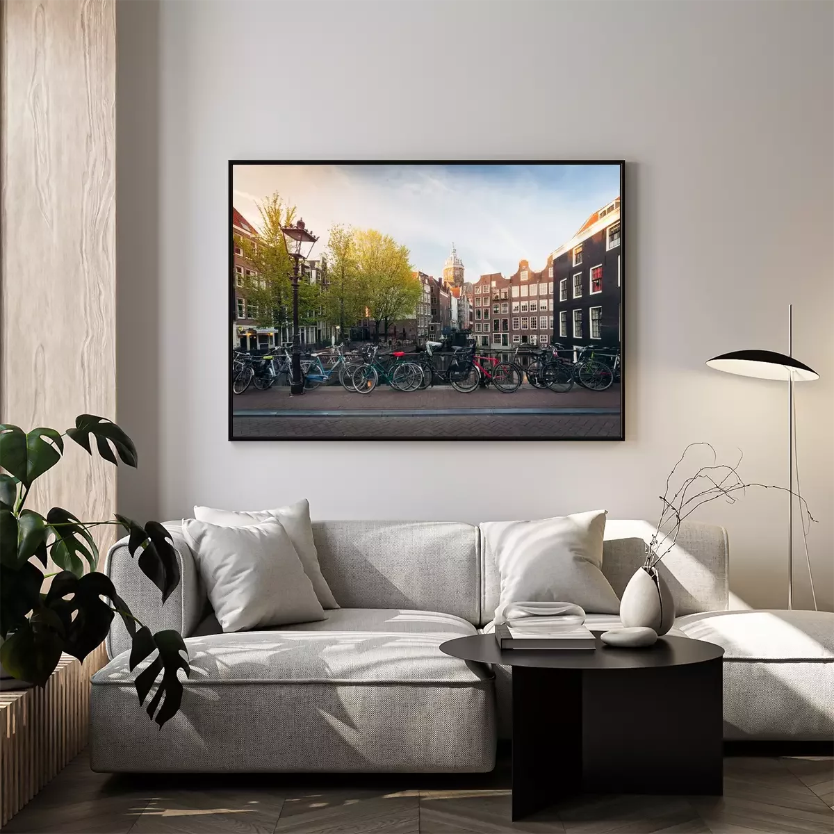 Poster Fahrräder auf dem Amsterdamer Parkplatz