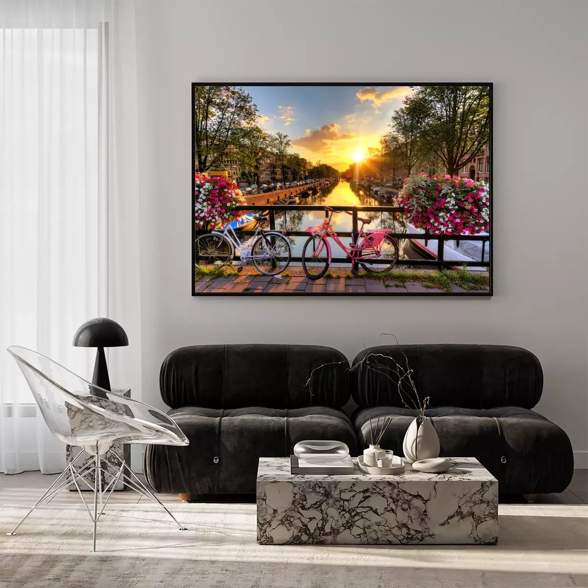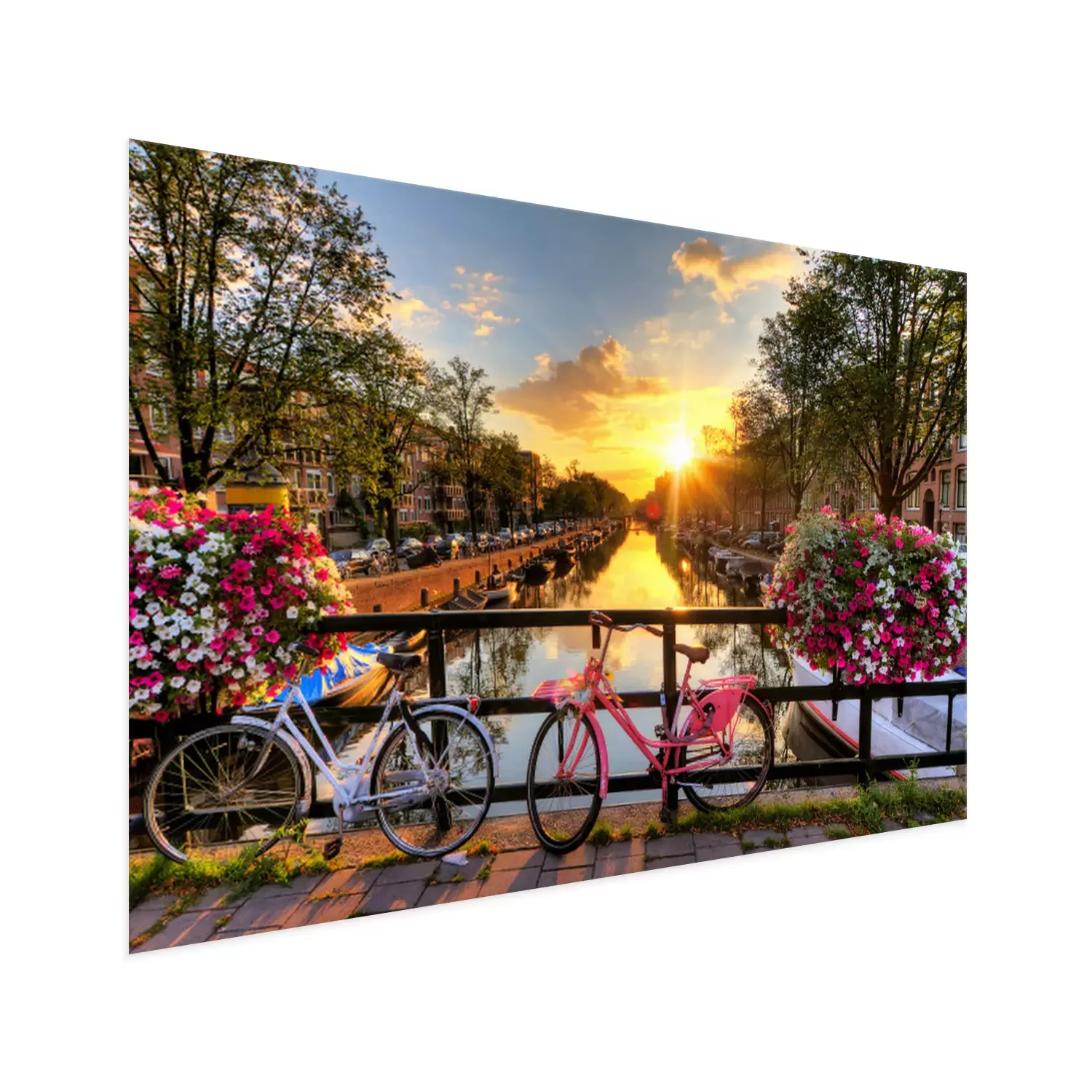 Poster: Fahrräder in Amsterdam bei Sonnenuntergang