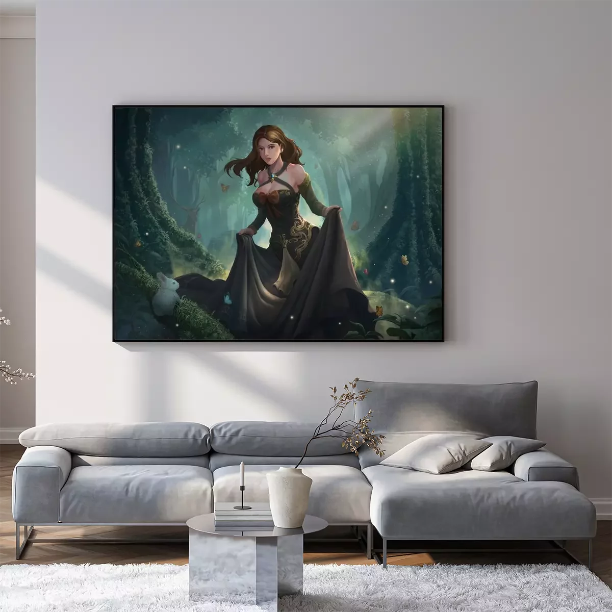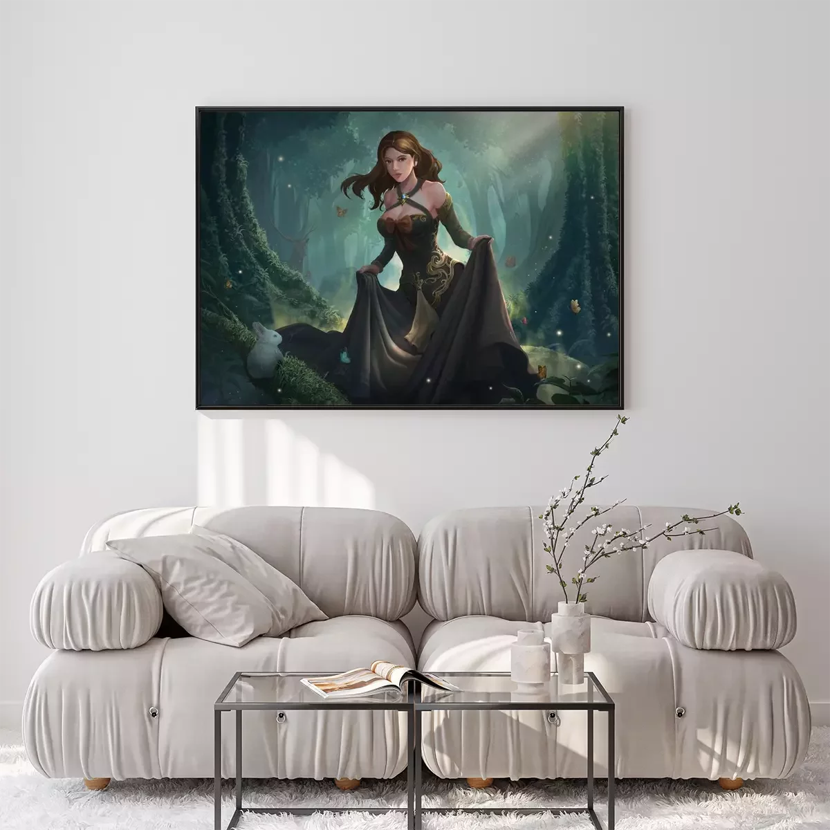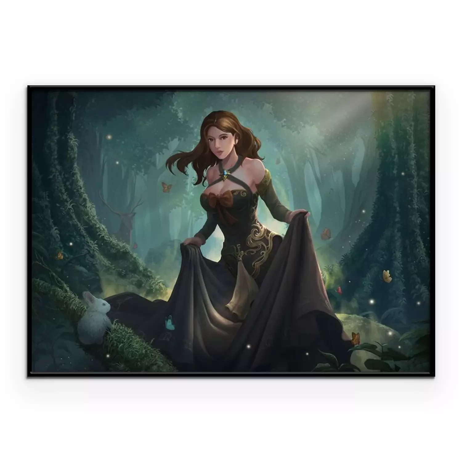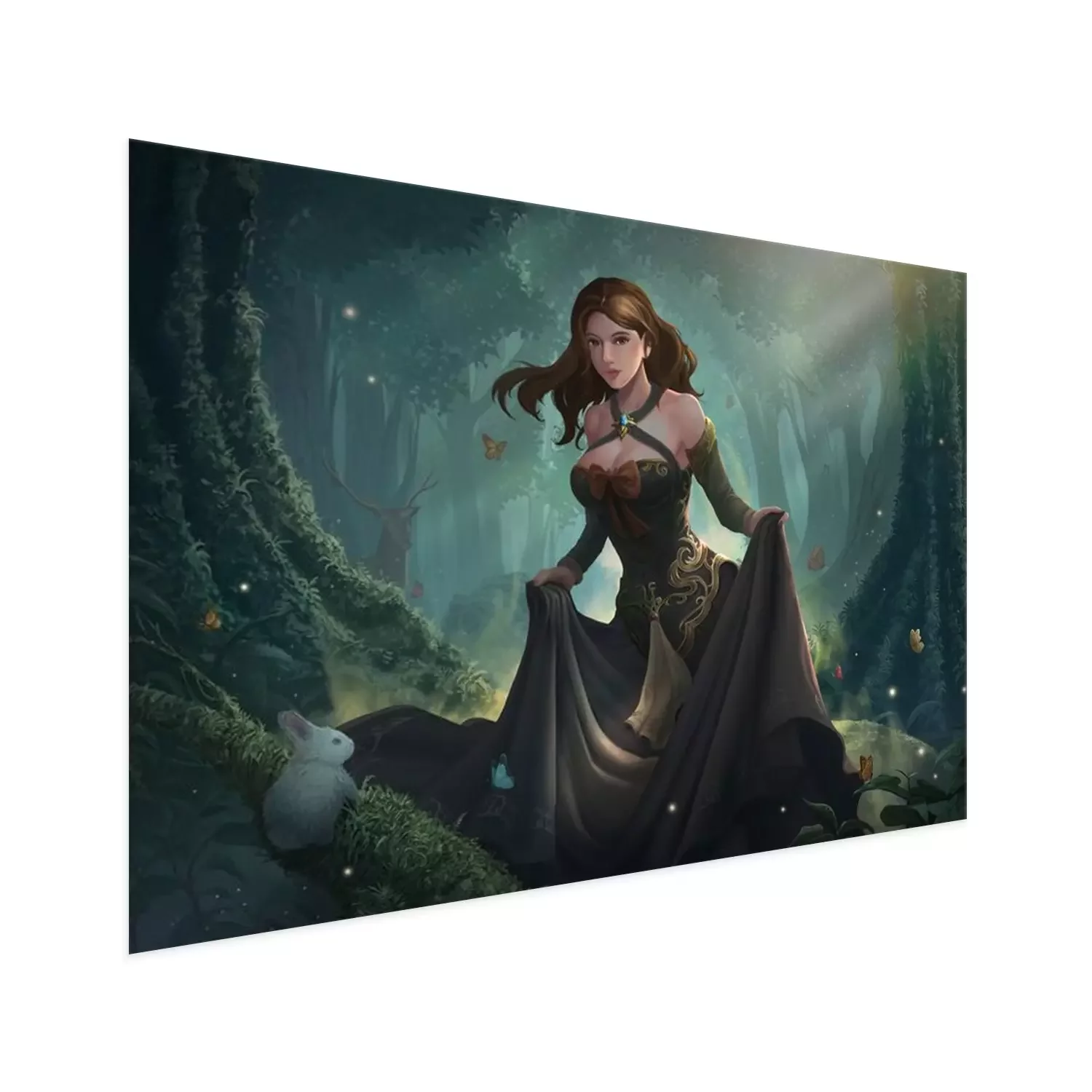 Poster: Fantasiebos met een meisje