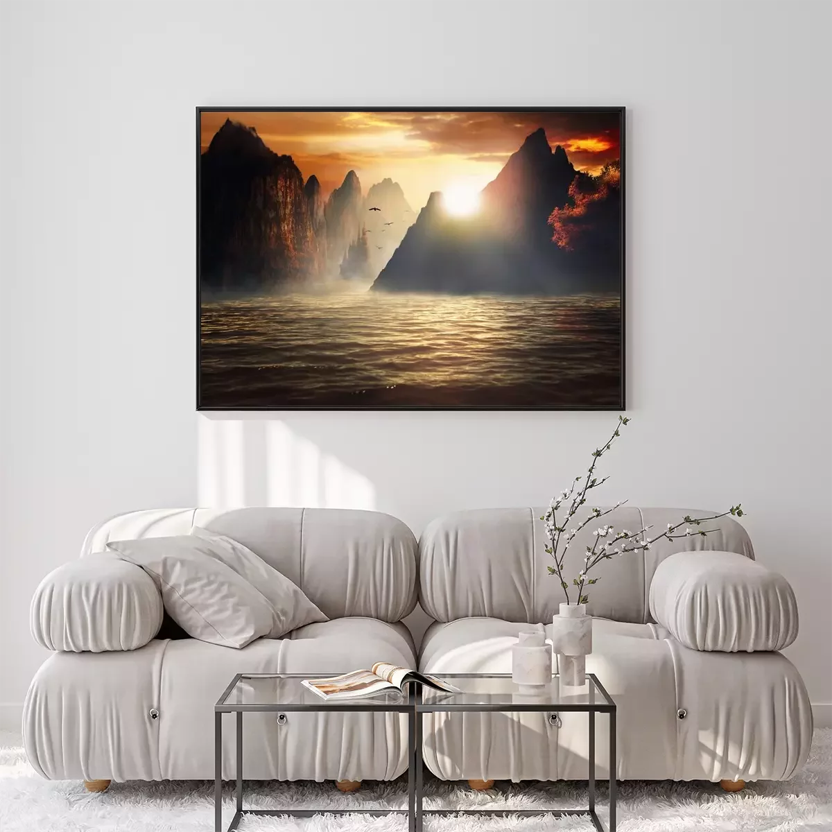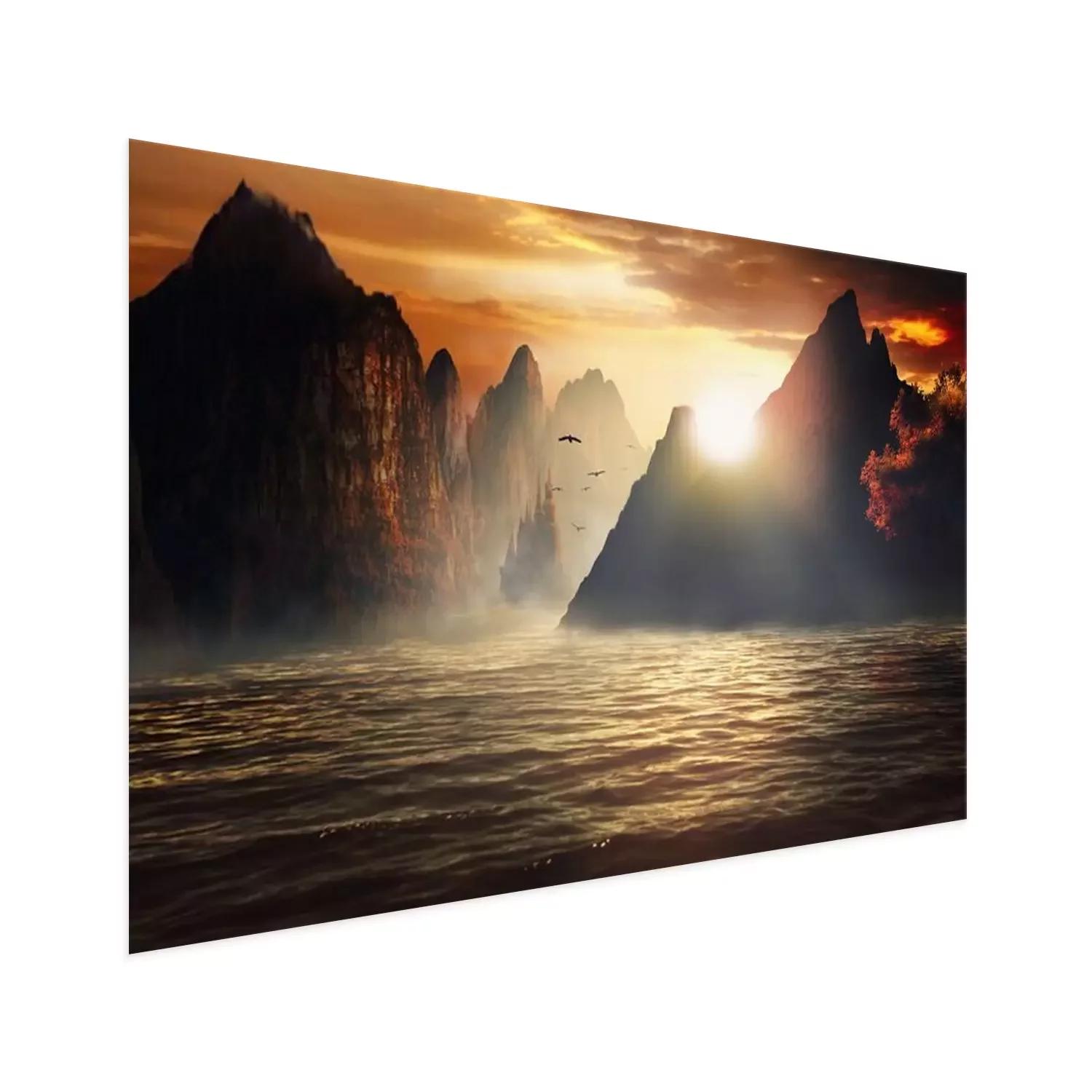Poster: Fantasielandschap over het water