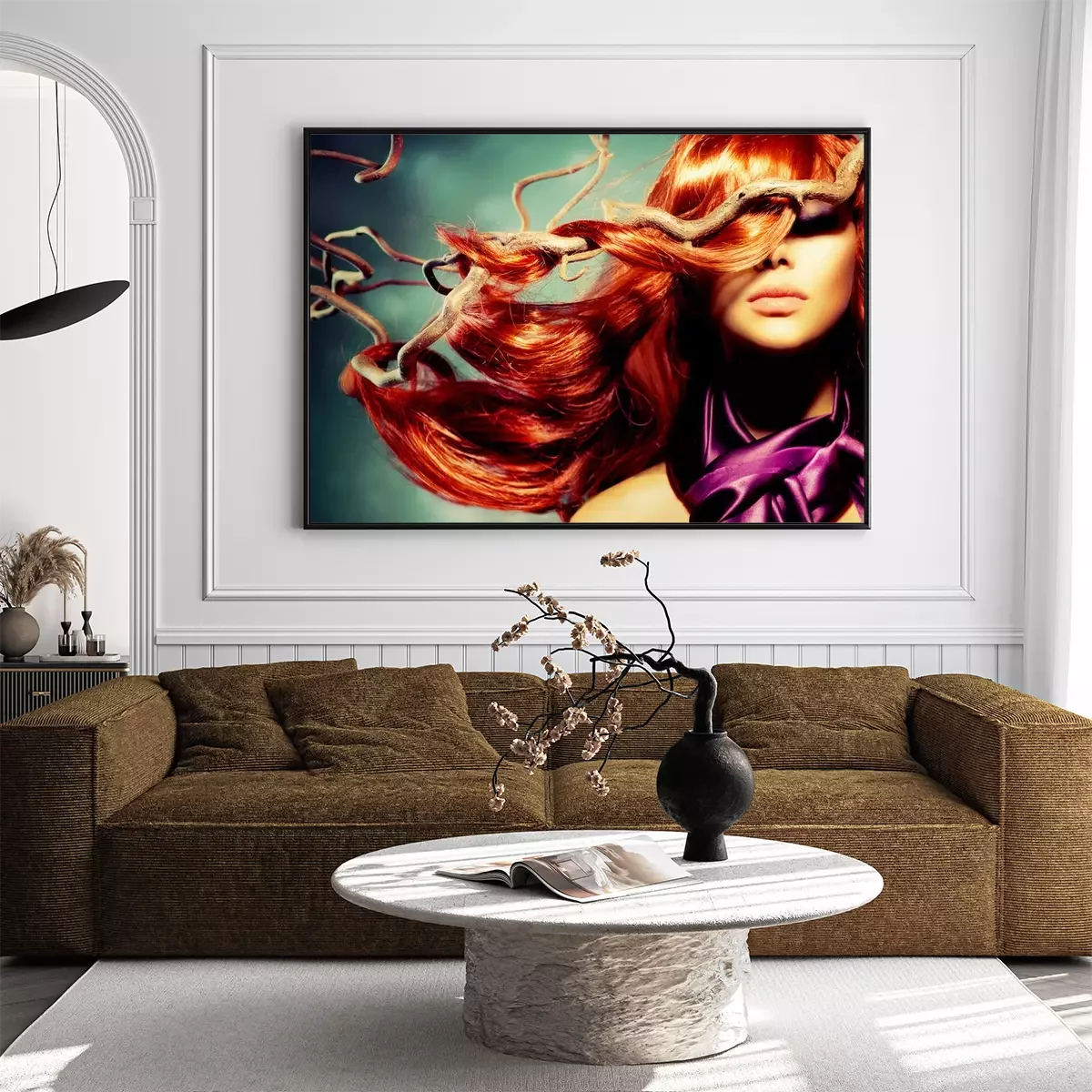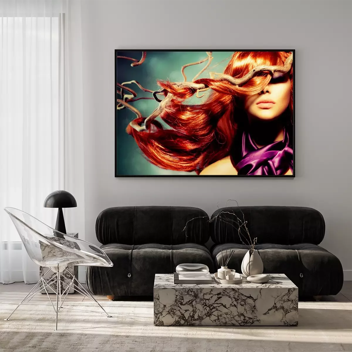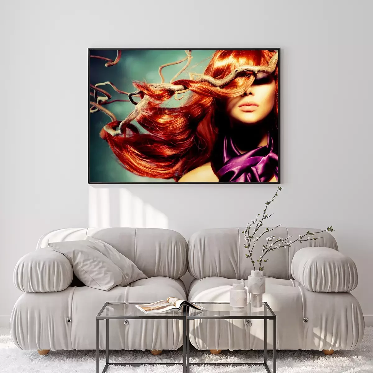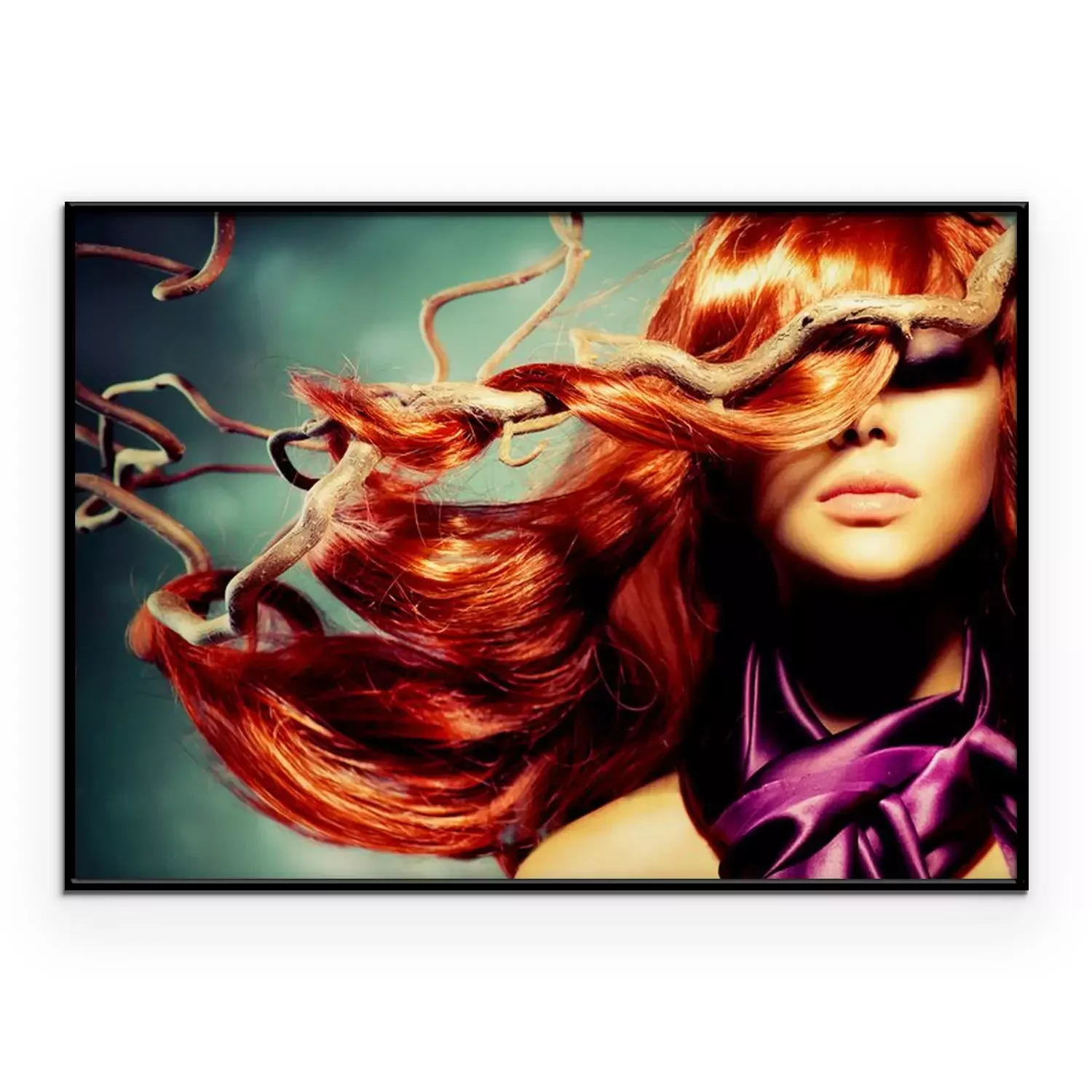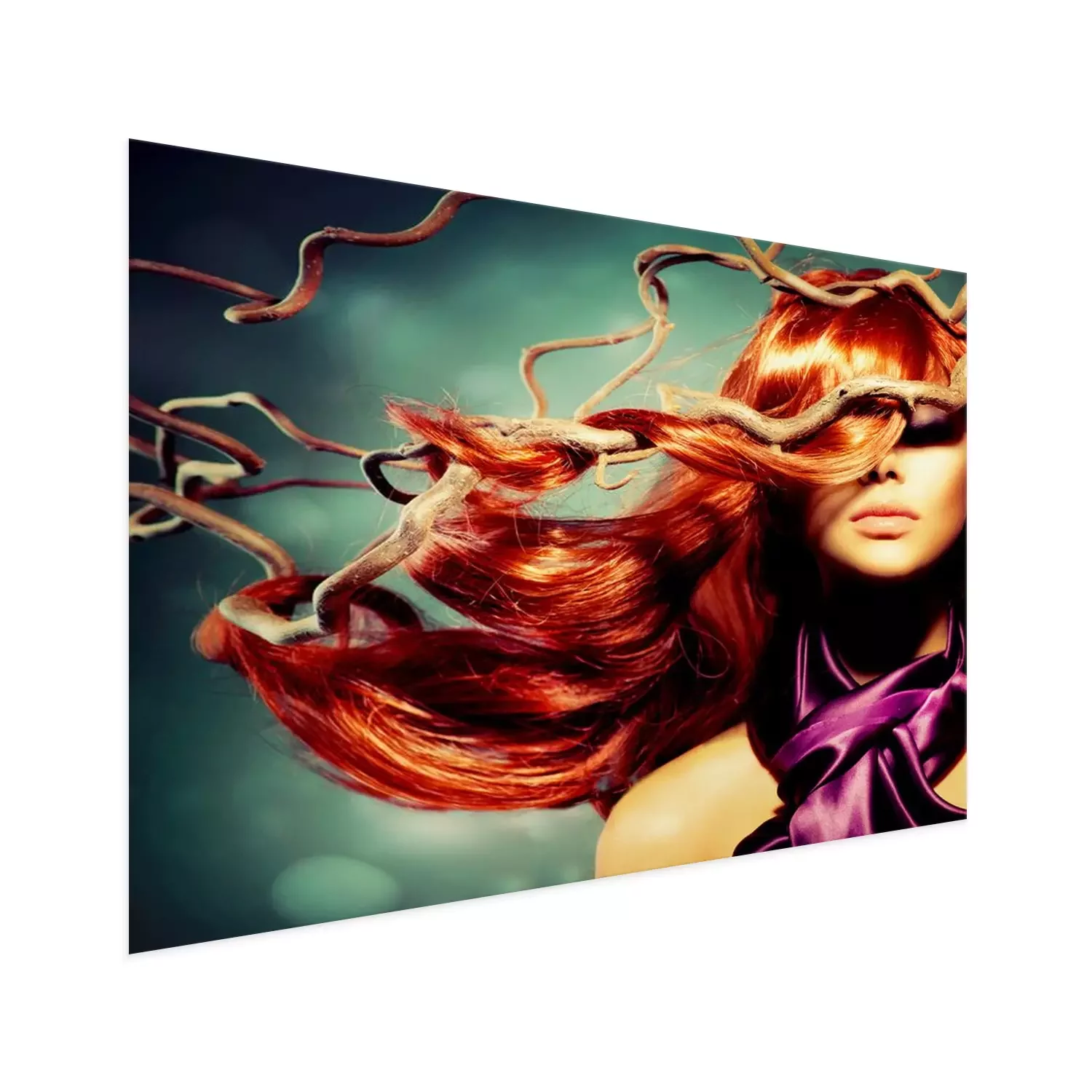 Poster Fashion Model Portret van de Vrouw met lang krullend rood haar