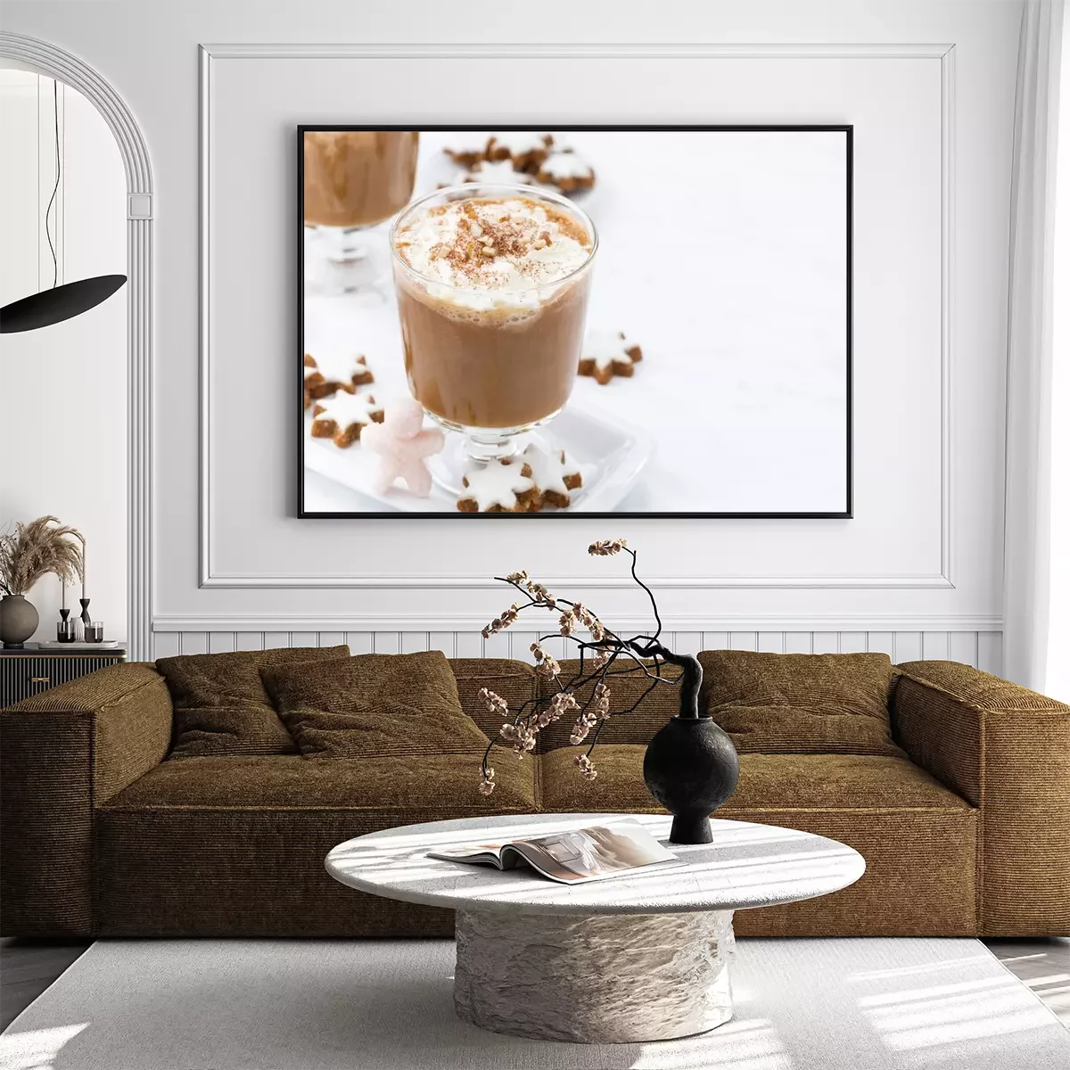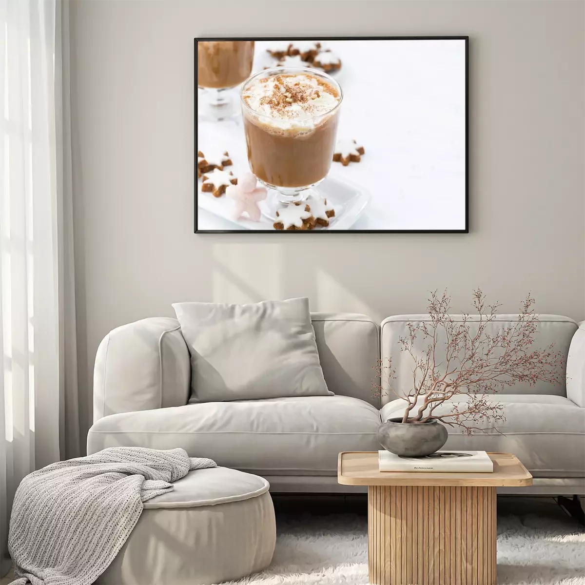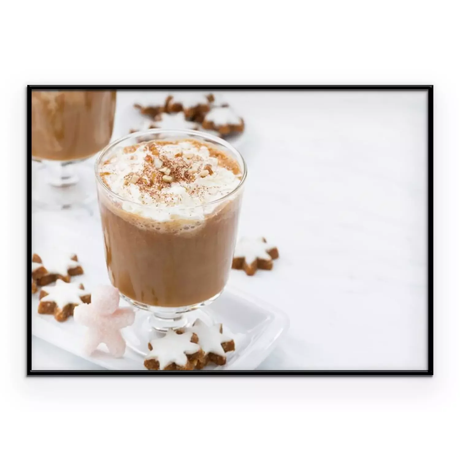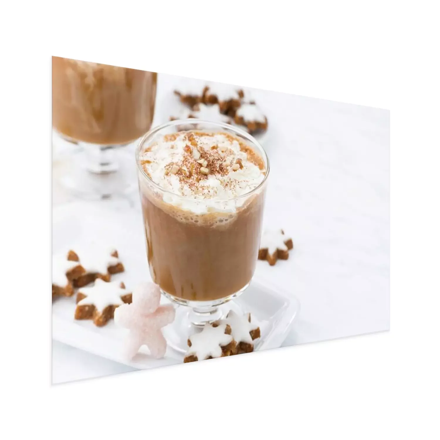 Poster: feestelijke pompoen latte en amandelkoekjes op een witte achtergrond
