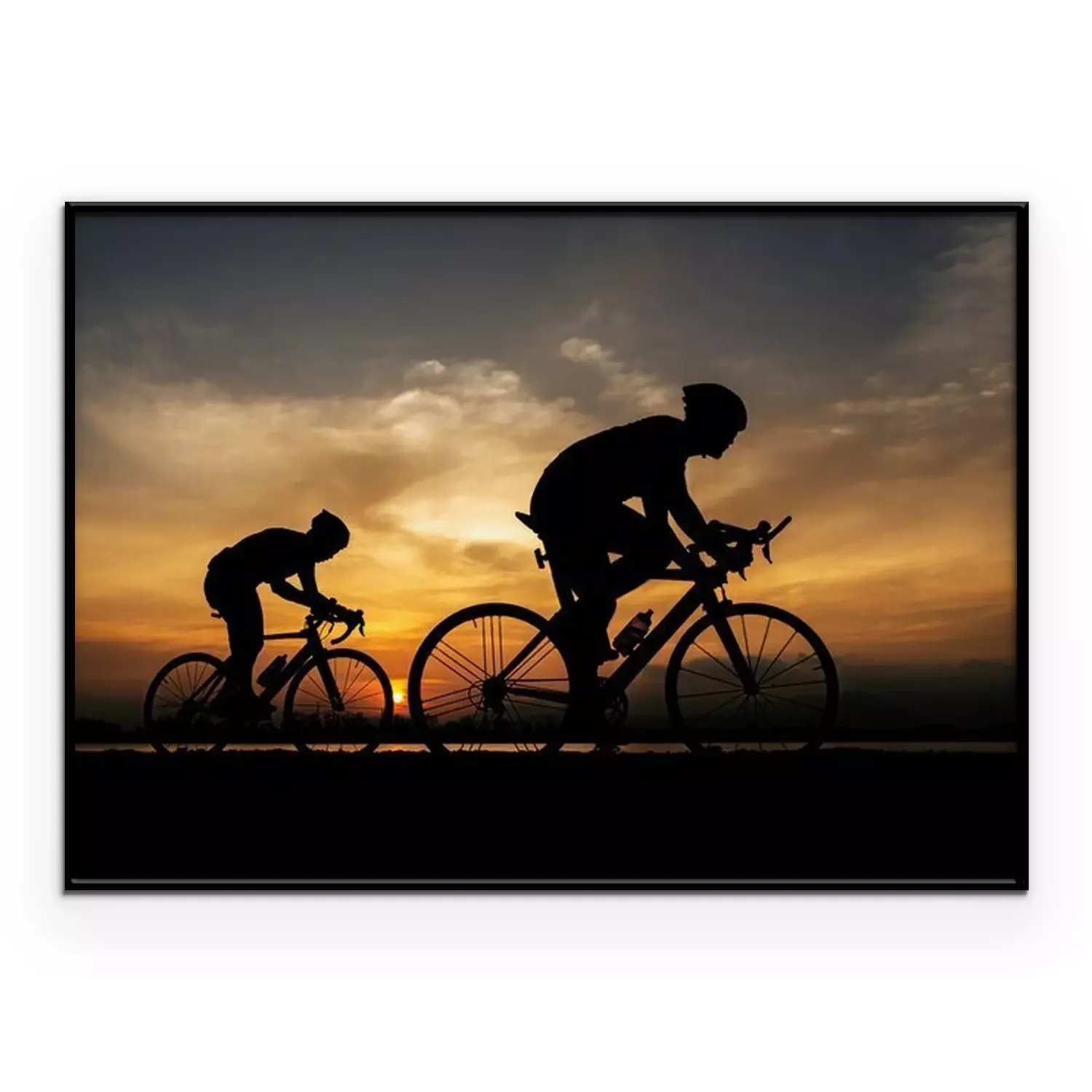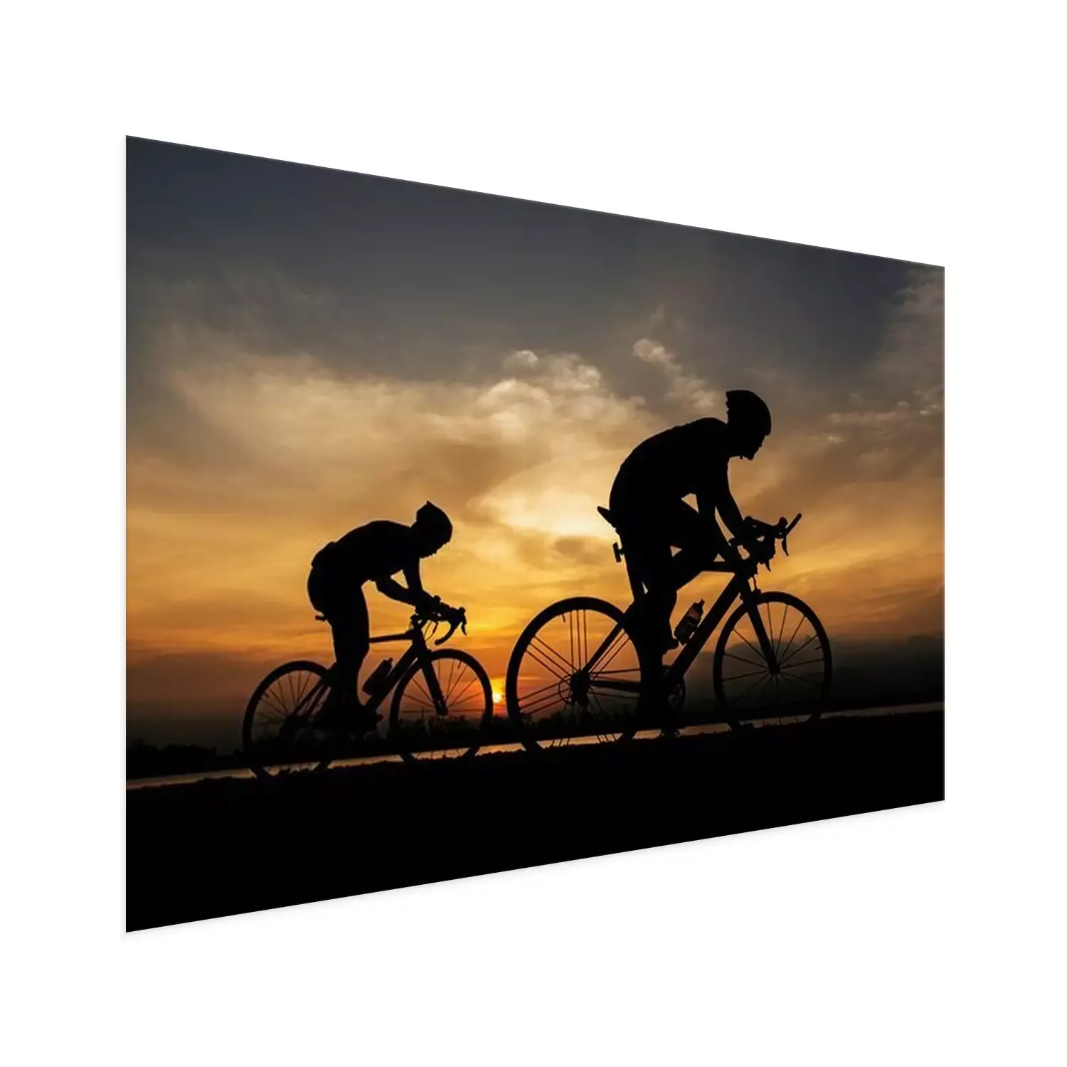 Poster: Fietsers tegen de achtergrond van de zonsondergang