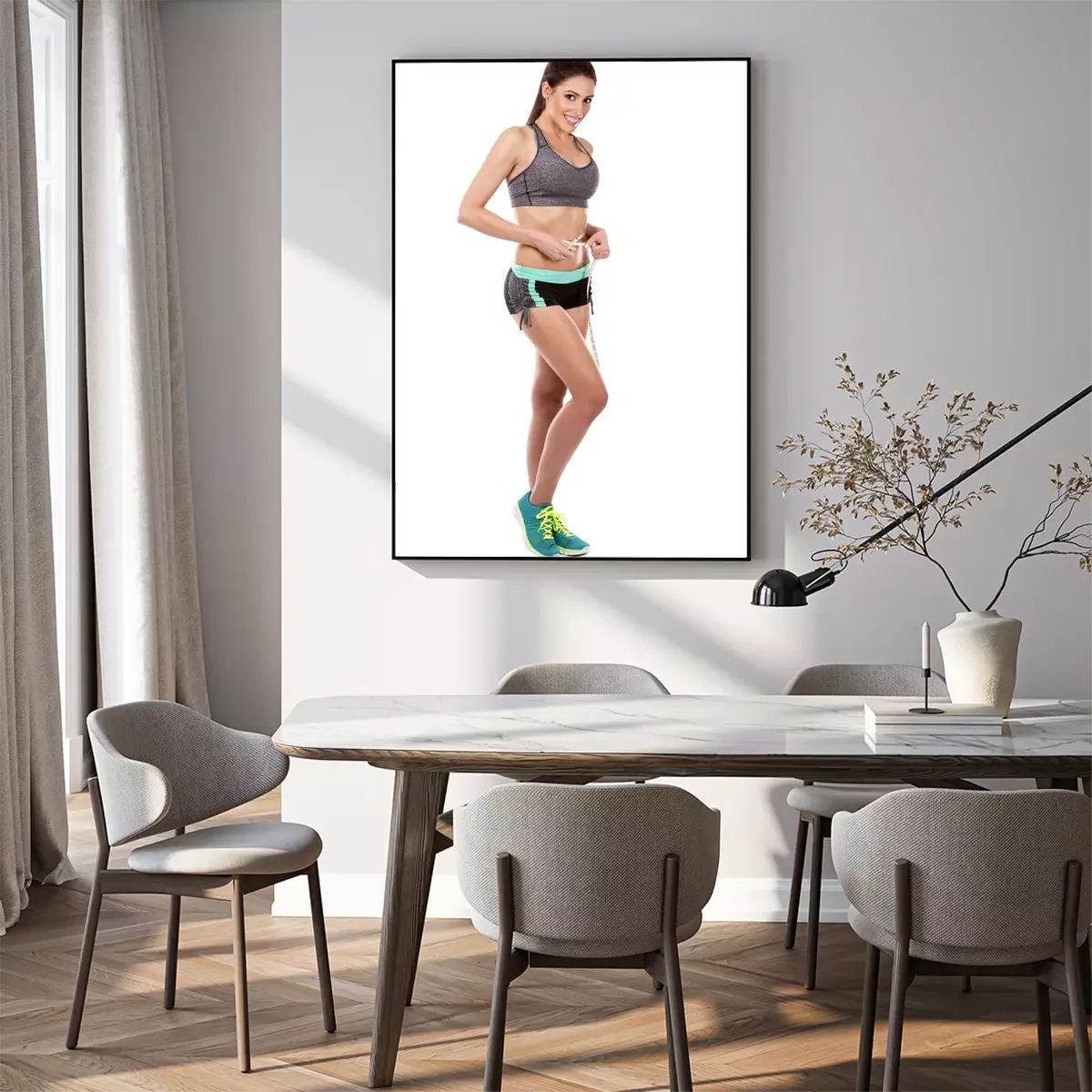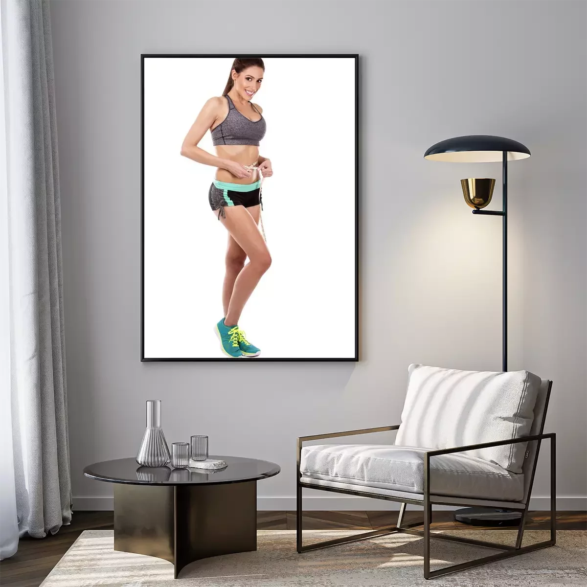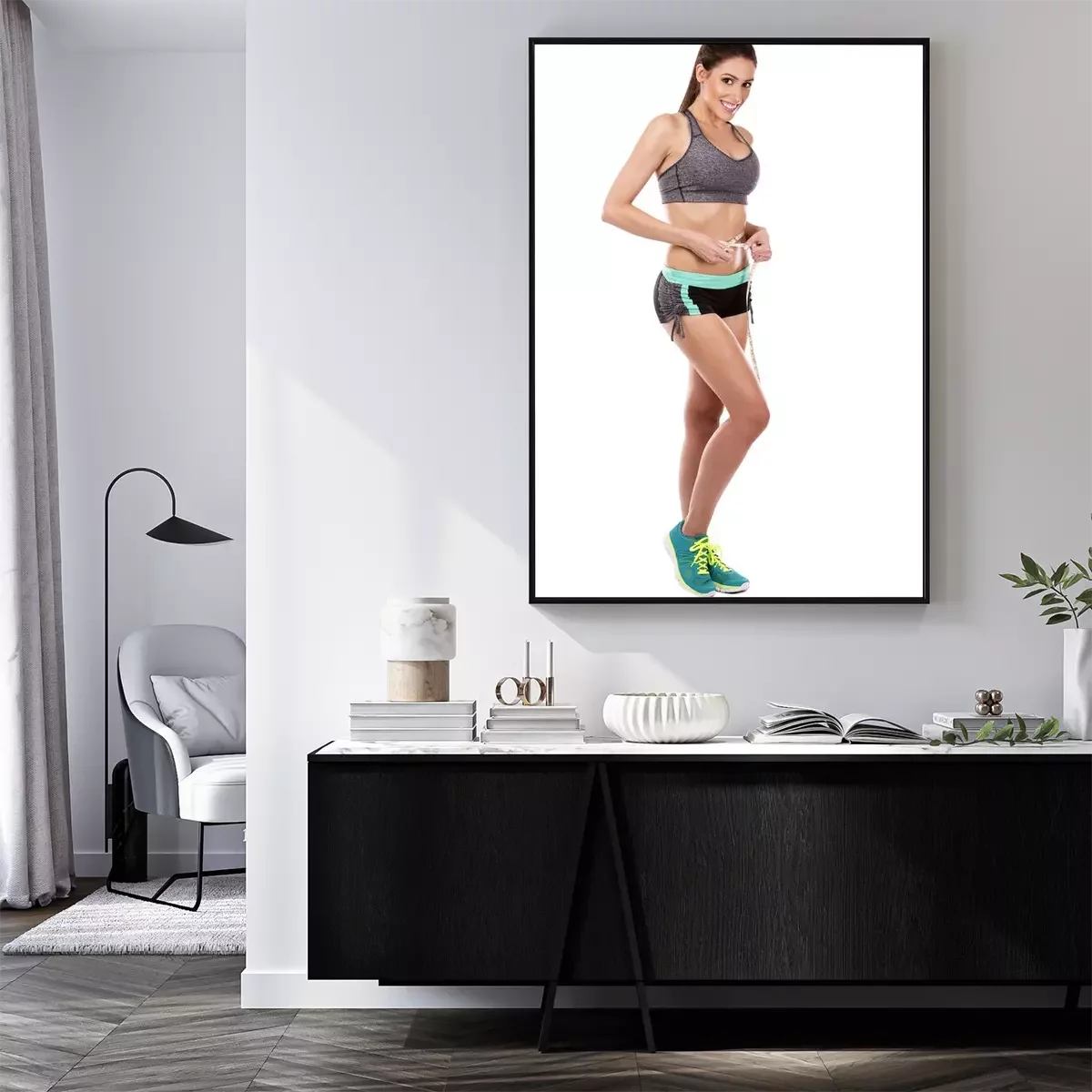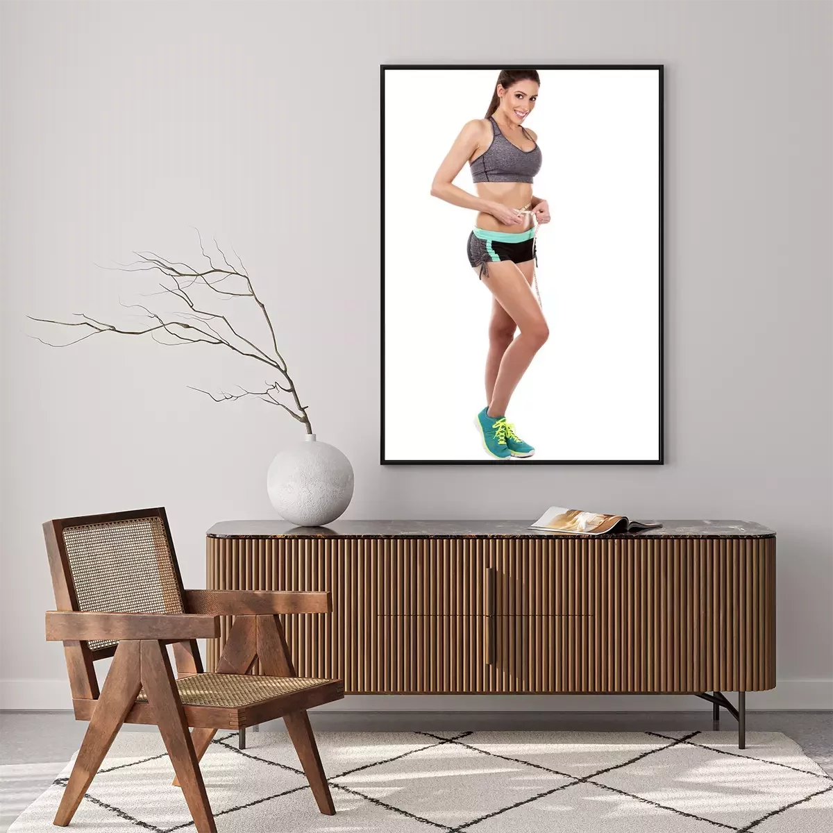 Poster: fitness vrouw op witte achtergrond